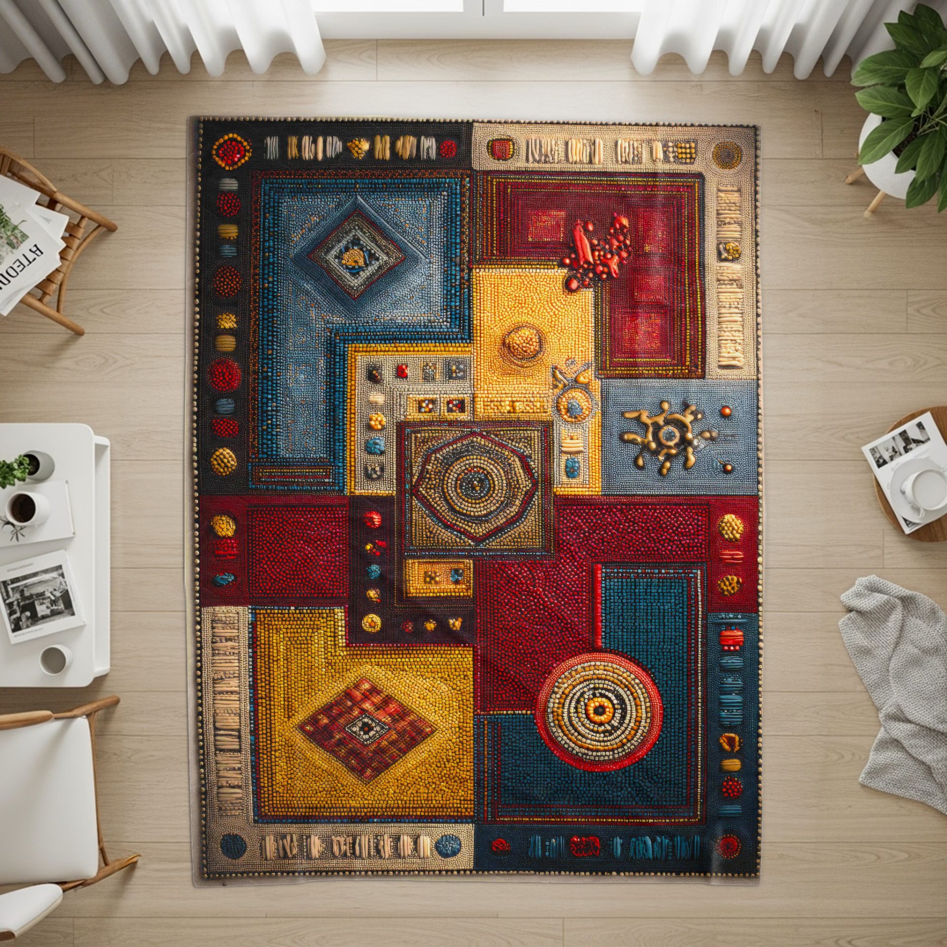 Transform your space with this decorative Abstract Geometric Design. Its unique arrangement of squares and circles adds a vibrant artistic touch to your home decor. This stunning piece is sure to capture attention.
