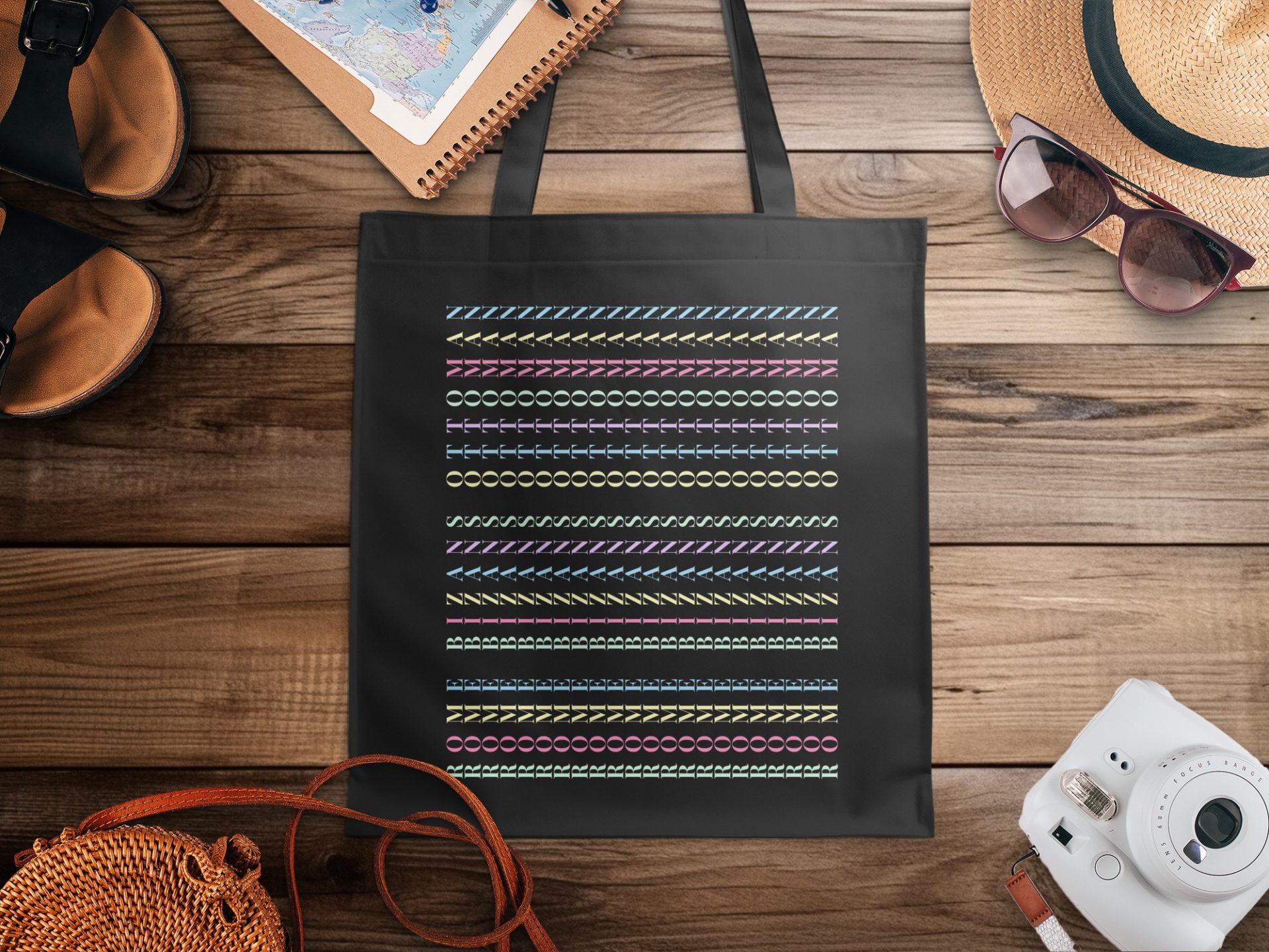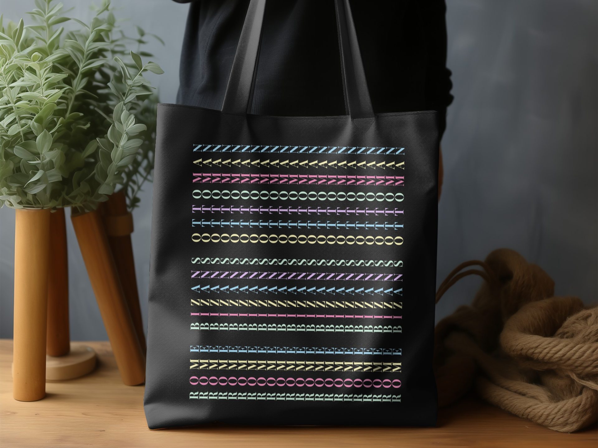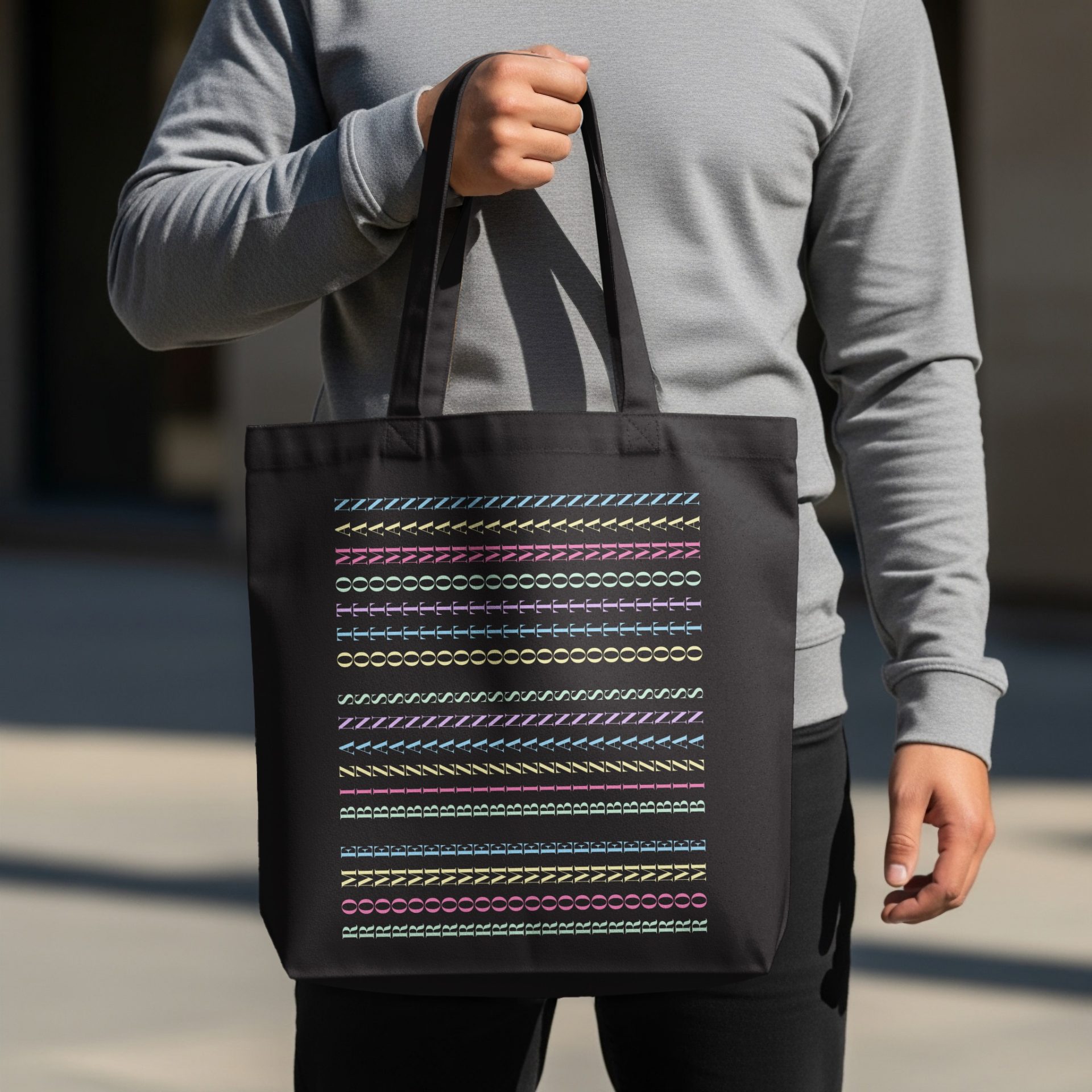 Express yourself with our unique letter pattern. This colorful artistic design brings creative expression. Show your individual flair with this artistic print. Get your tote bag now!
