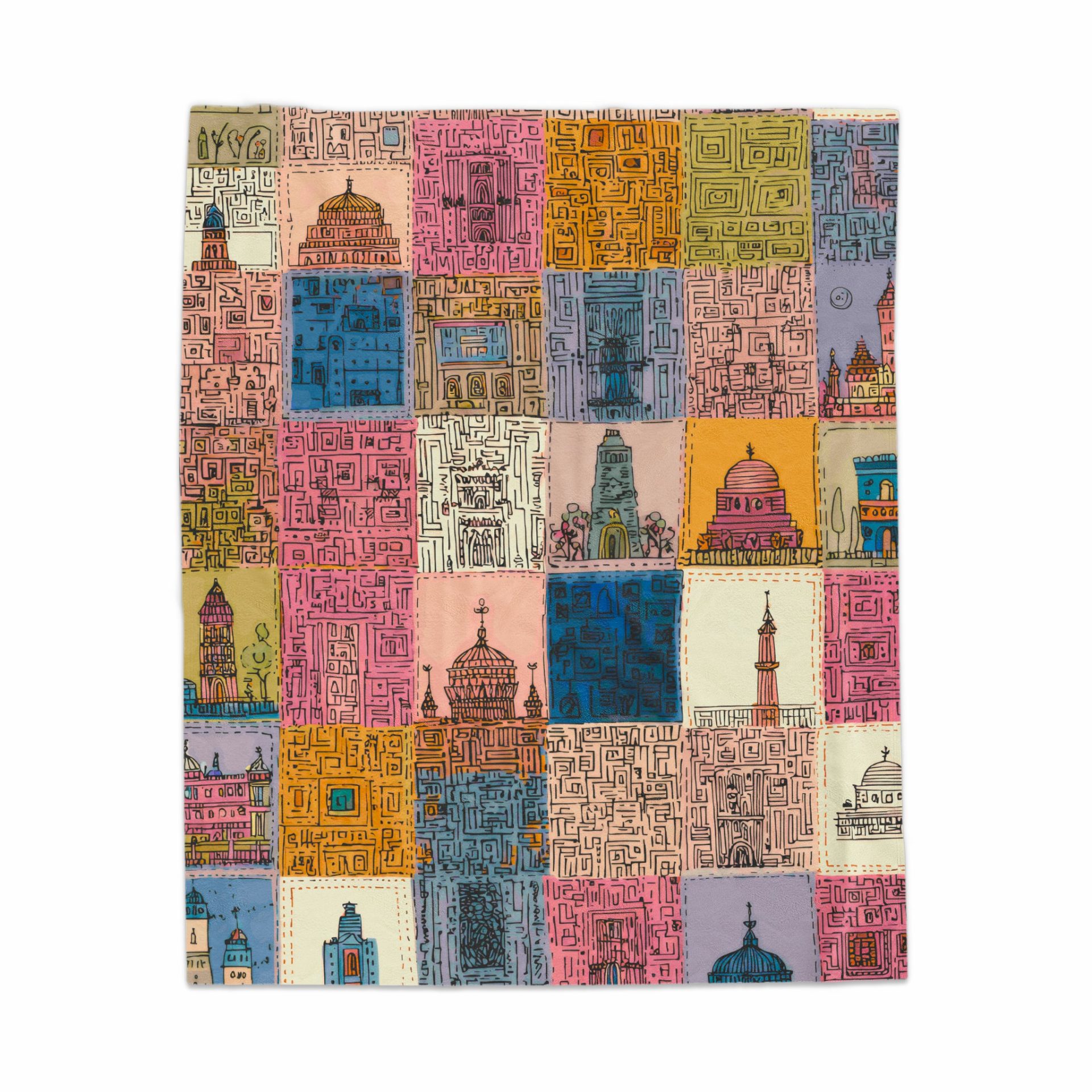 Architectural Cities Patterned Squares Illustrated Abstract Blankets