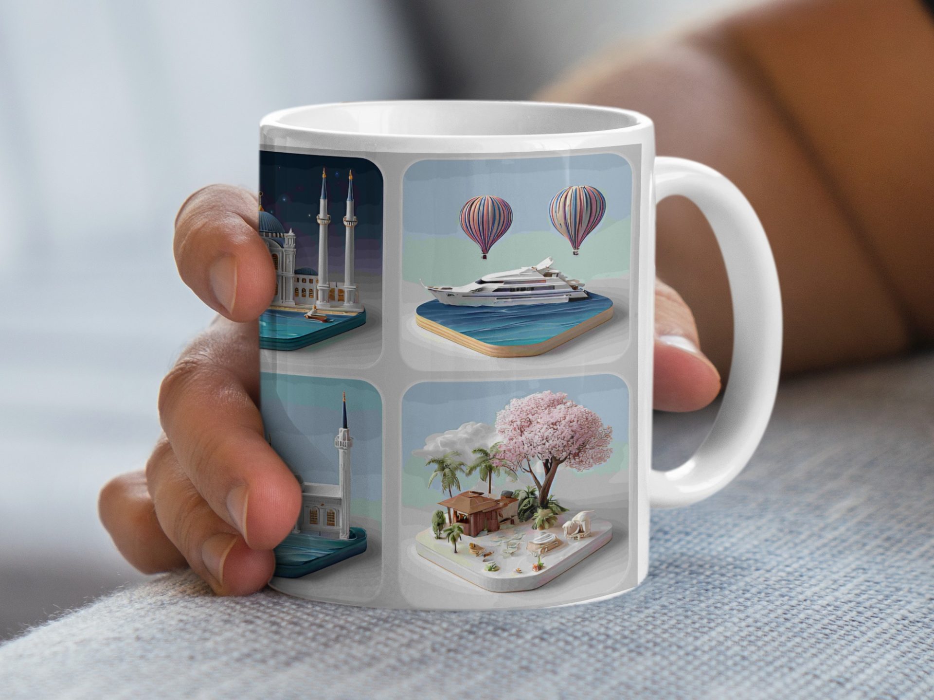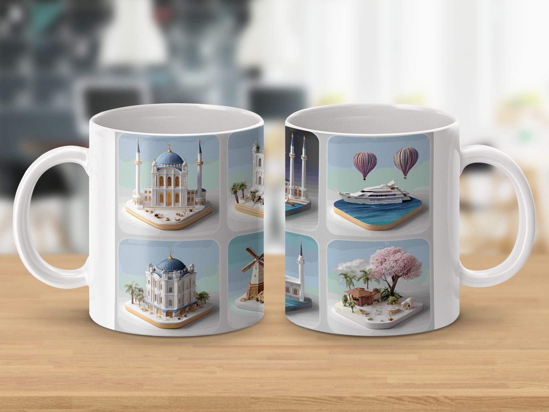 Explore a collection of architectural marvels. This set showcases designs from around the world. Enjoy viewing these iconic scenes with your morning beverage in those Mugs.