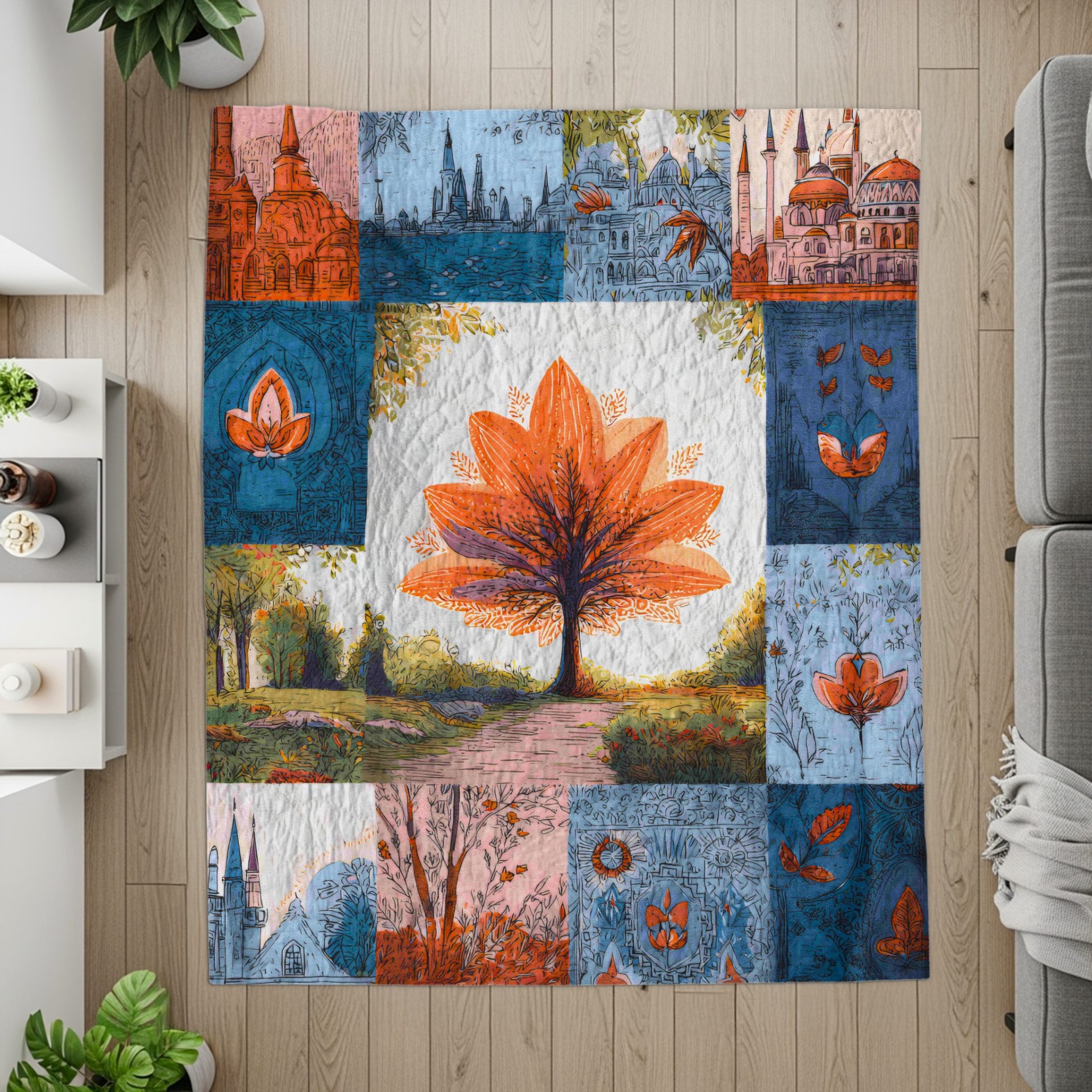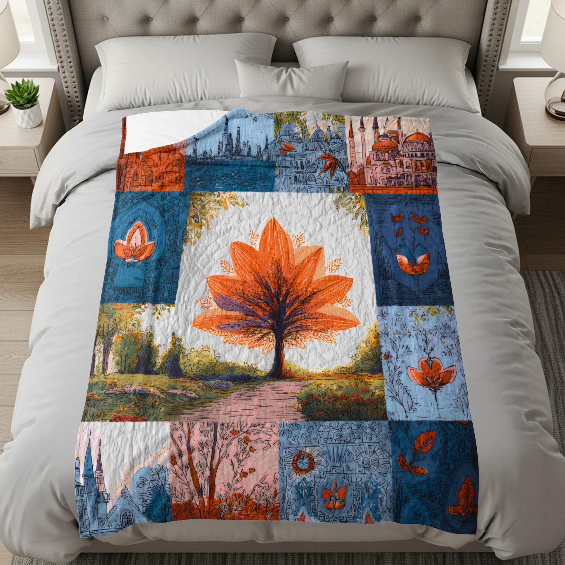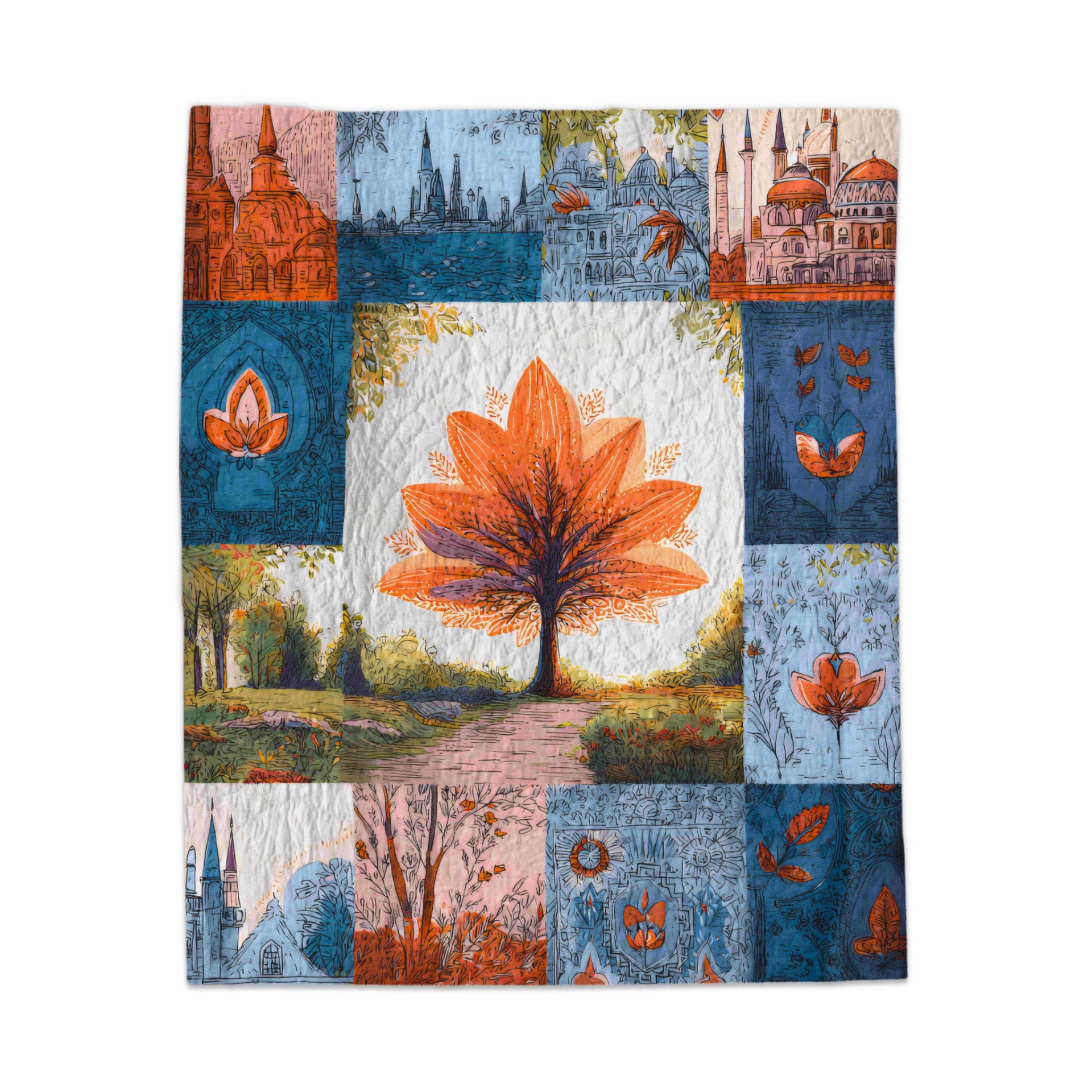 Enhance your living space with our unique blankets featuring artful tree views and iconic landmarks. Perfect to add a touch of culture and a relaxing ambiance to any room setting.