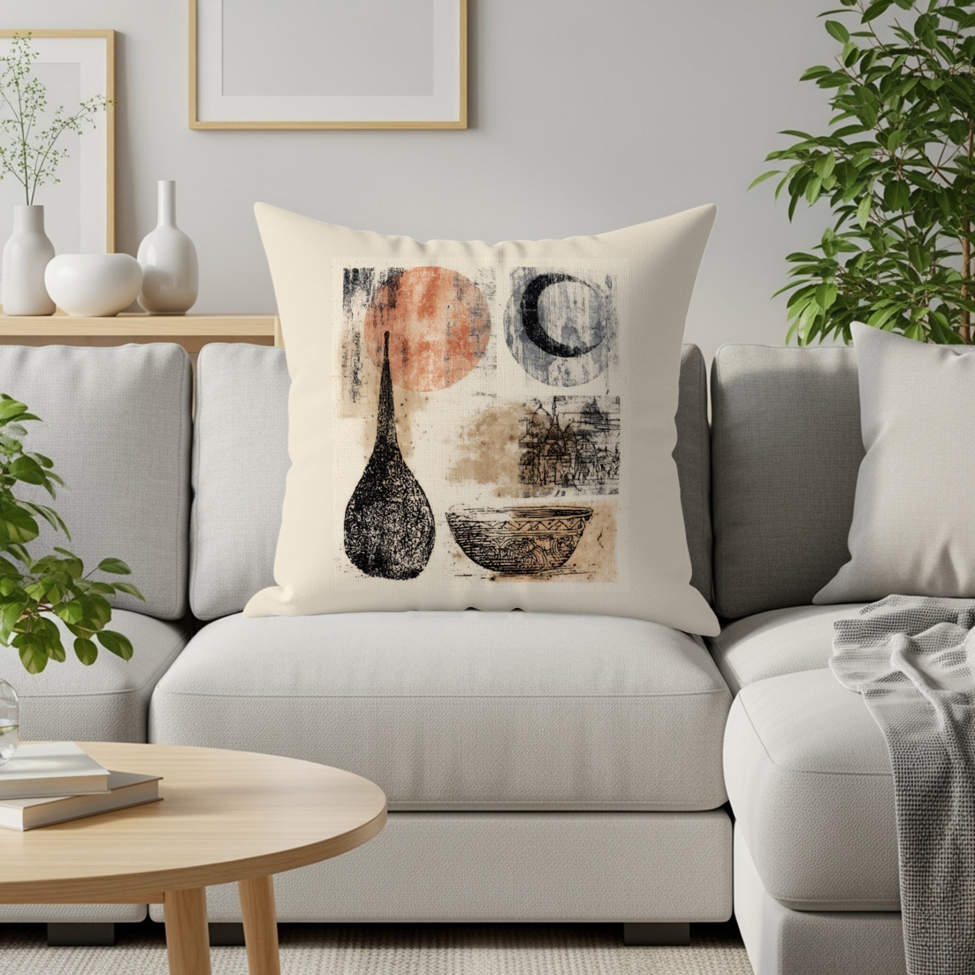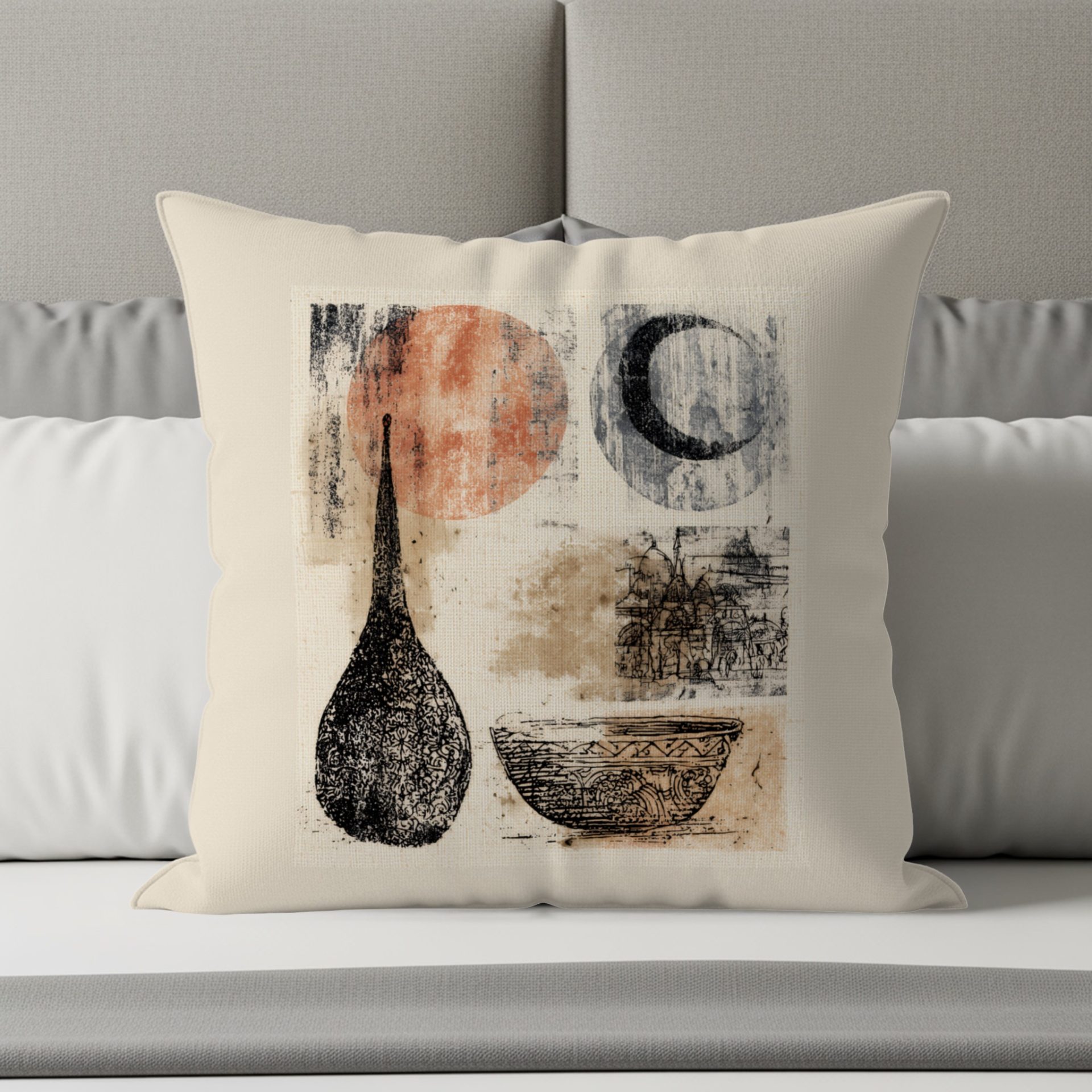 Artistic Bowls Suns Moons Pattern Home Decor Pillows & Pillow Cases