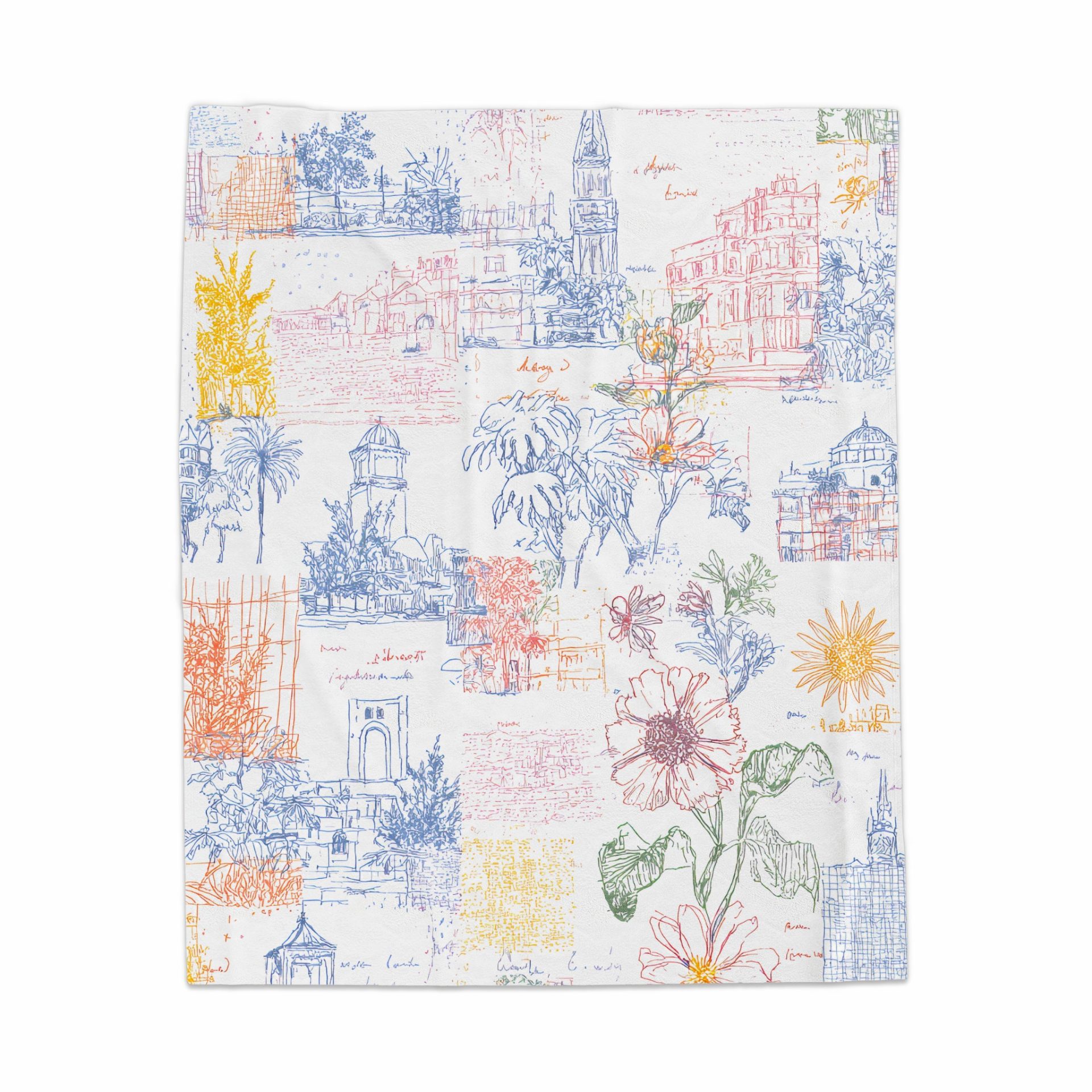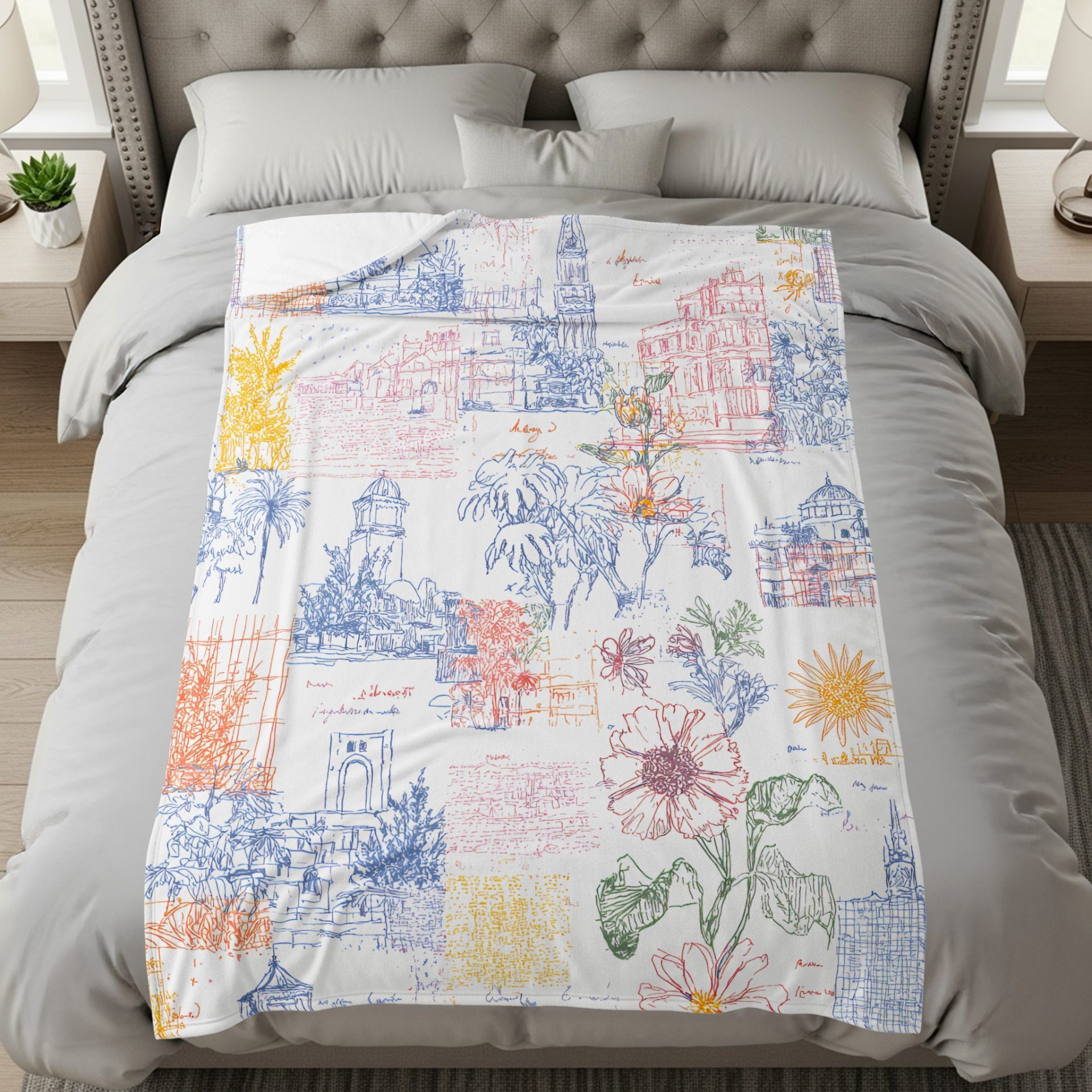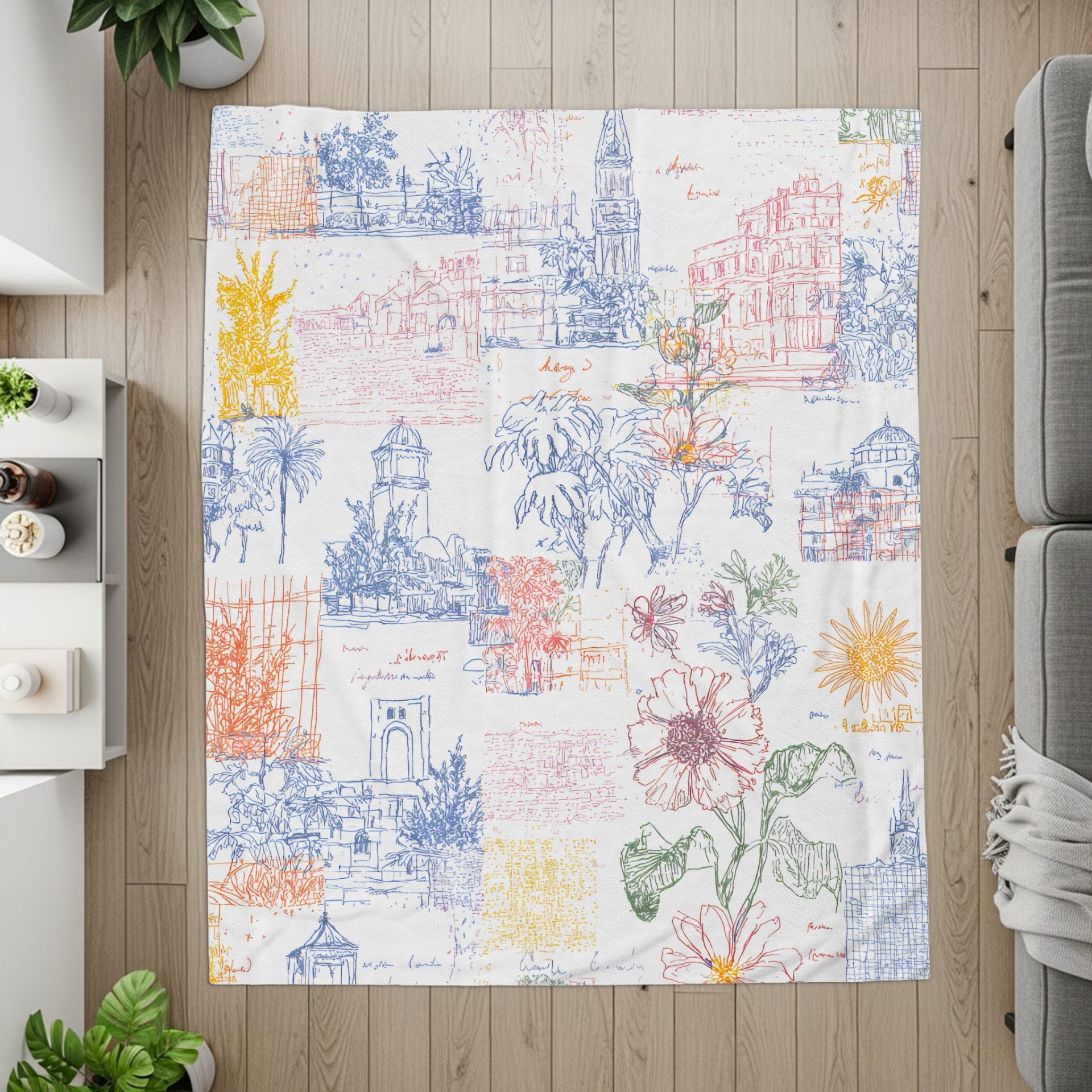 Add a touch of artistic elegance to your home with our floral architectural illustration print. The soft hues and detailed designs create a unique blanket. Perfect to brighten your space.