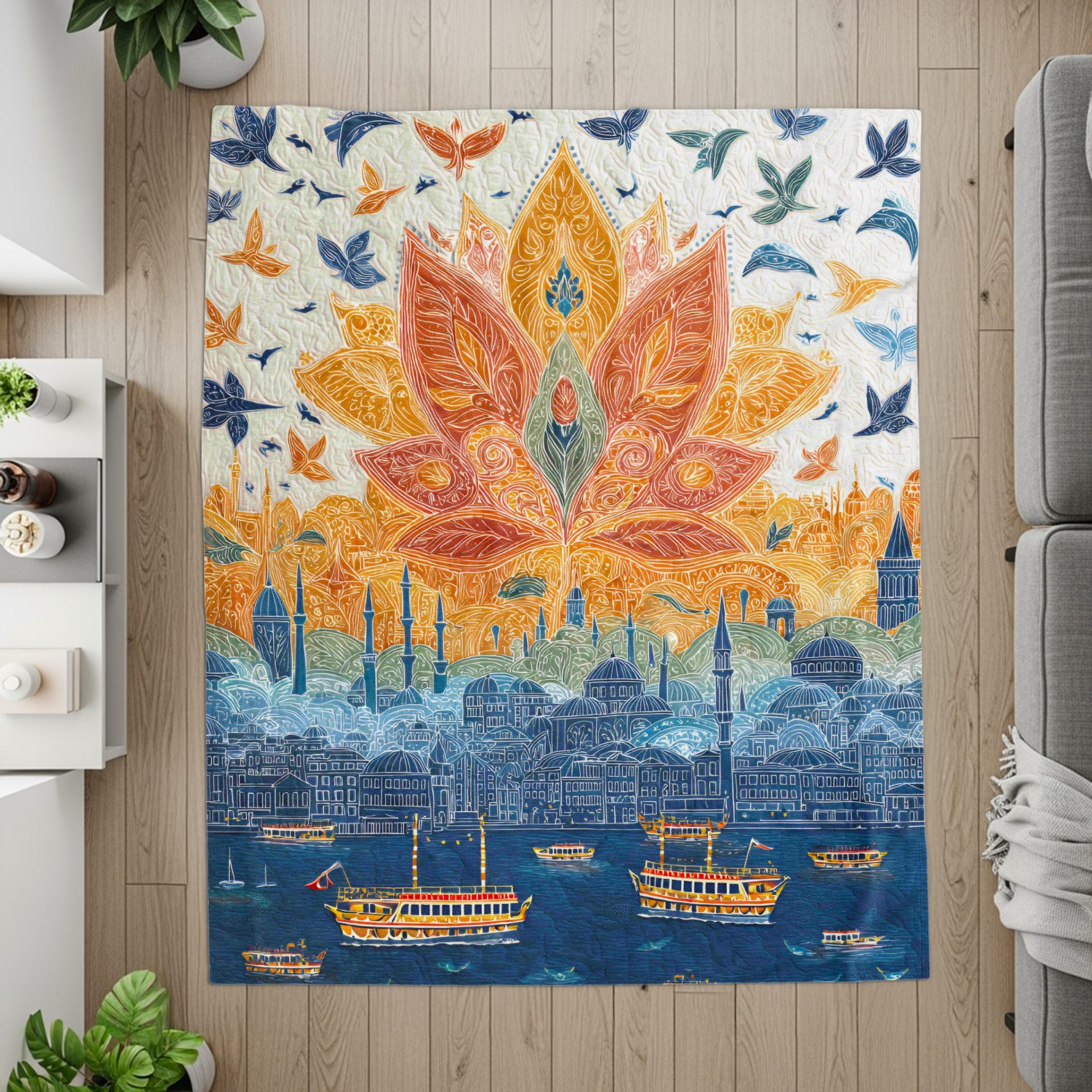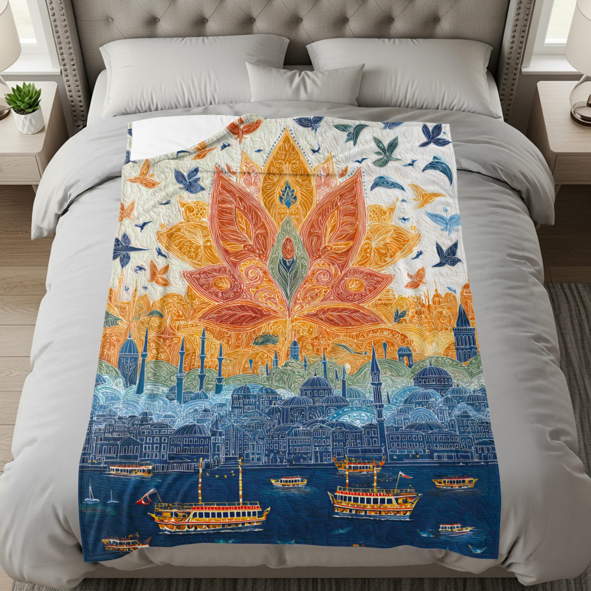 Artistic Illustration Design with Cityscape Image Blankets