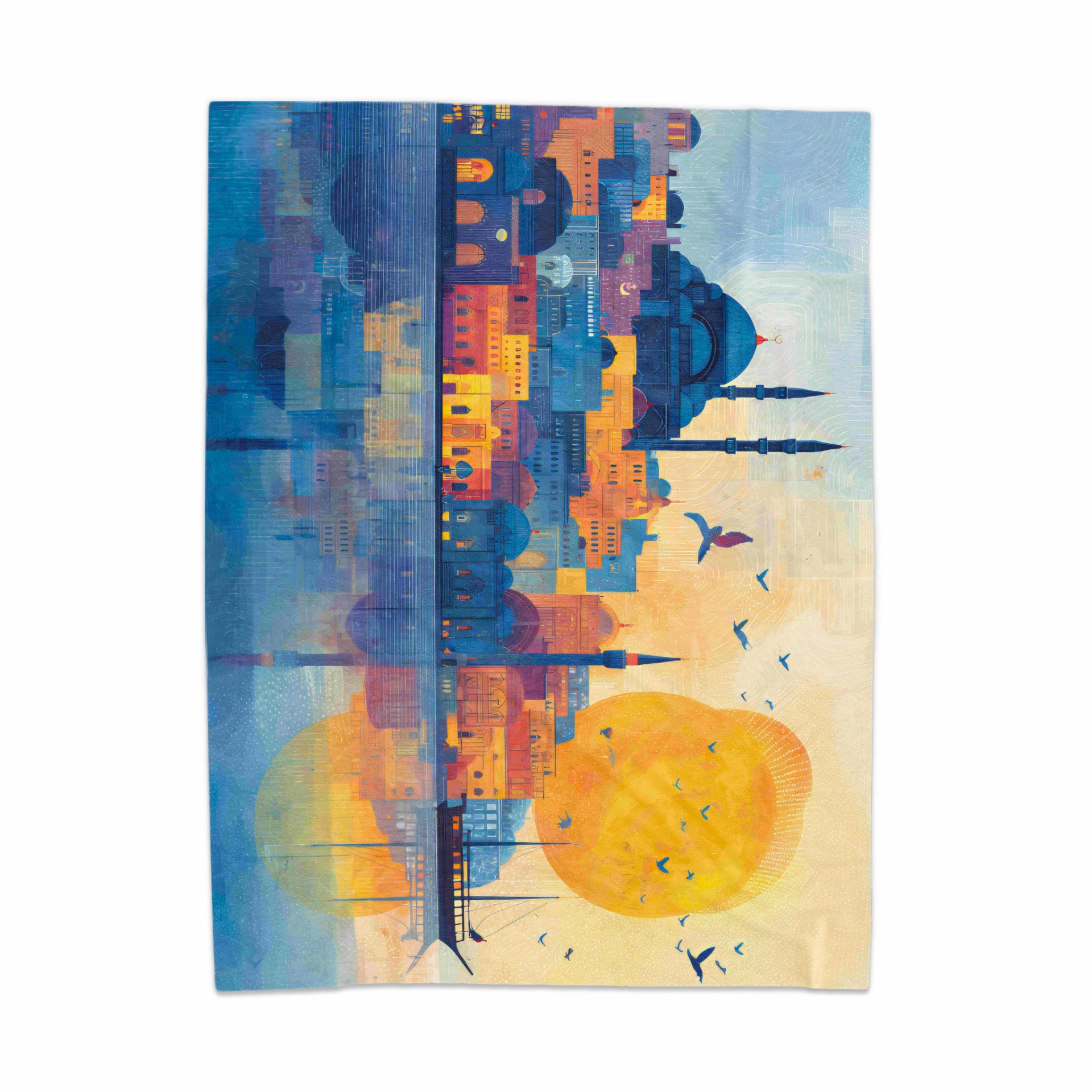 Discover Istanbul's unique skyline reimagined in vivid colors with our exclusive blankets. Featuring artistic details and a soothing design to enhance your comfort.