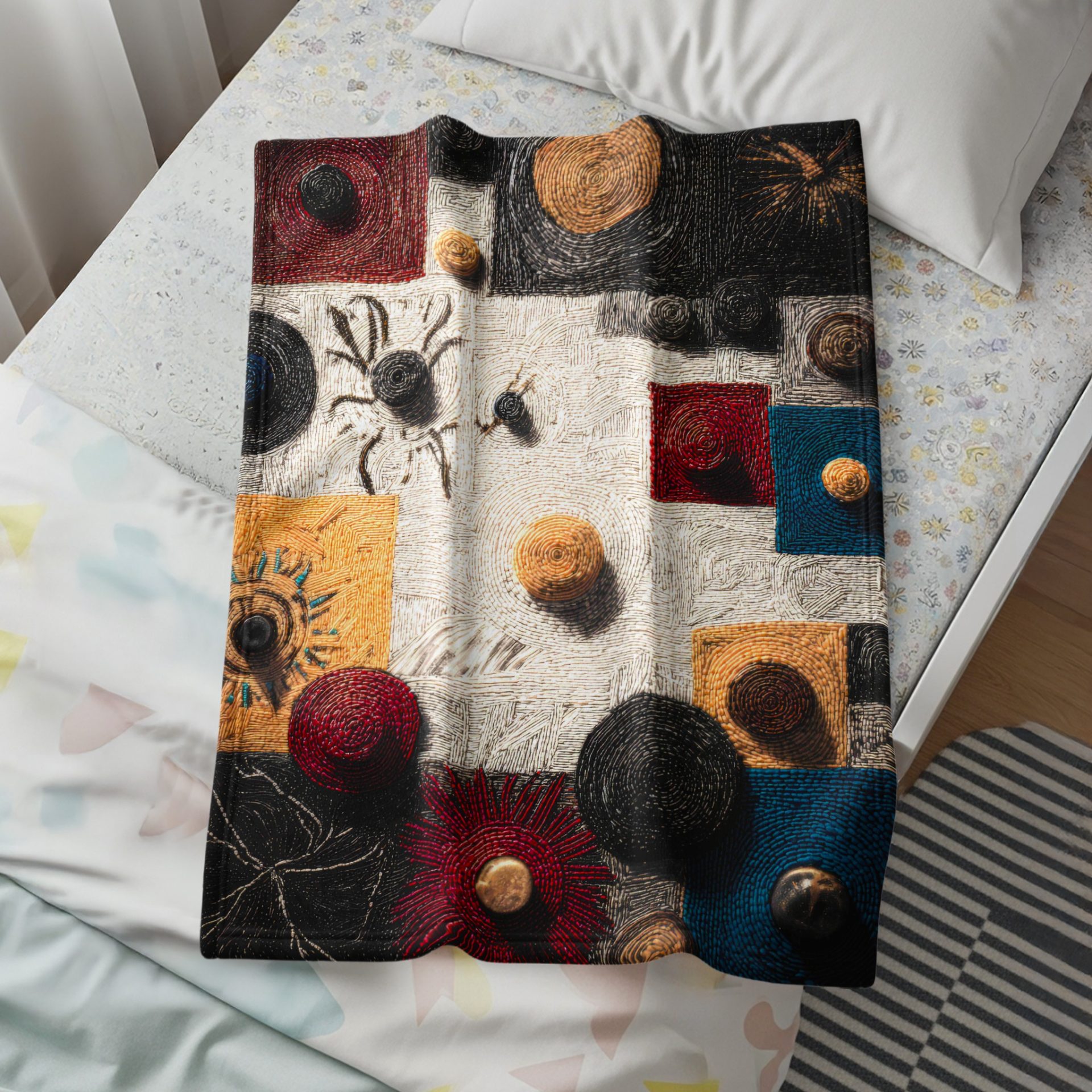 This unique patterned Blankets features a blend of colors and shapes. The abstract shapes create a visually stunning piece great for any room, adding artistic charm warmth.