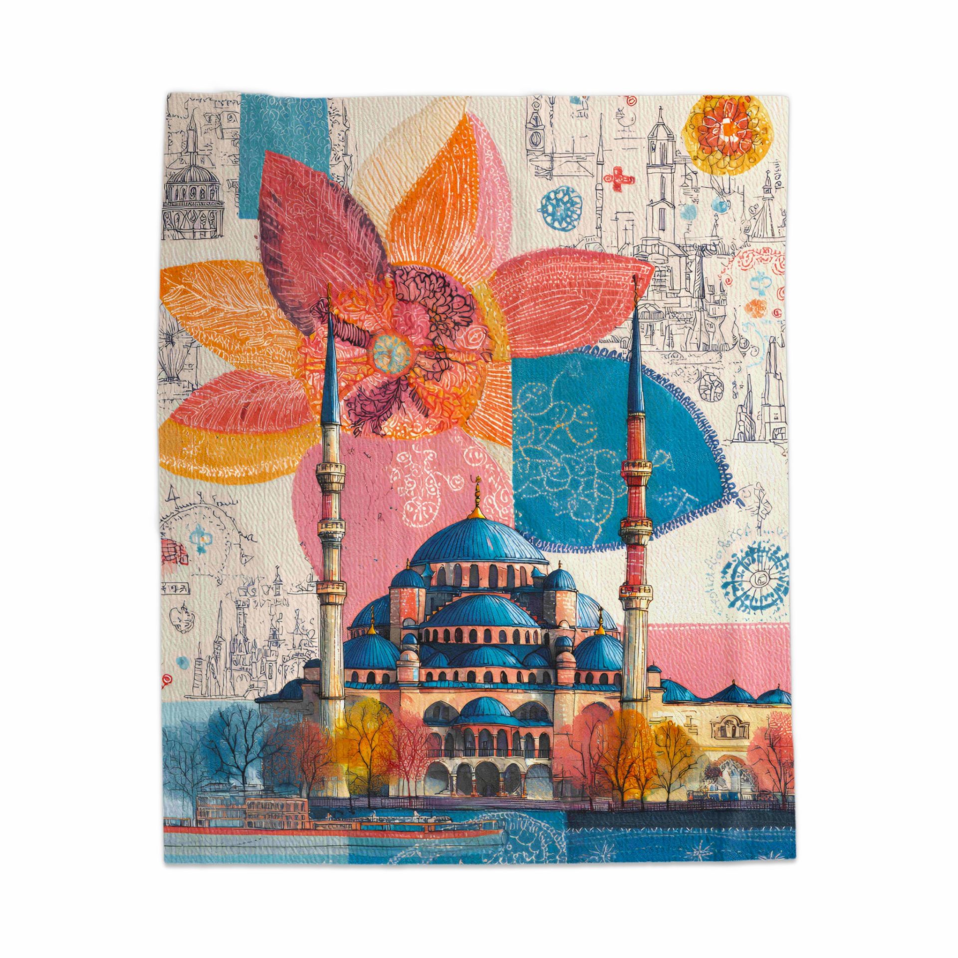Blue Mosque and Flower Colorful Art Design Novelty Blankets