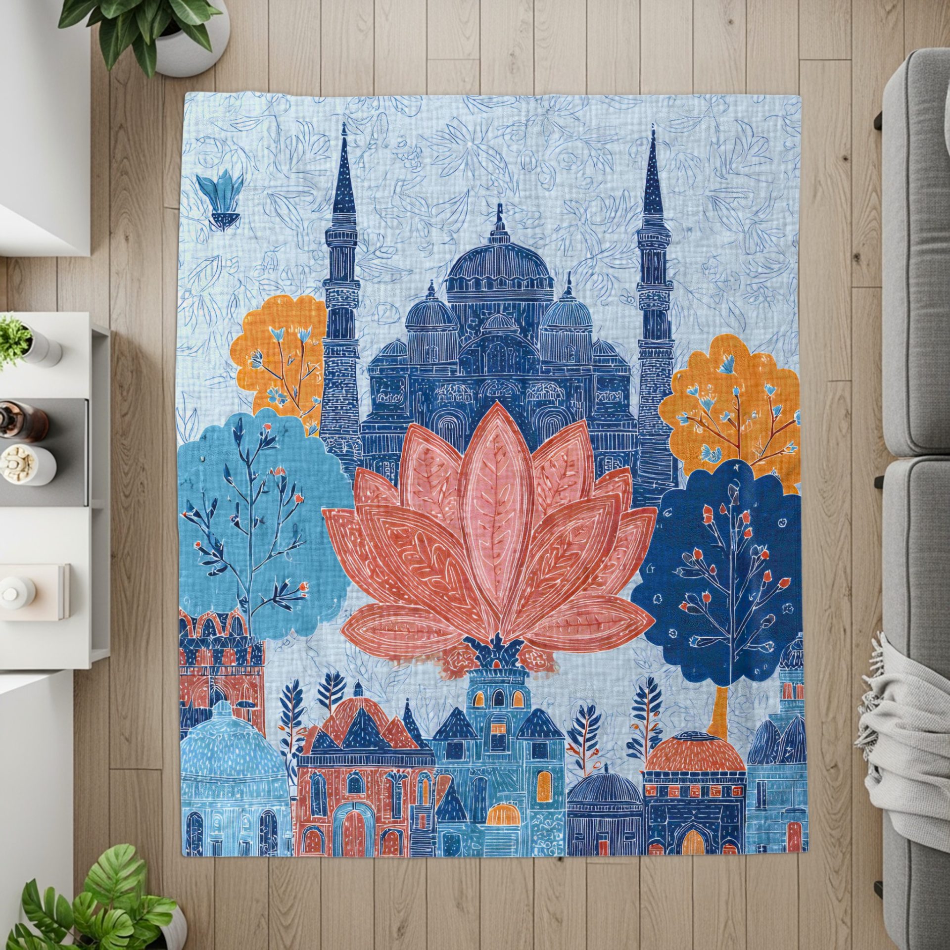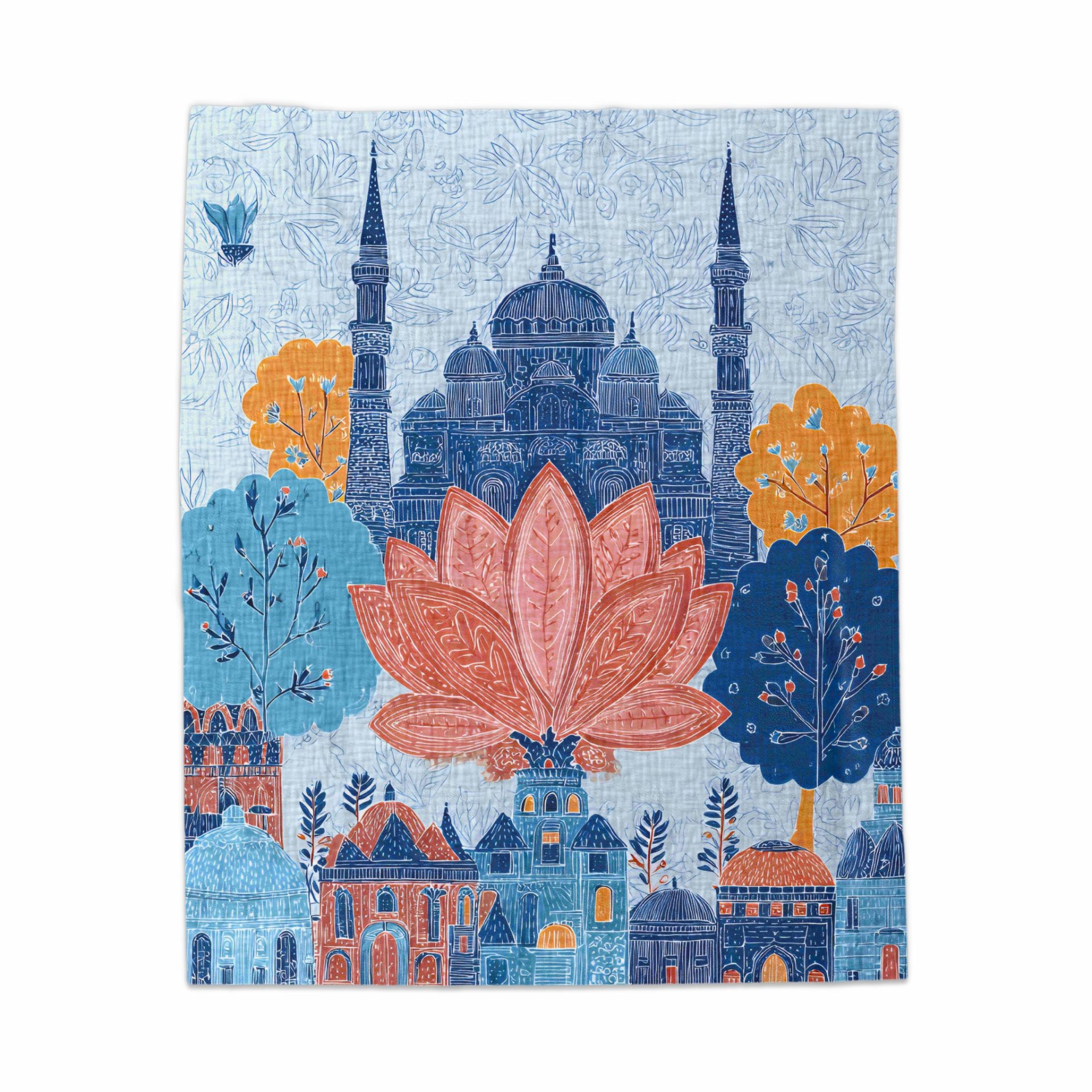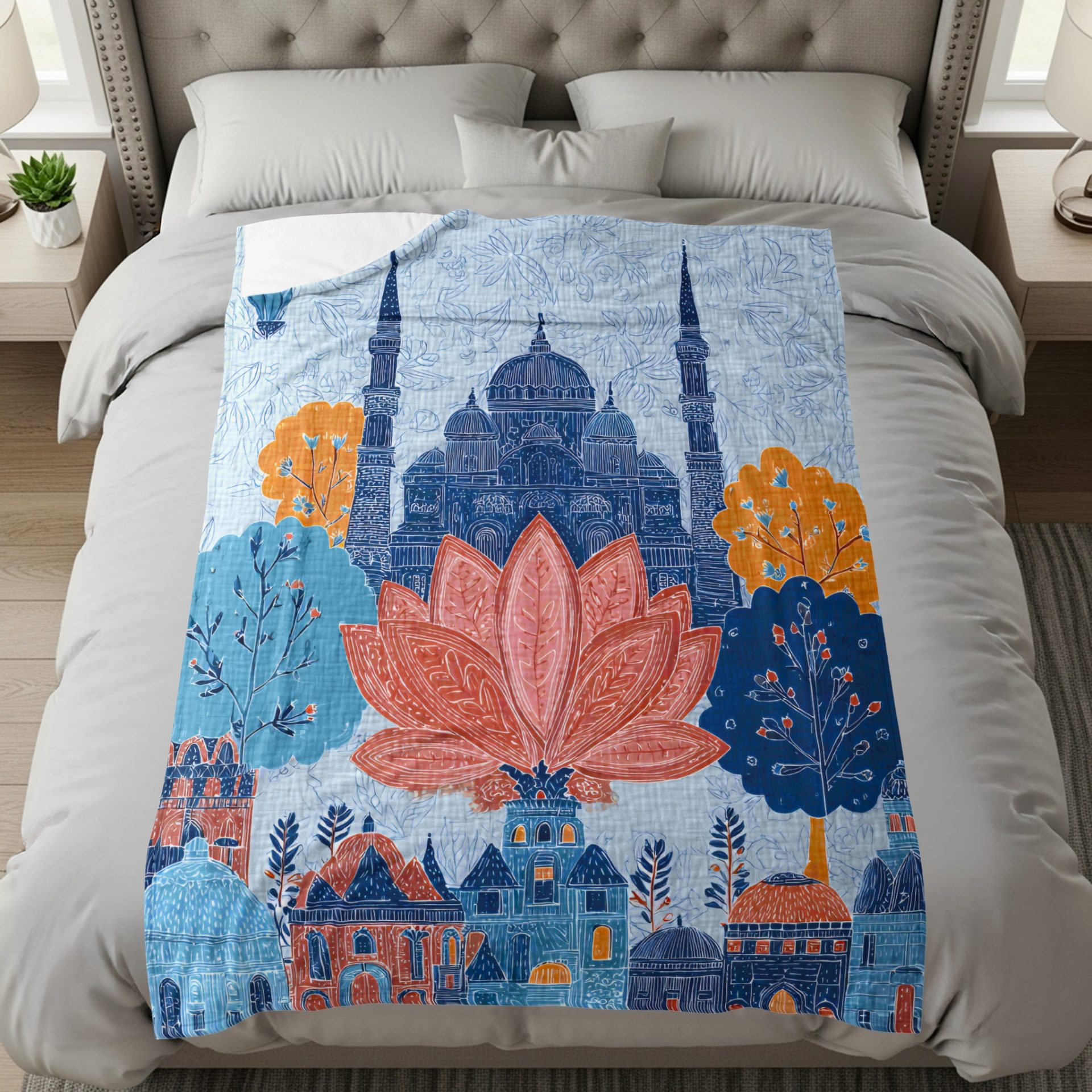 Blue Orange Floral Pattern Architectural Drawing Blankets