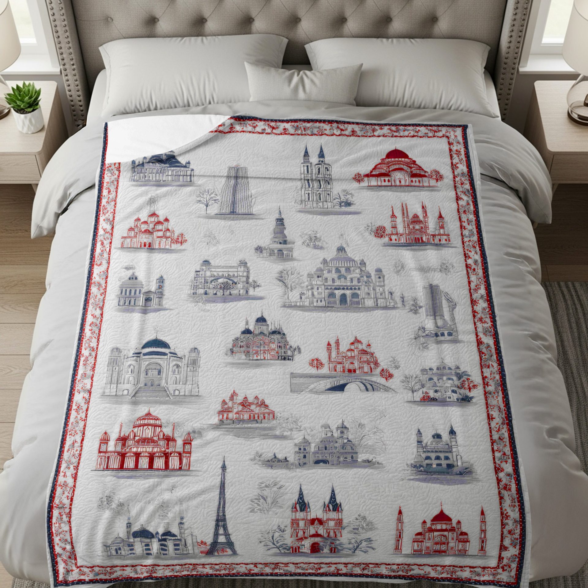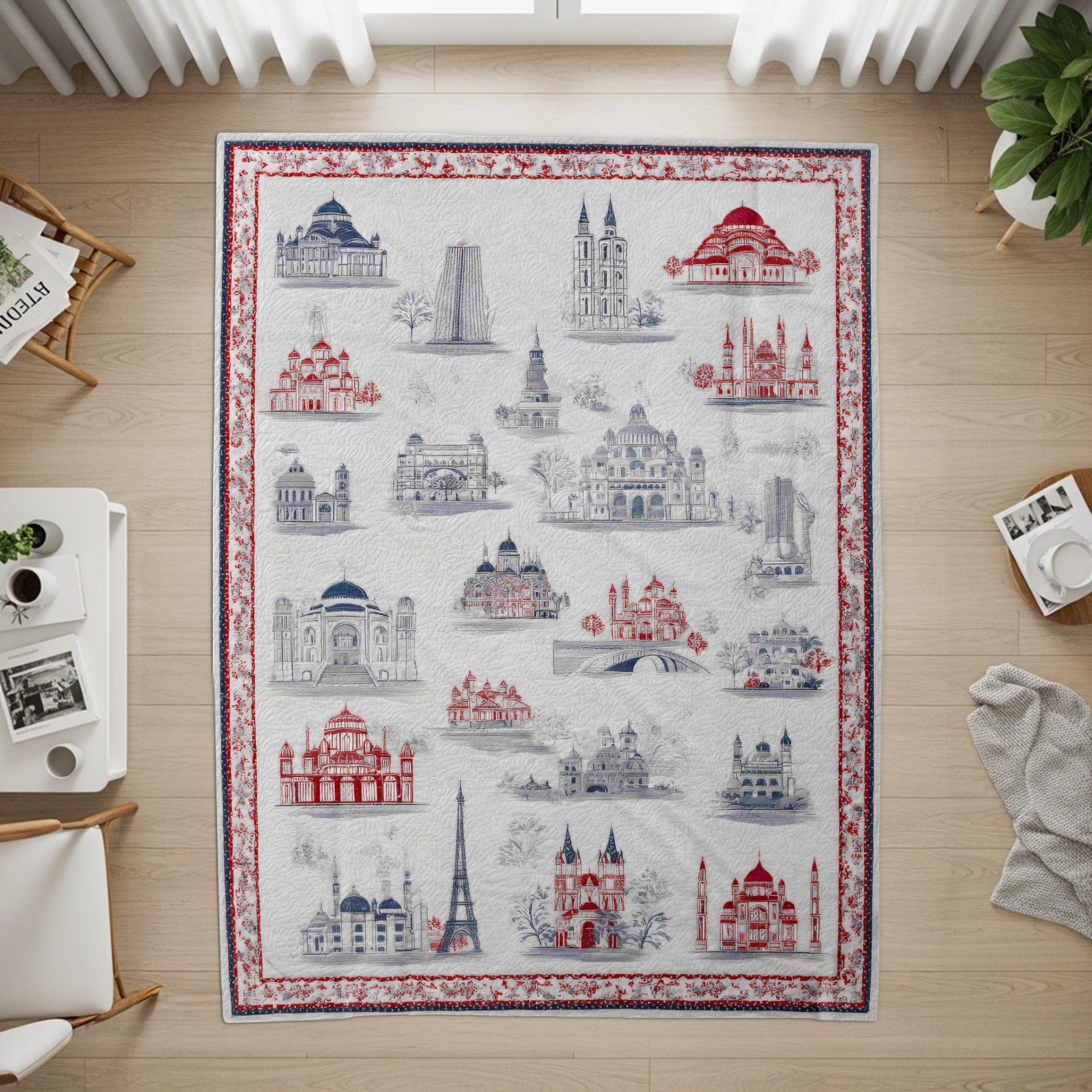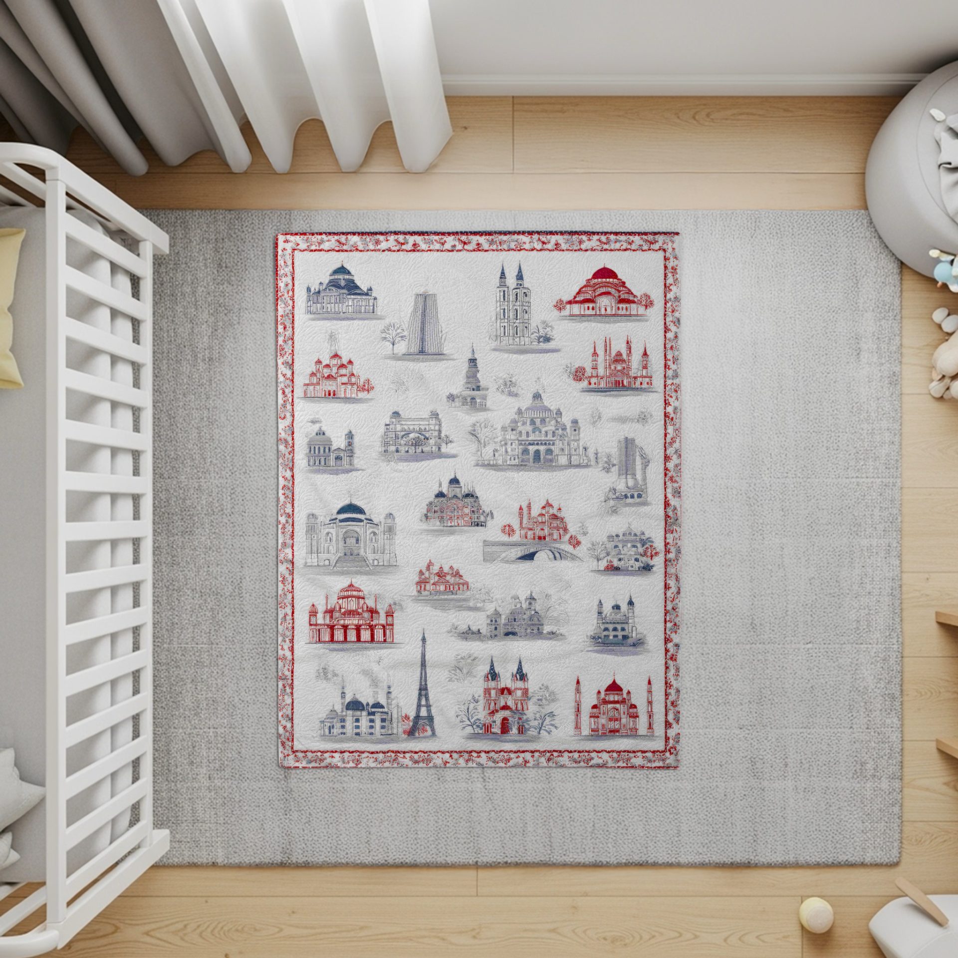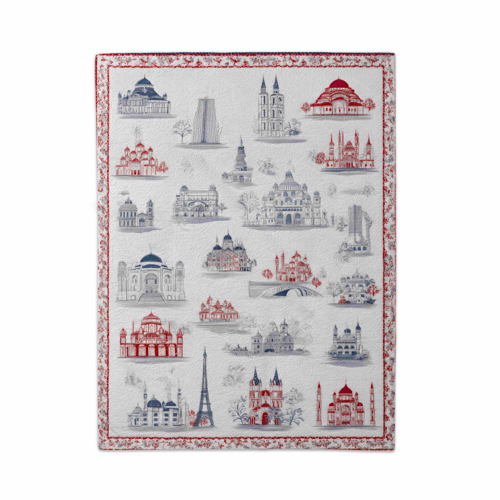 Add a touch of world travel to your home décor with this Buildings Art Design Blanket. Featuring iconic buildings in red and blue it is perfect for any room and offers comfort.