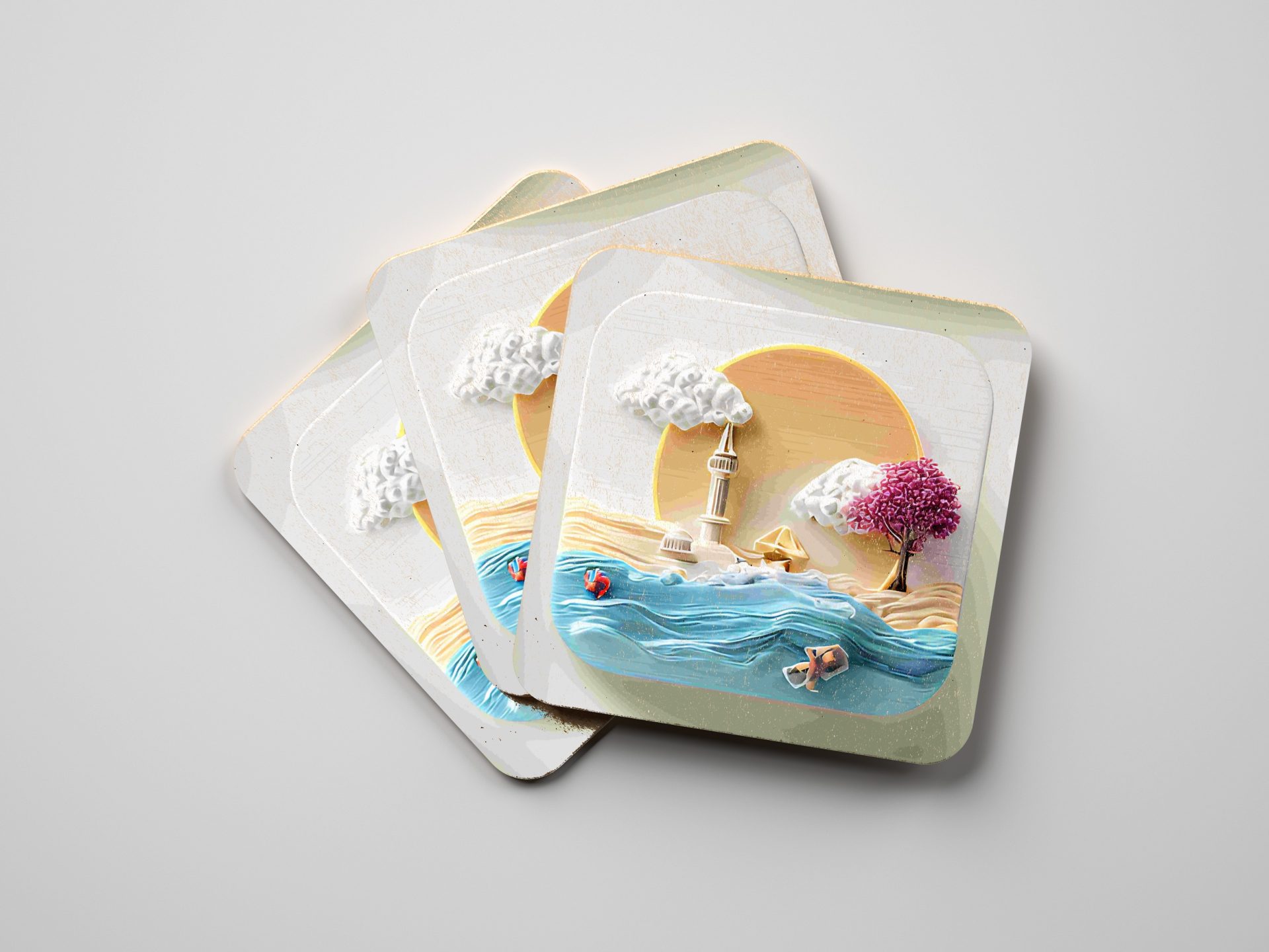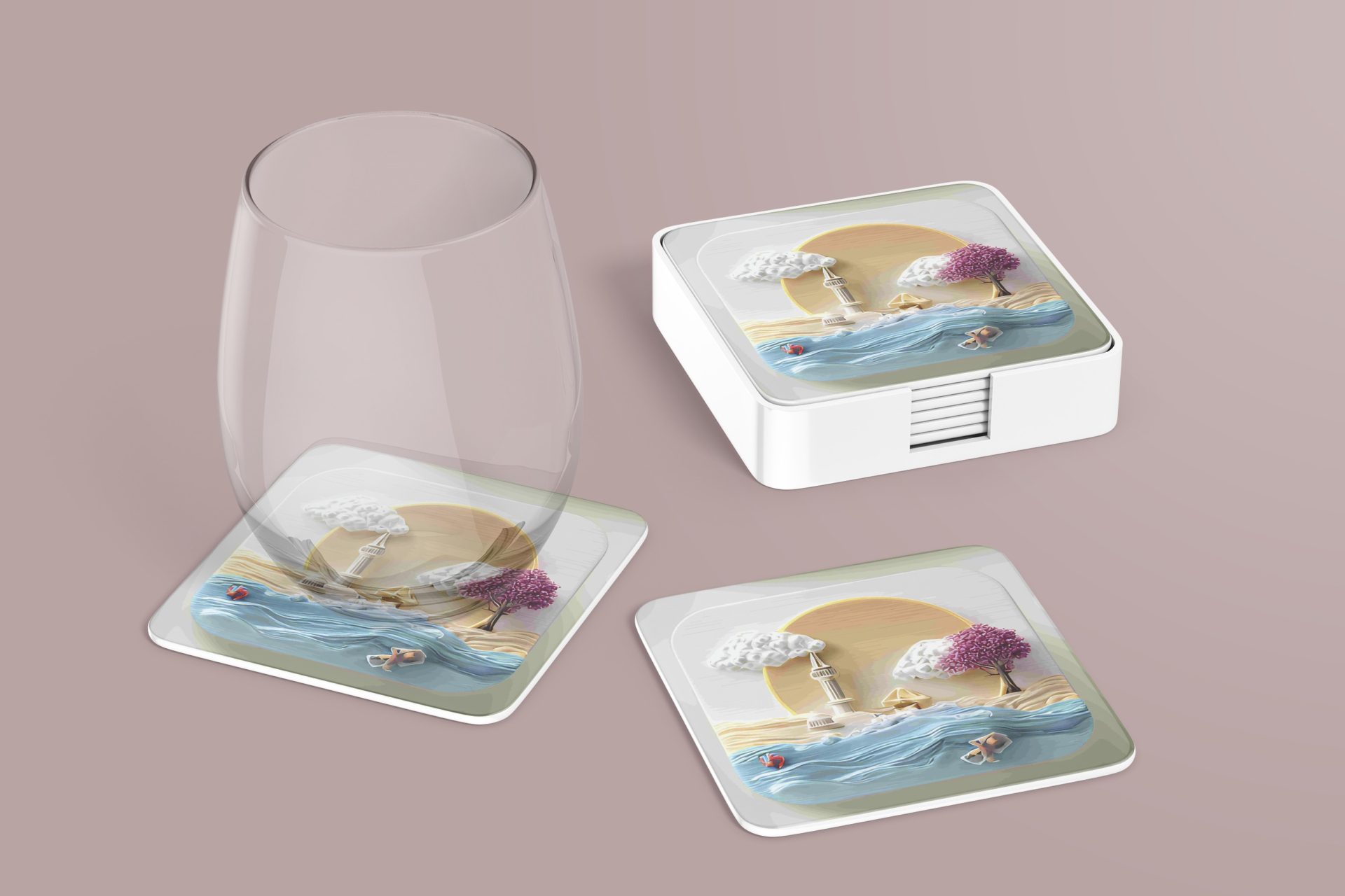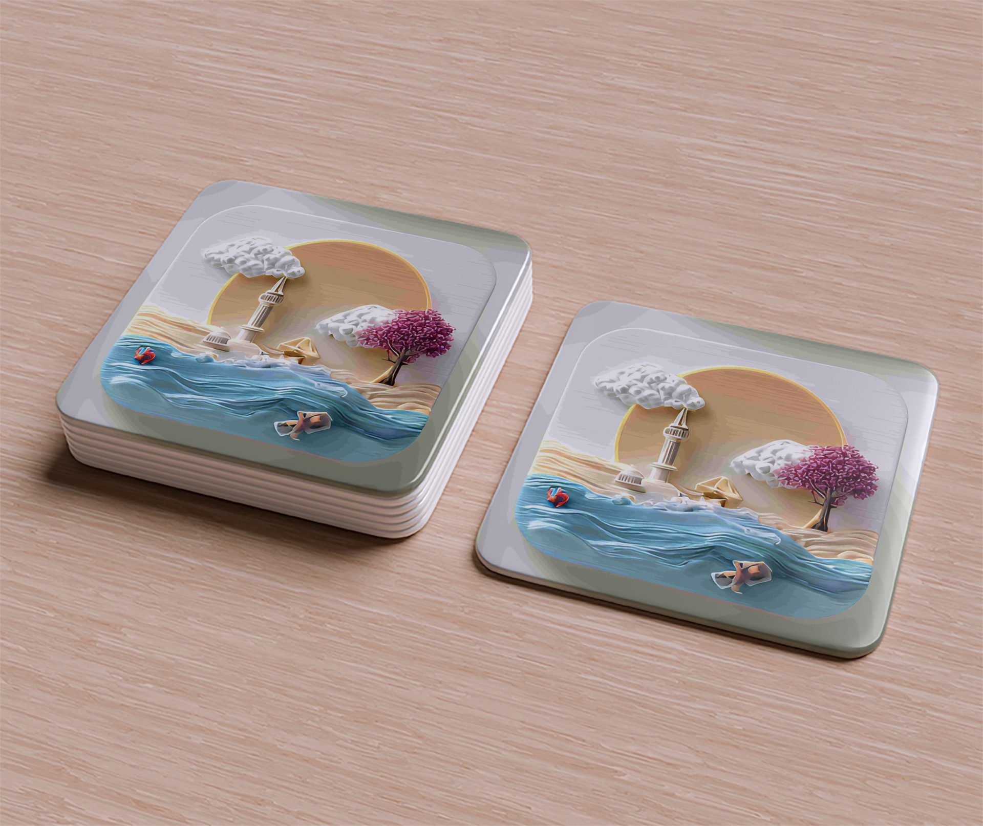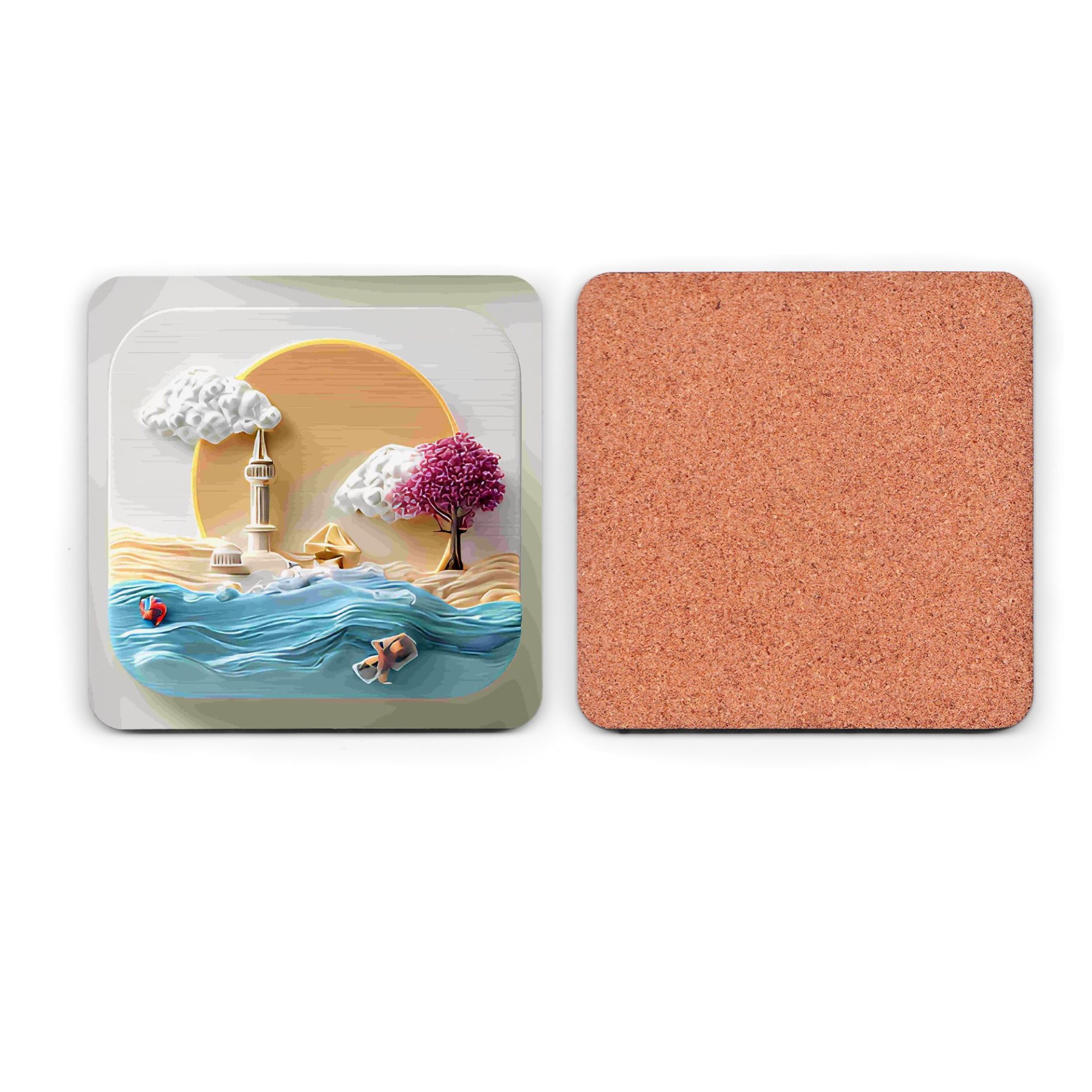 Enhance your space with this coastal artwork featuring a serene beach scene. Enjoy a touch of artistic flair in your home with these unique and aesthetically pleasing coasters.