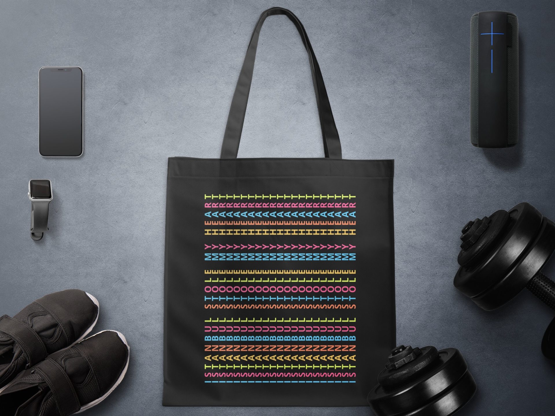 Colorful Alphabet Typography Repeat Pattern Design Tote Bags