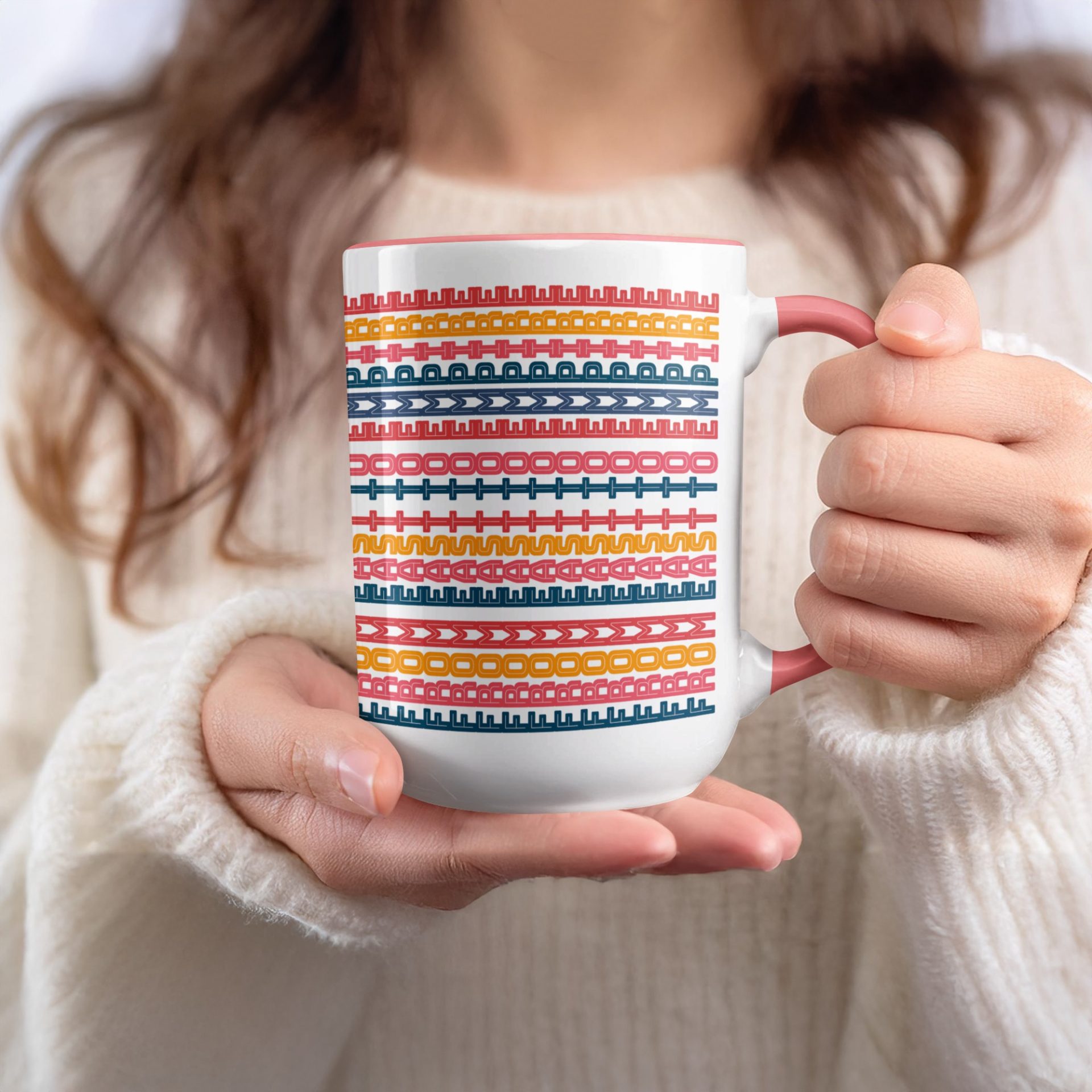 Colorful Borders Pattern Red Orange Blue on White Mugs