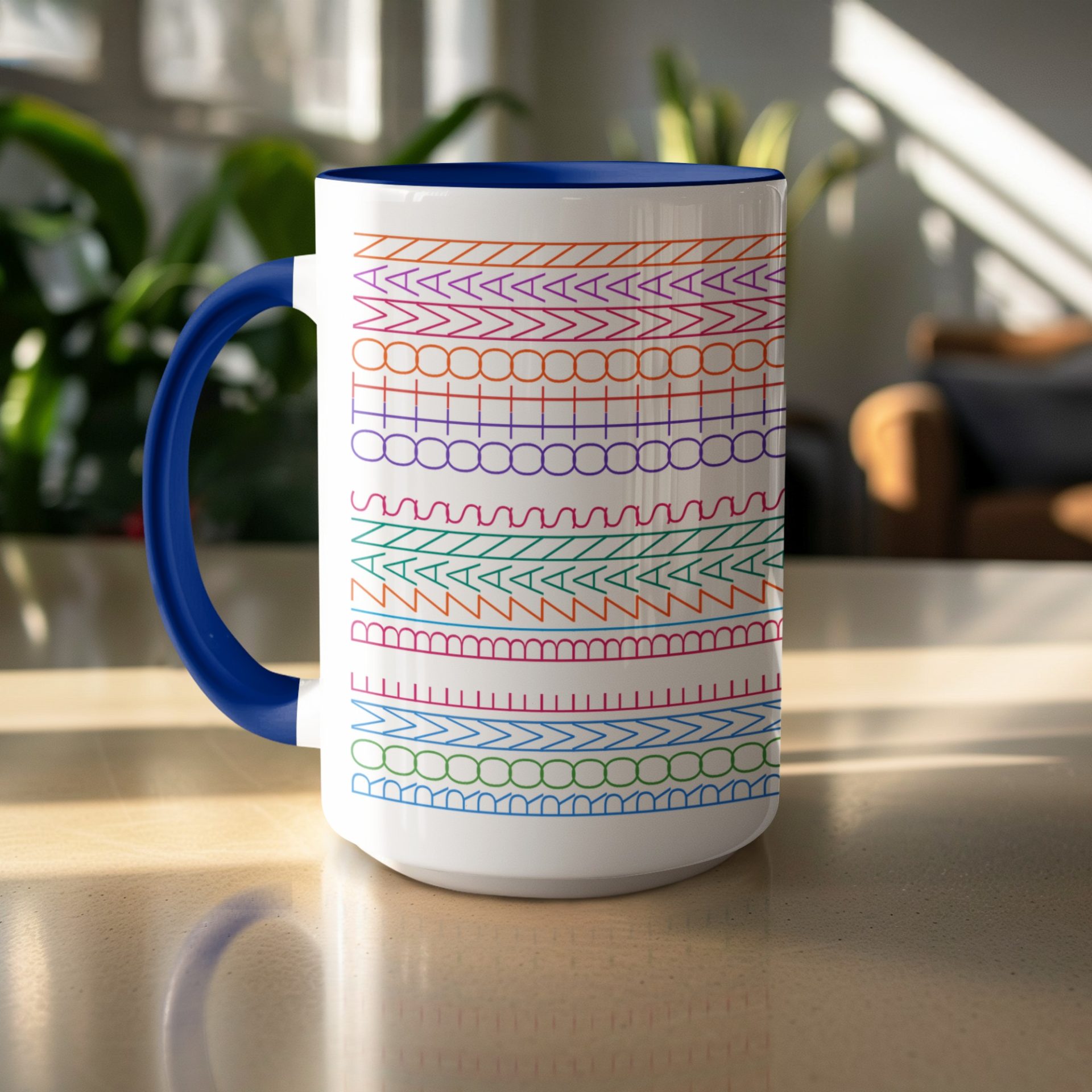 Express your unique style with this line pattern mug! Featuring colorful abstract geometric designs it's the perfect cup to brighten your morning routine or as an amazing gift idea.