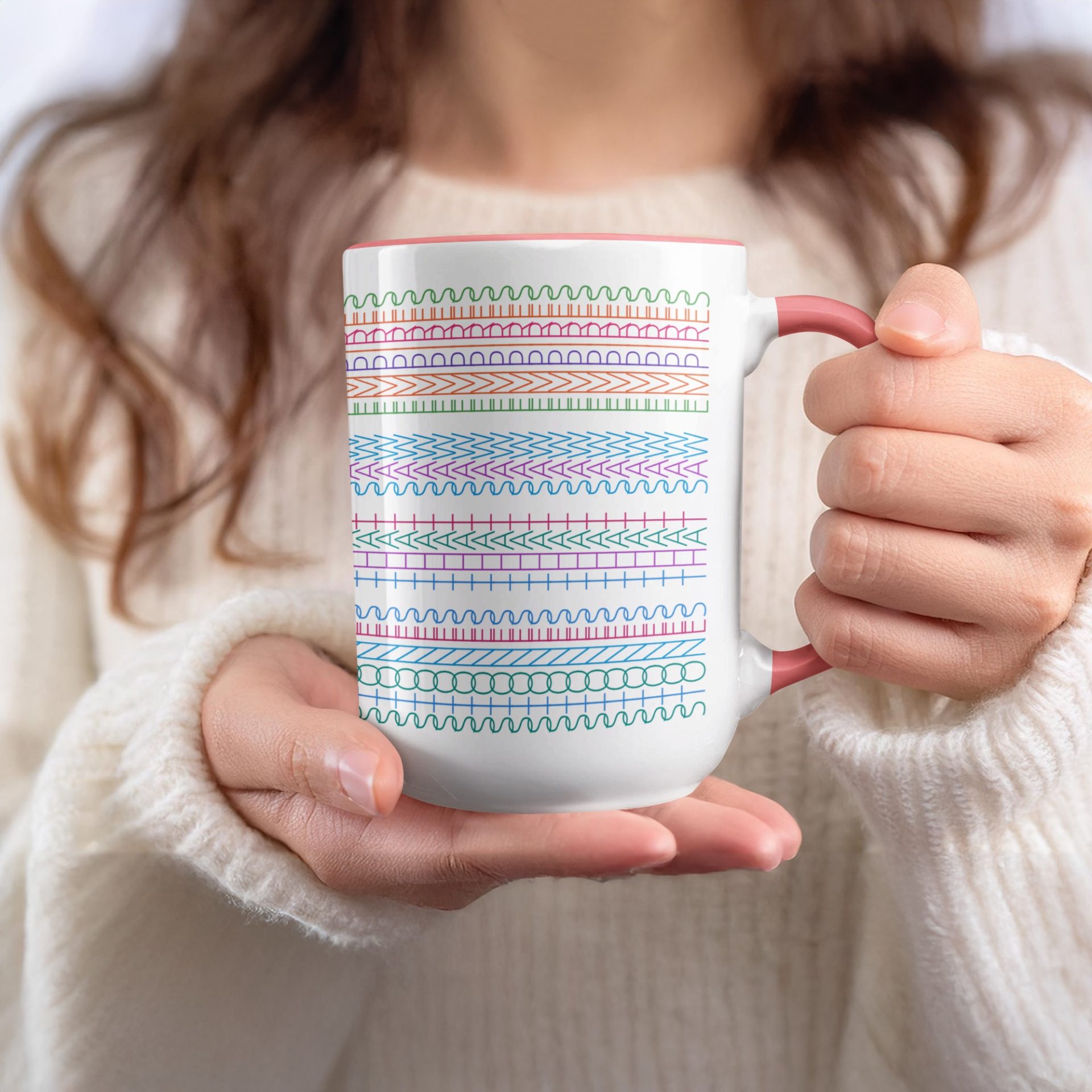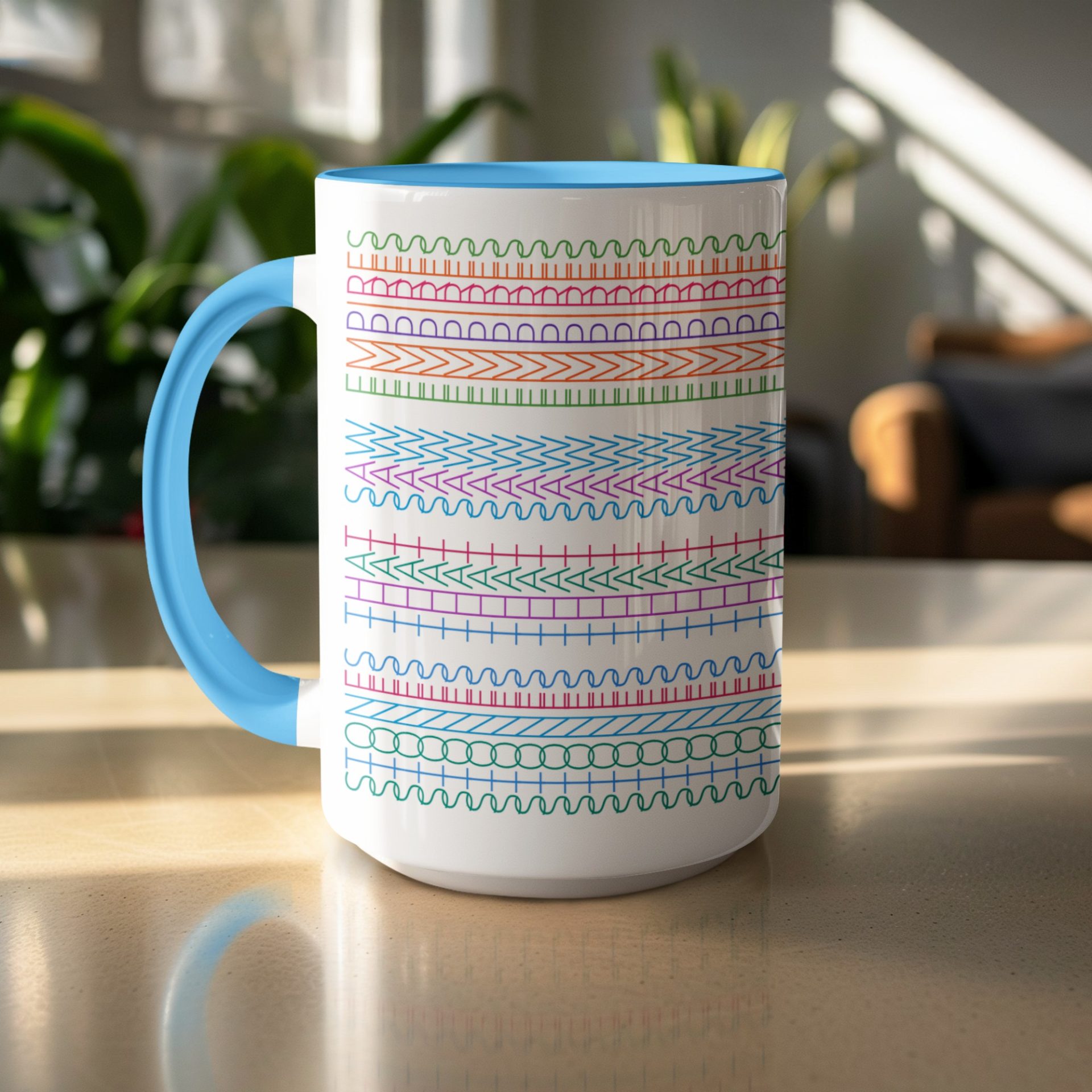 Explore our mugs featuring a unique colorful geometric horizontal line art design pattern. Perfect for adding a touch of modern style to your coffee or tea routine. Find your favorite mug here.