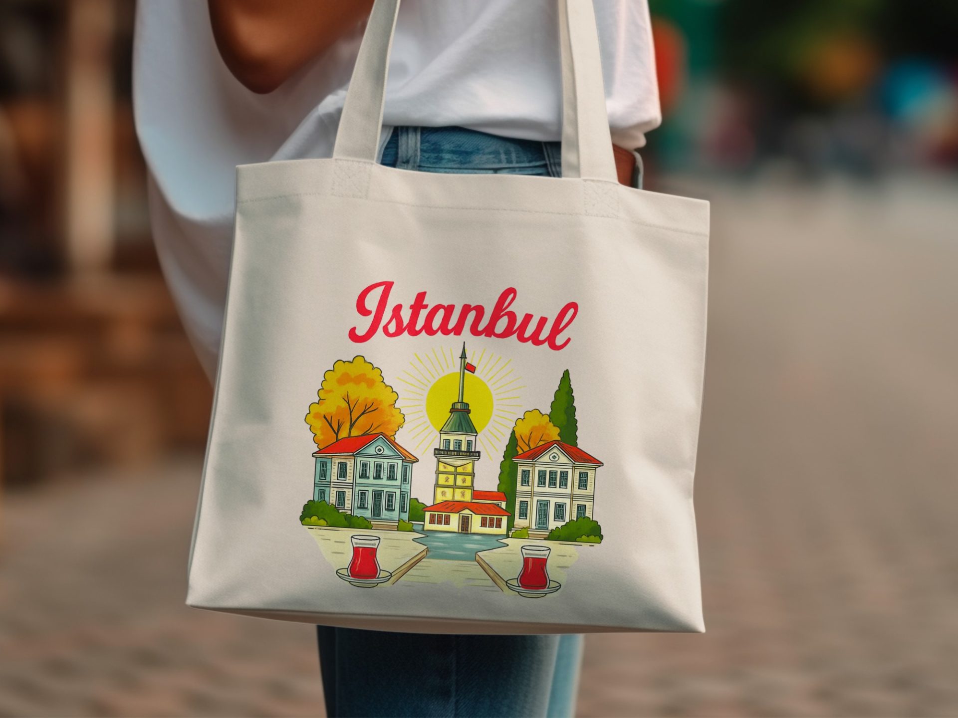 Showcase your love for travel with this Istanbul cityscape design on our Tote Bags. This bag is perfect for any occasion from grocery shopping to casual outings.