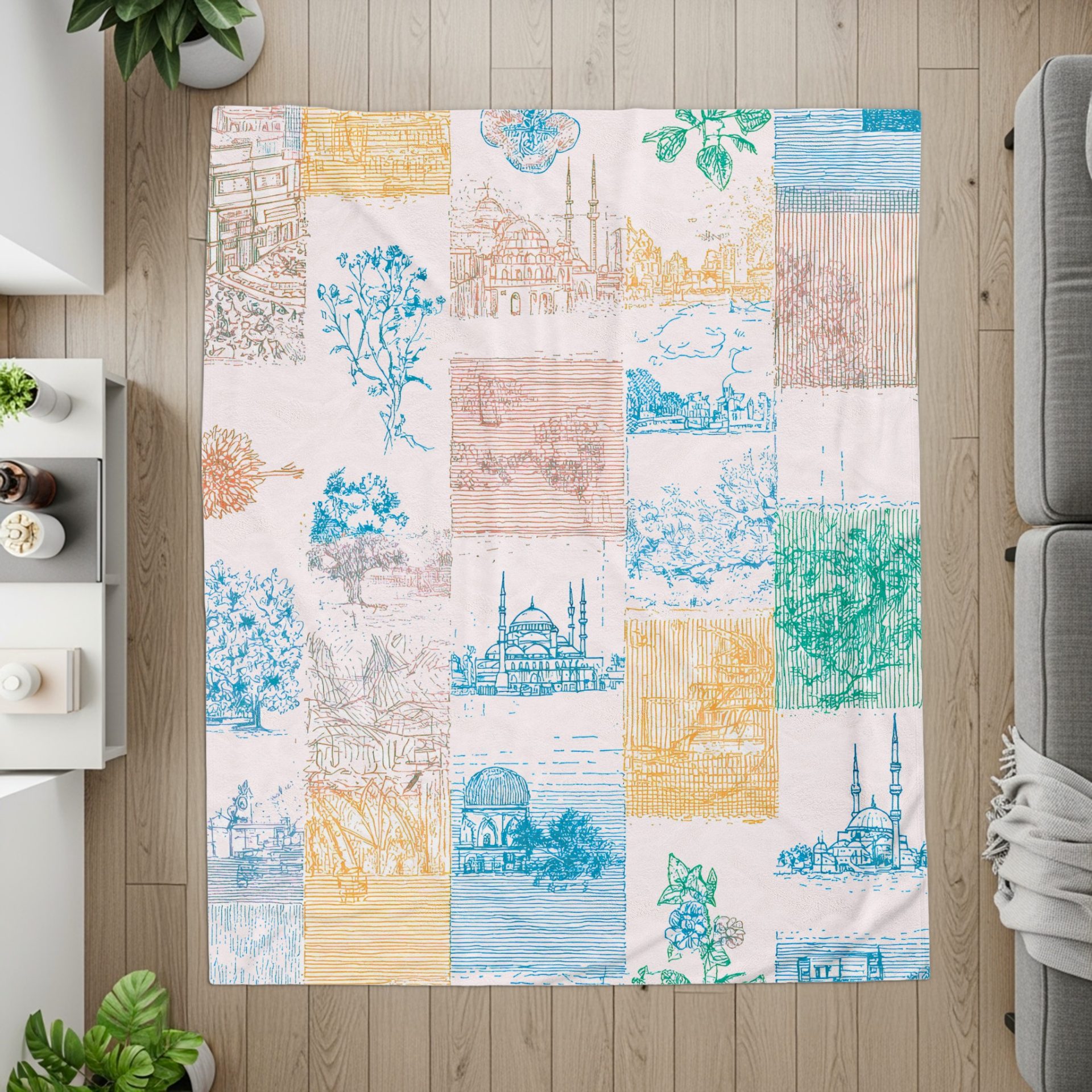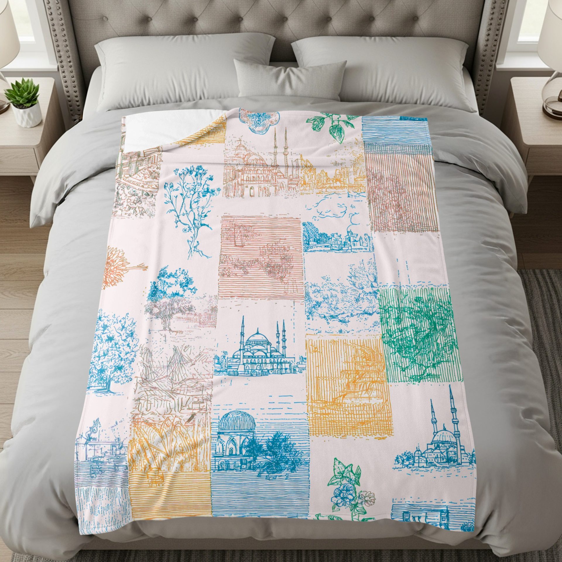 Colorful Patchwork of Landmarks Nature Scenic Design Blankets