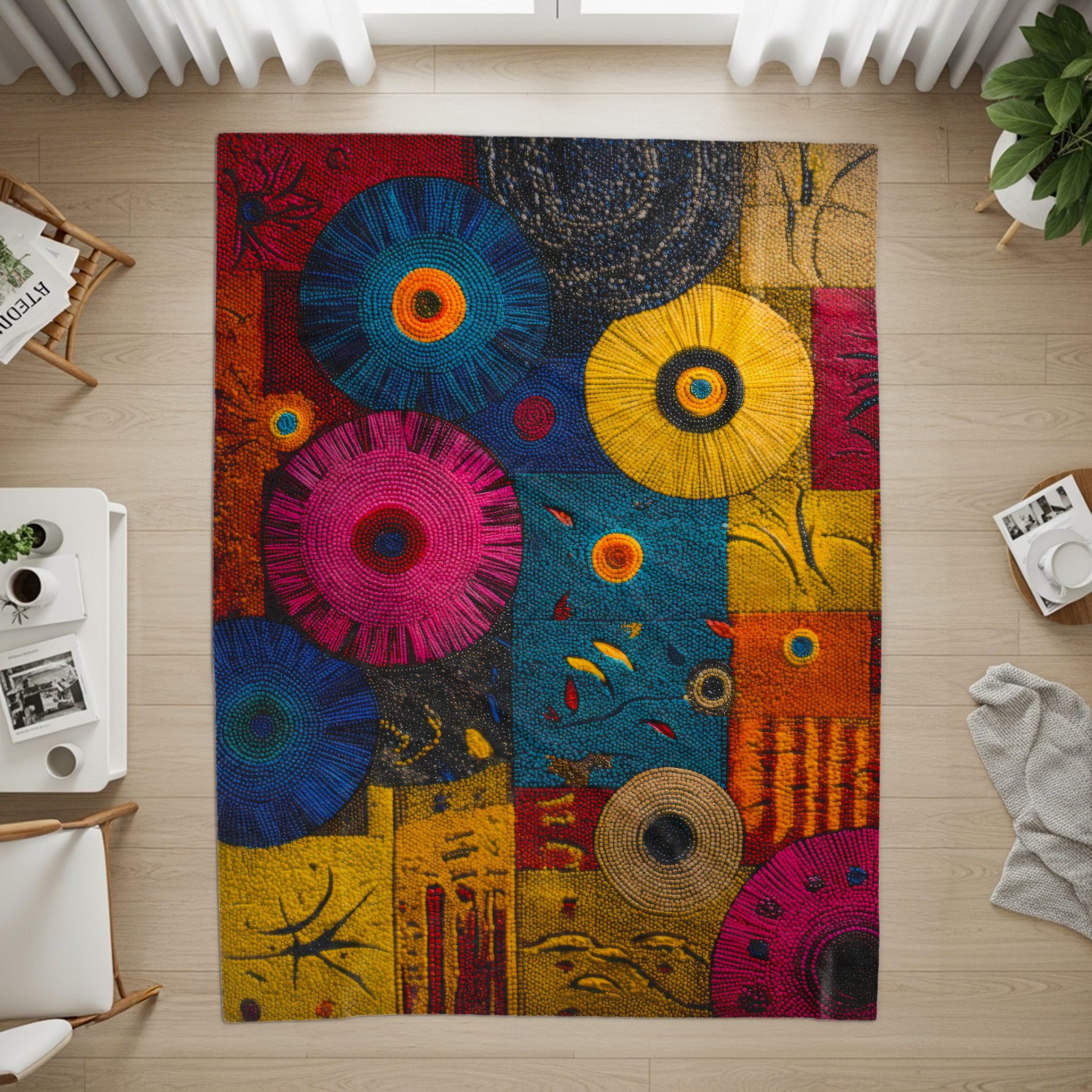 Experience the vibrant energy of this Colorful Round Patterns Geometric Style Unique Design Blanket. Perfect for adding a splash of color and artistic flair to any room decor.