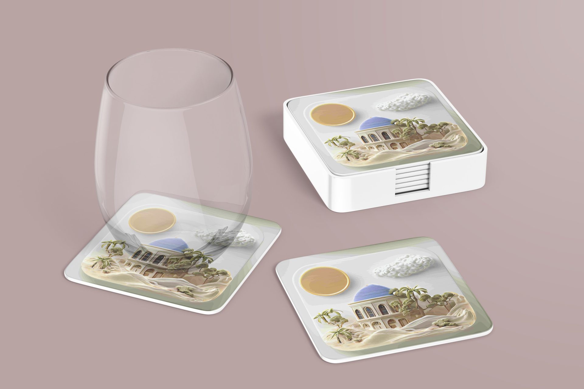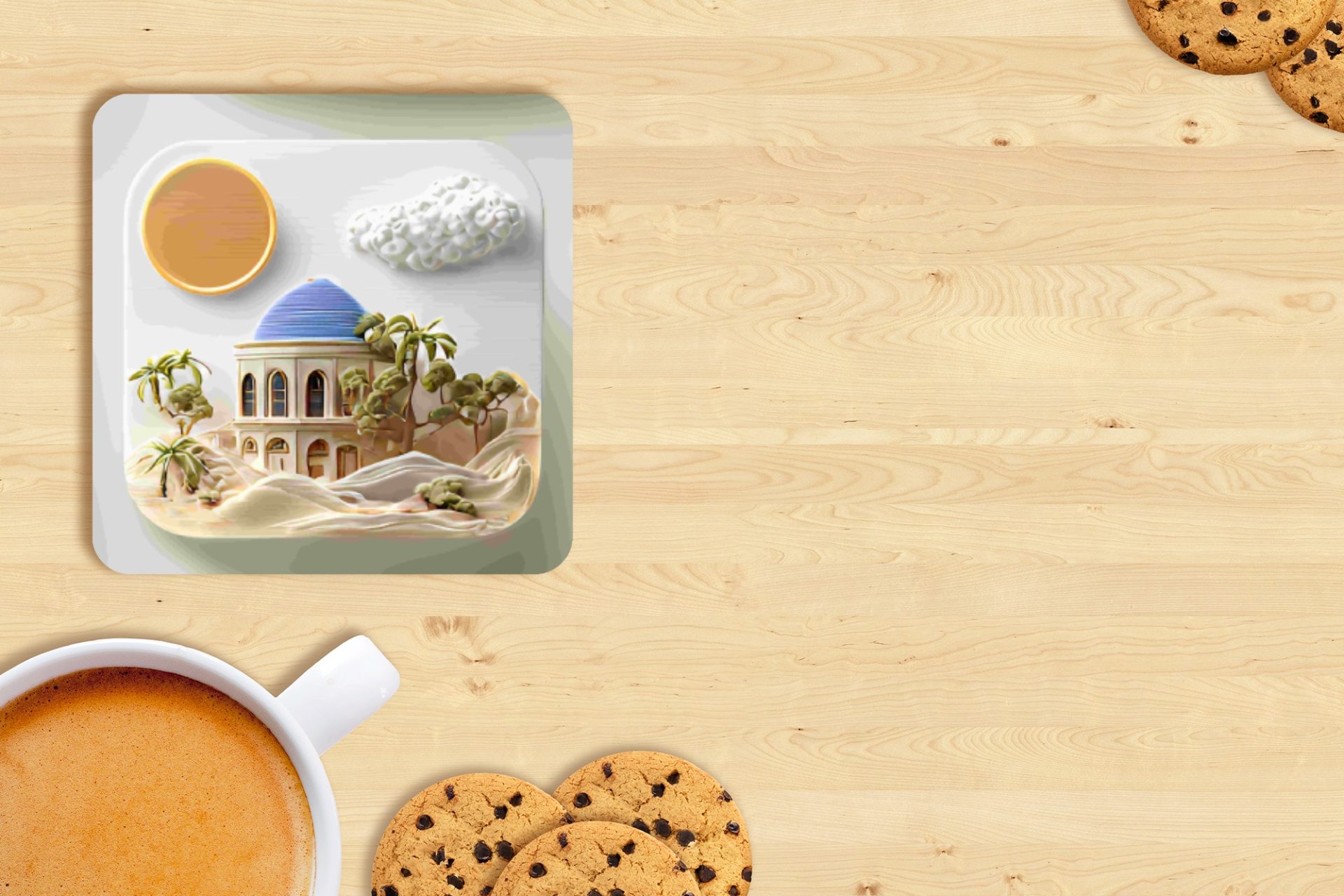 Enhance any space with these distinctive coasters. Featuring building dome trees and cloud. Add a touch of artistic flair to your desk or side table while protecting surfaces.