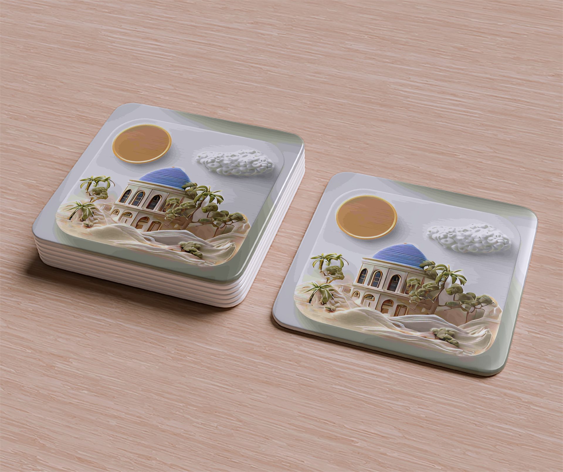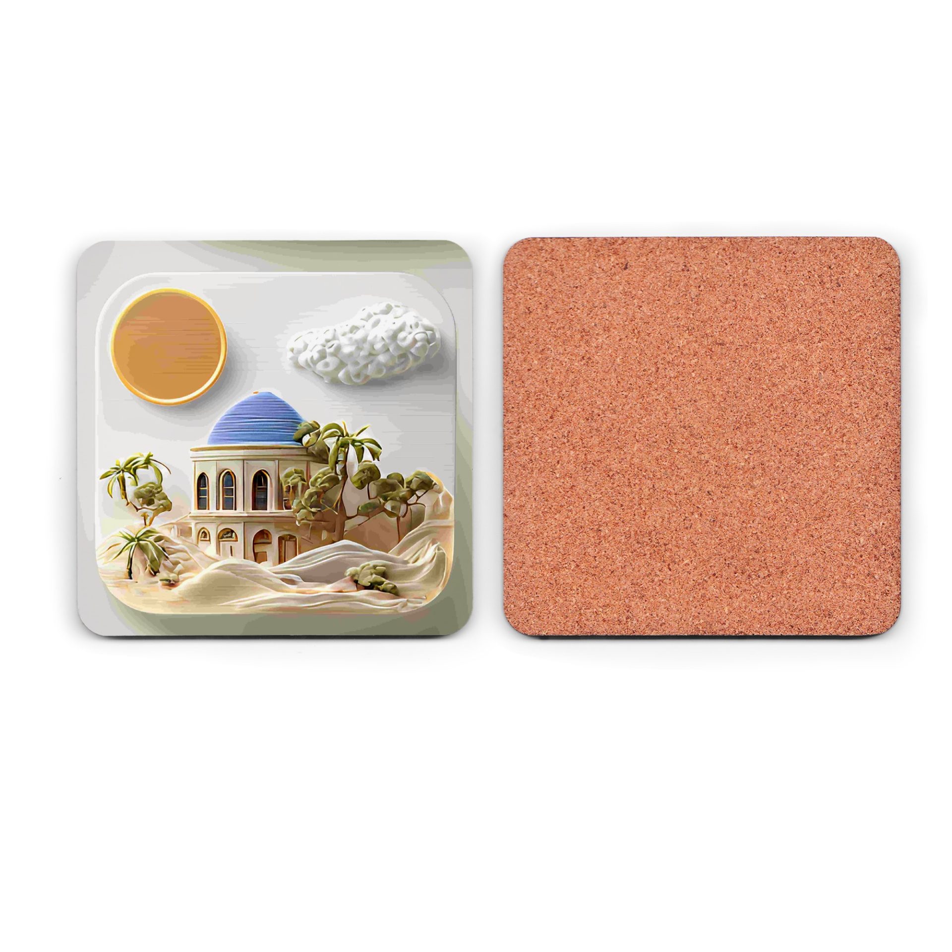 Desert Building With Blue Dome Under Sun And Cloud Coasters