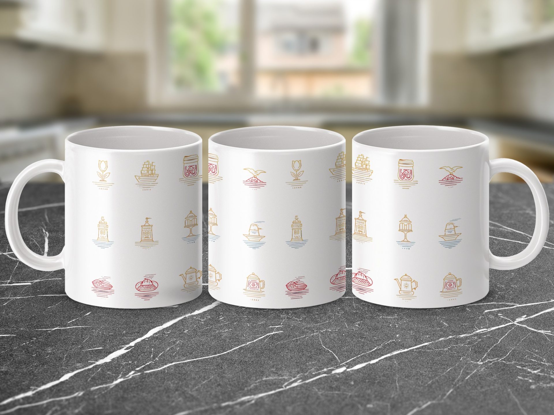 Discover unique mugs featuring a collection of distinct designs including a flower, ship and building. These distinctive mugs offer an eye catching design and are sure to impress!