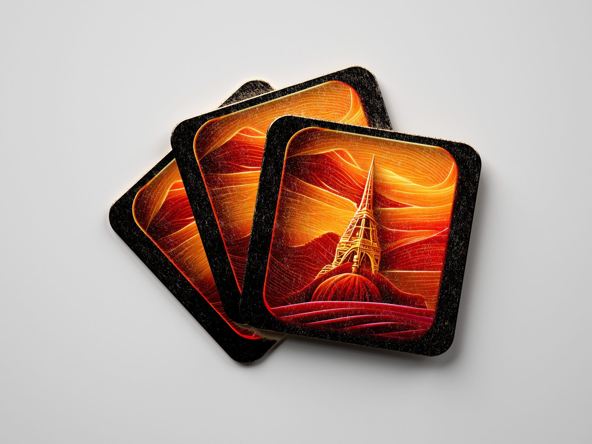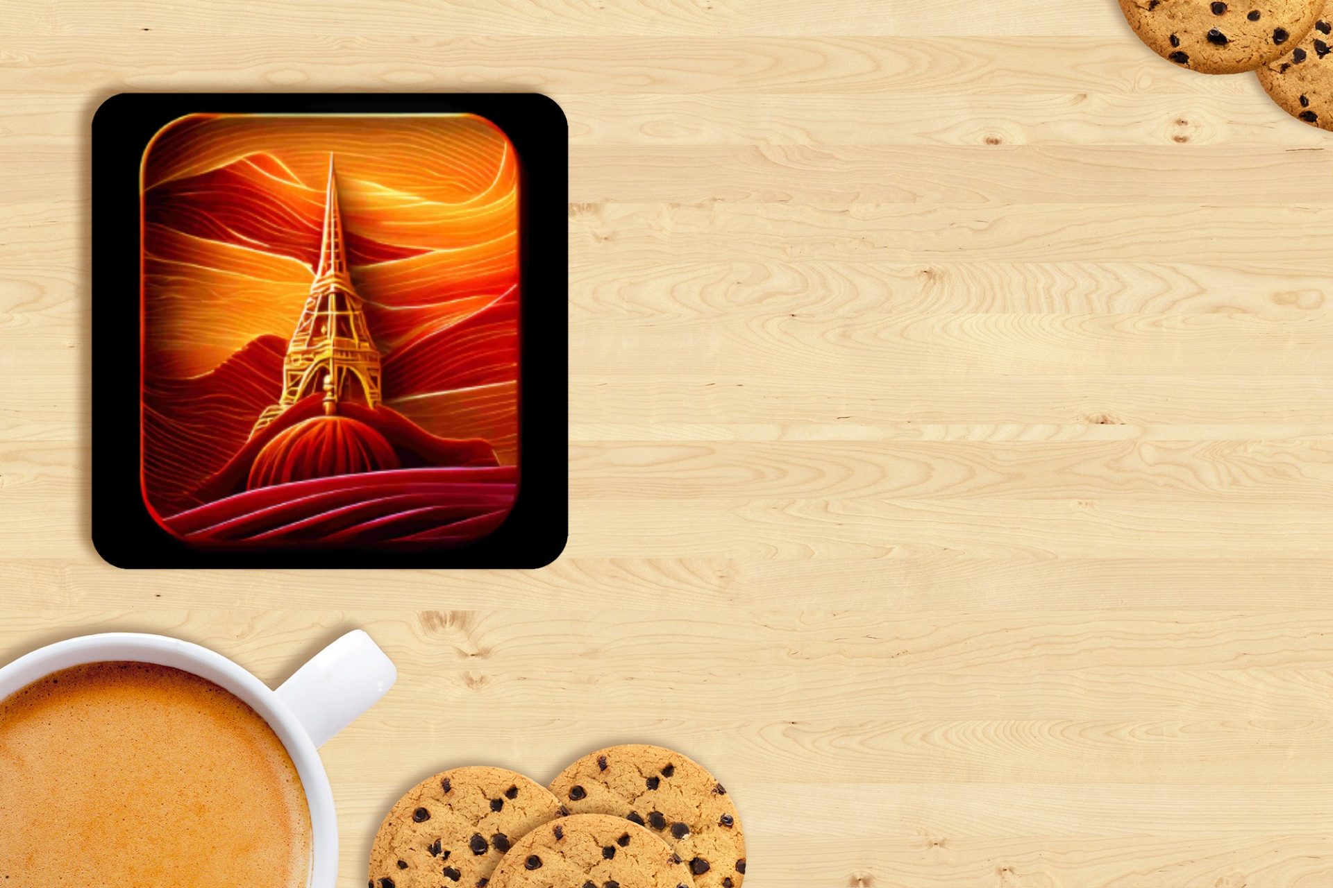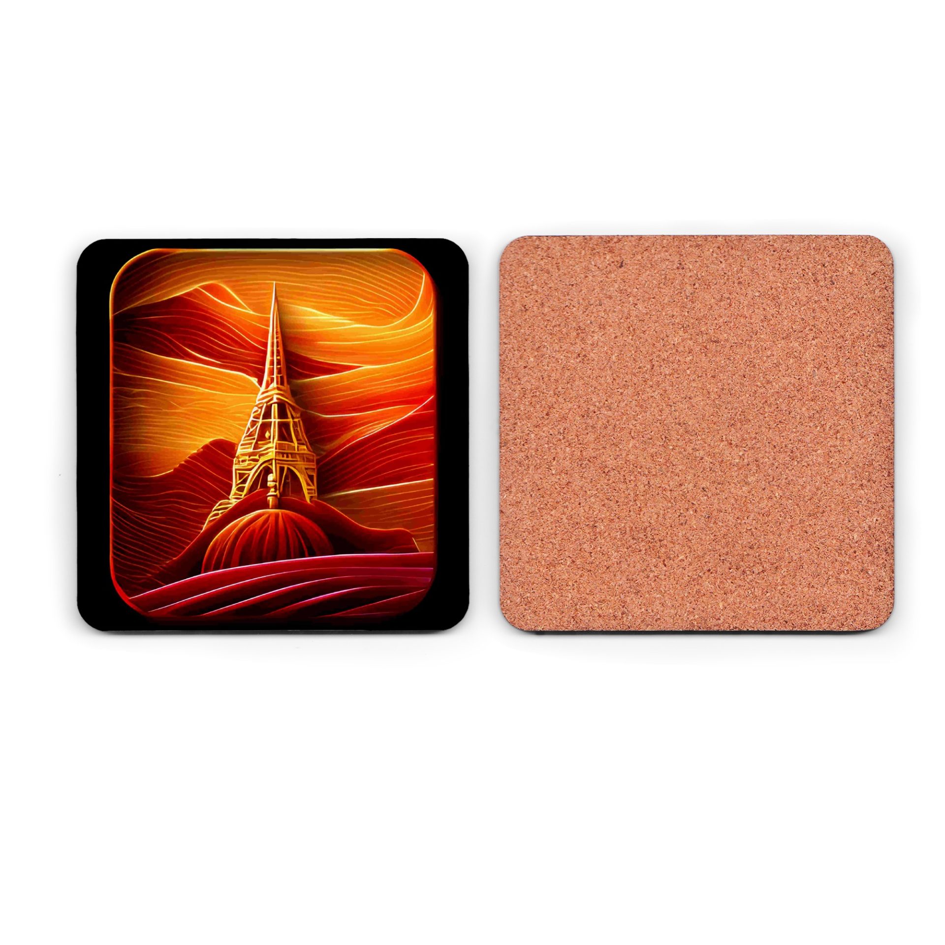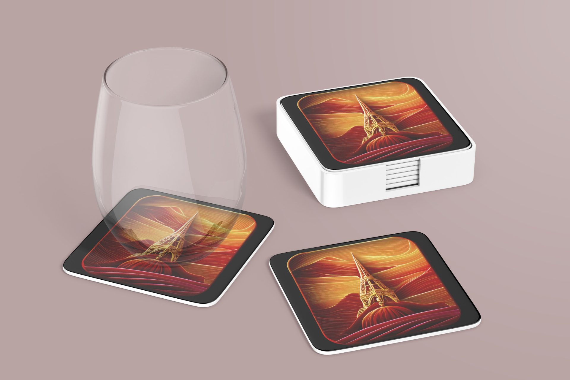 Elevate your space with these Eiffel Tower inspired Coasters. Showcasing Paris France in abstract golden hues this set adds a touch of sophistication to any table setting.