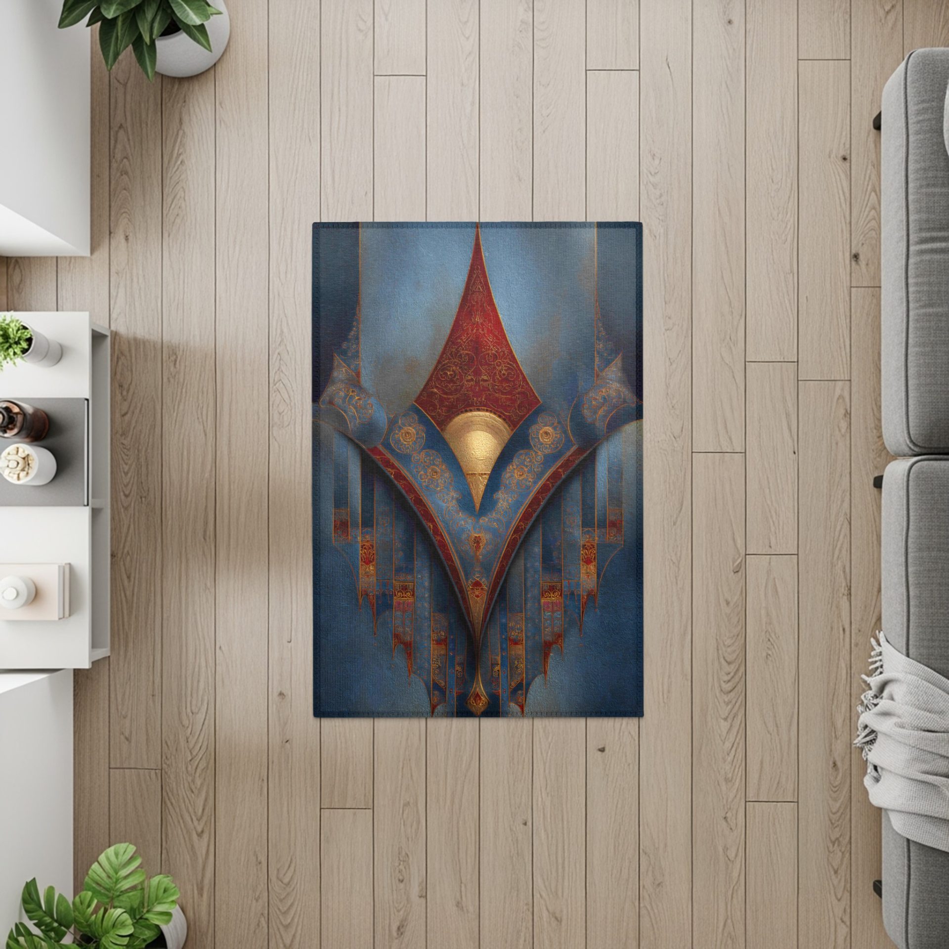 Exquisite Gold Detailing on Azure Blue Patterned Rugs