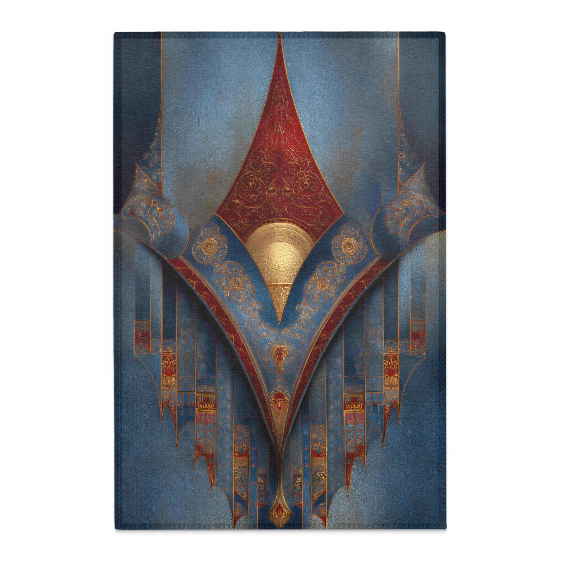 Discover intricate detailing and rich colors on this stunning blue and gold patterned rug. An elegant addition to any room it brings a touch of opulent sophistication.