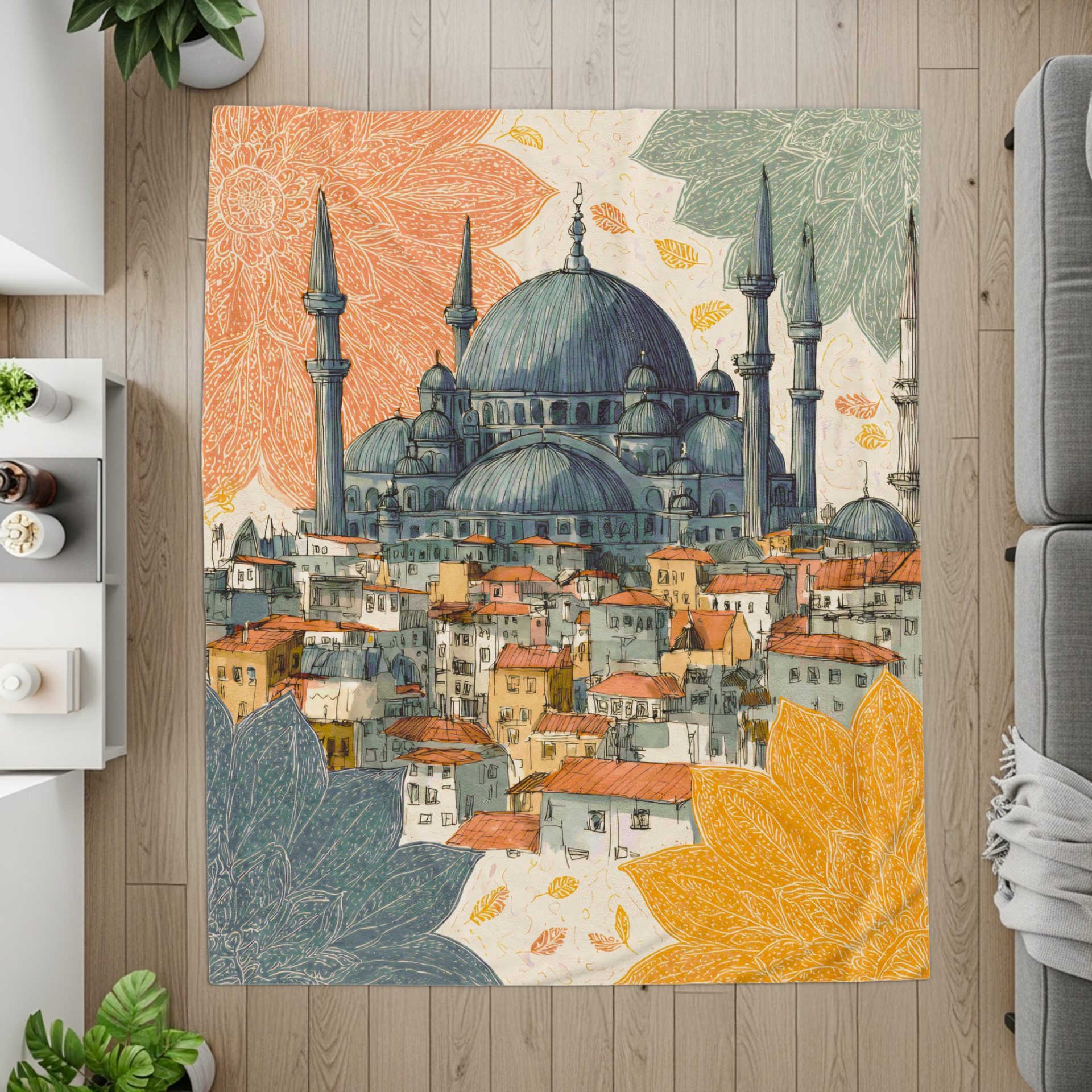 Floral Istanbul Skyline Architectural Design Blankets