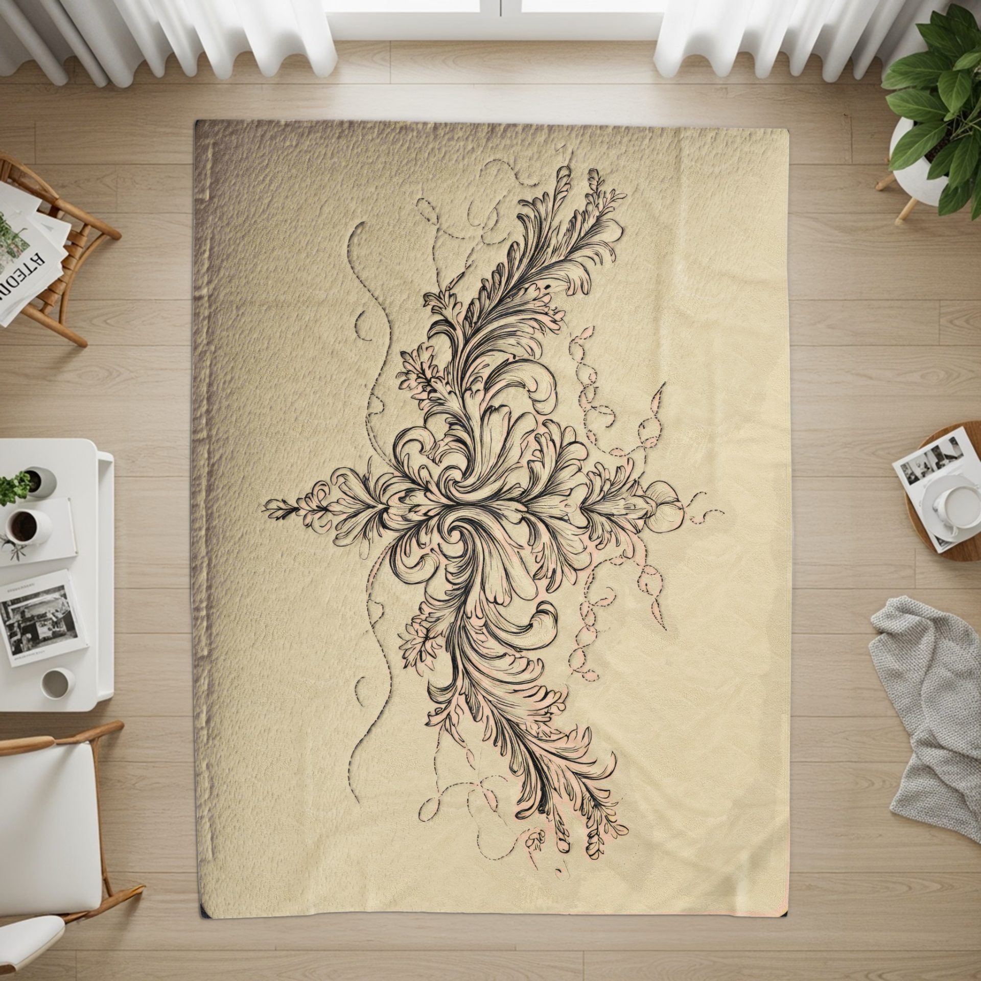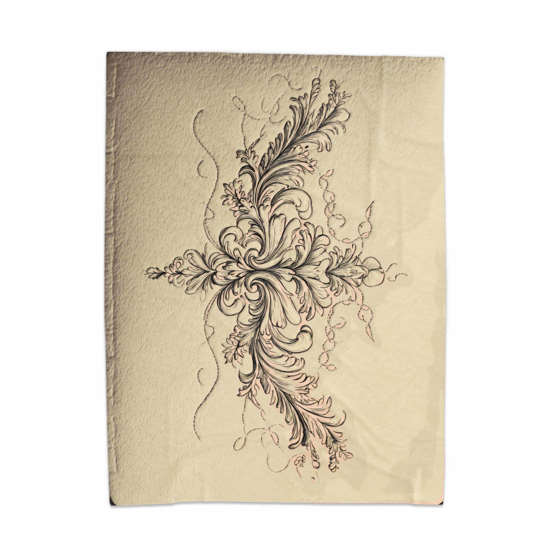 Floral Ornament Design in Beige Quilted Background Blankets