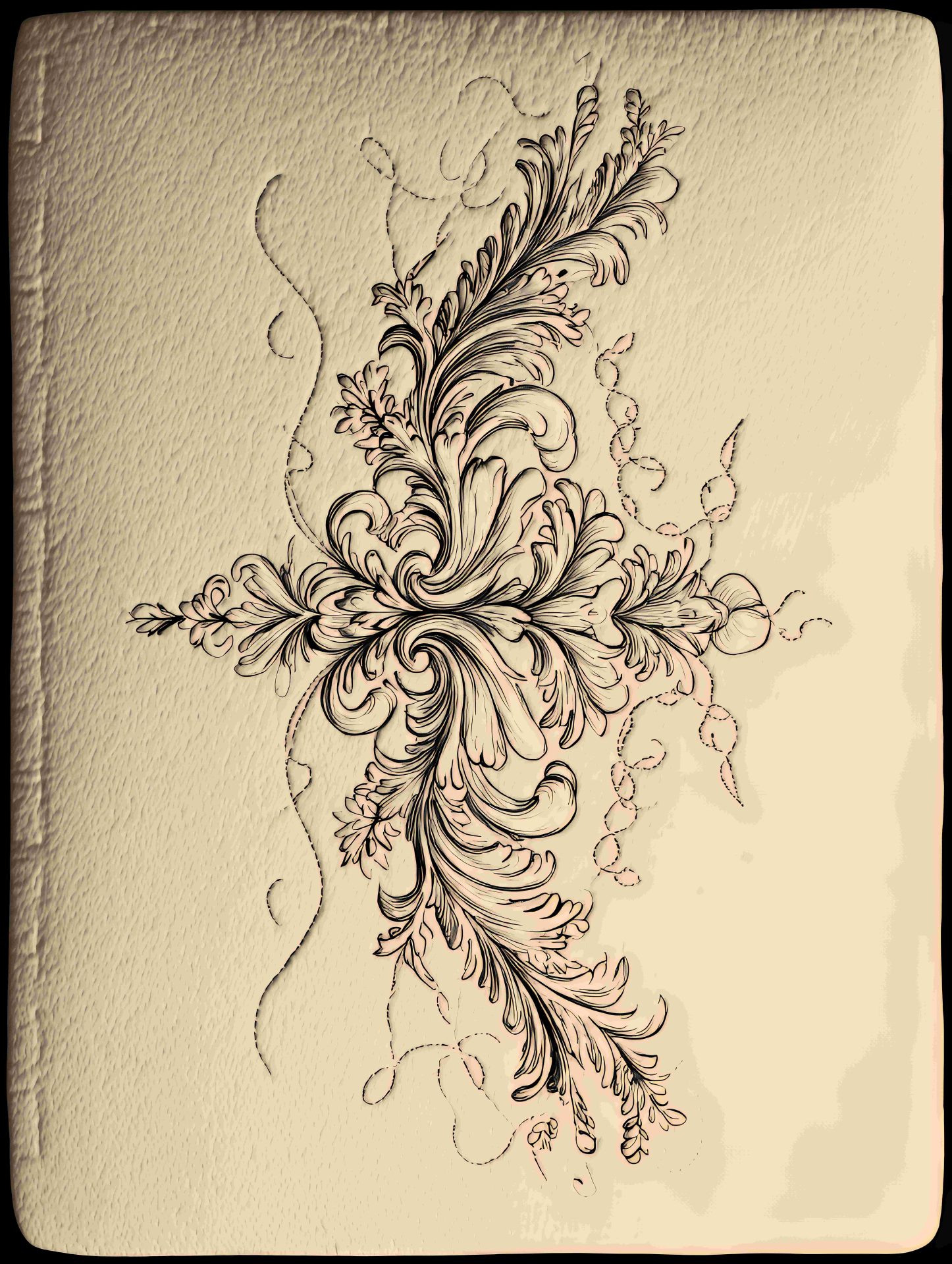 Elegant floral ornament in black and pink shades over a subtle quilted beige backdrop. Perfect to decorate home with this unique artistic design and add a touch of class to your interior.