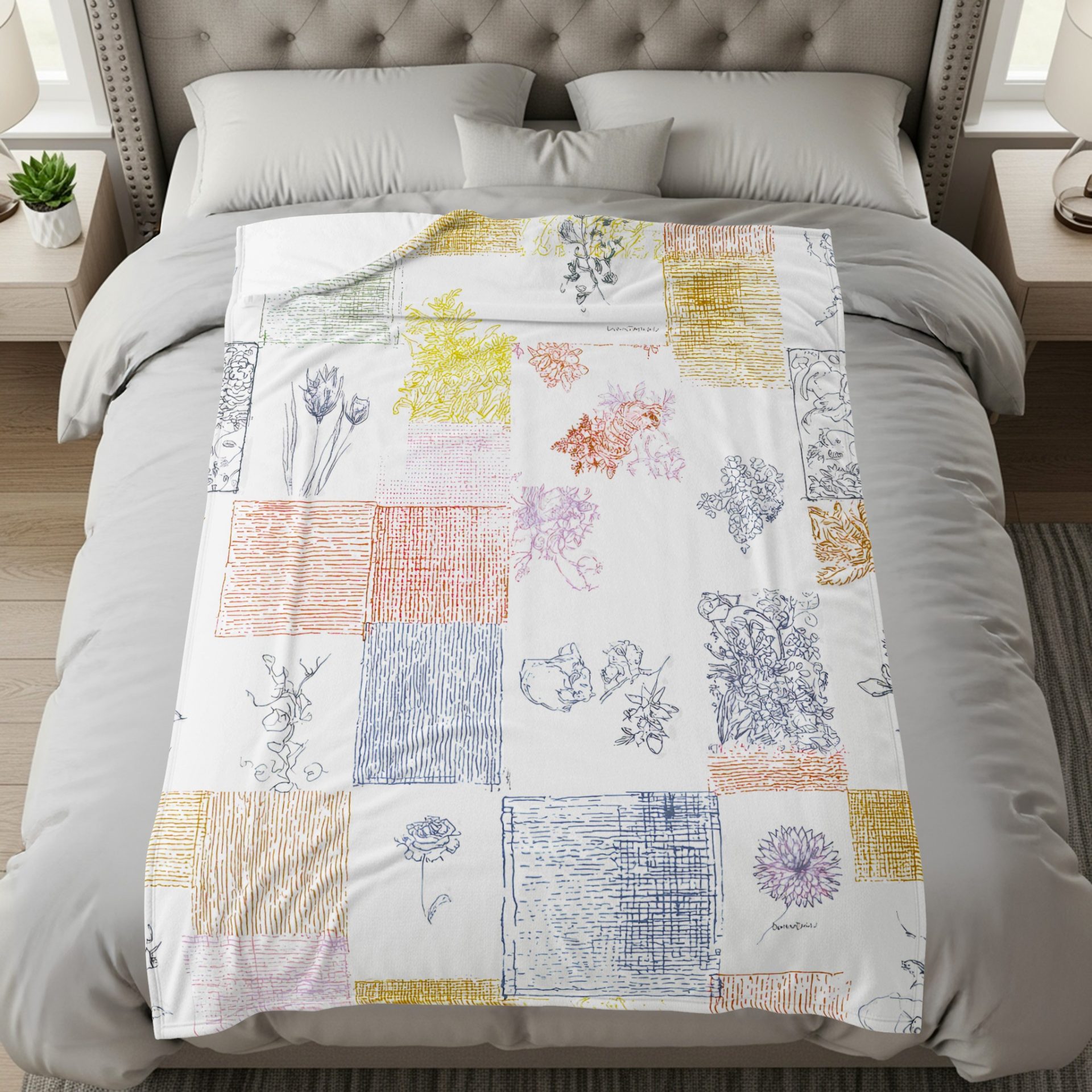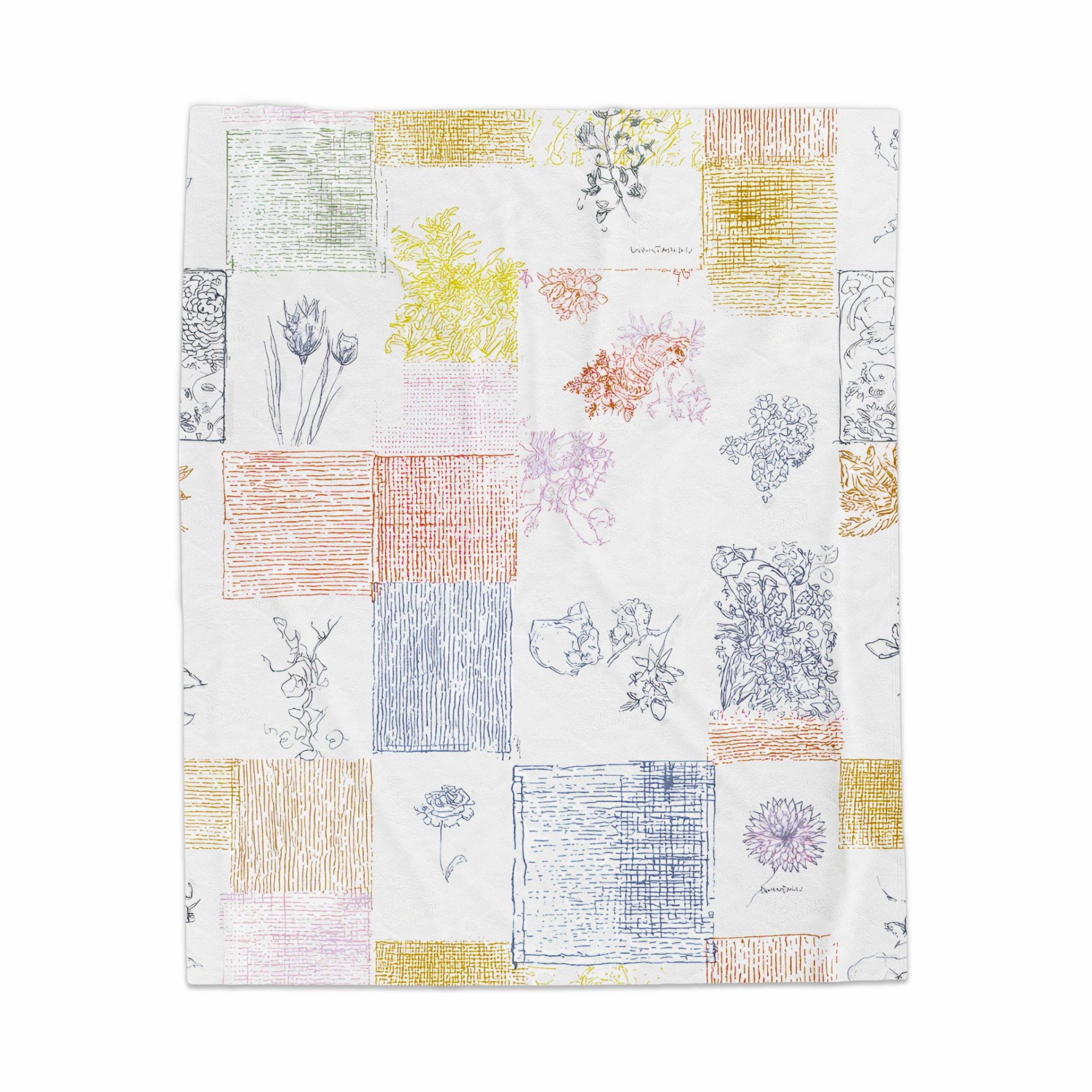 Floral Sketchbook Patchwork Squares Design Pattern Blankets