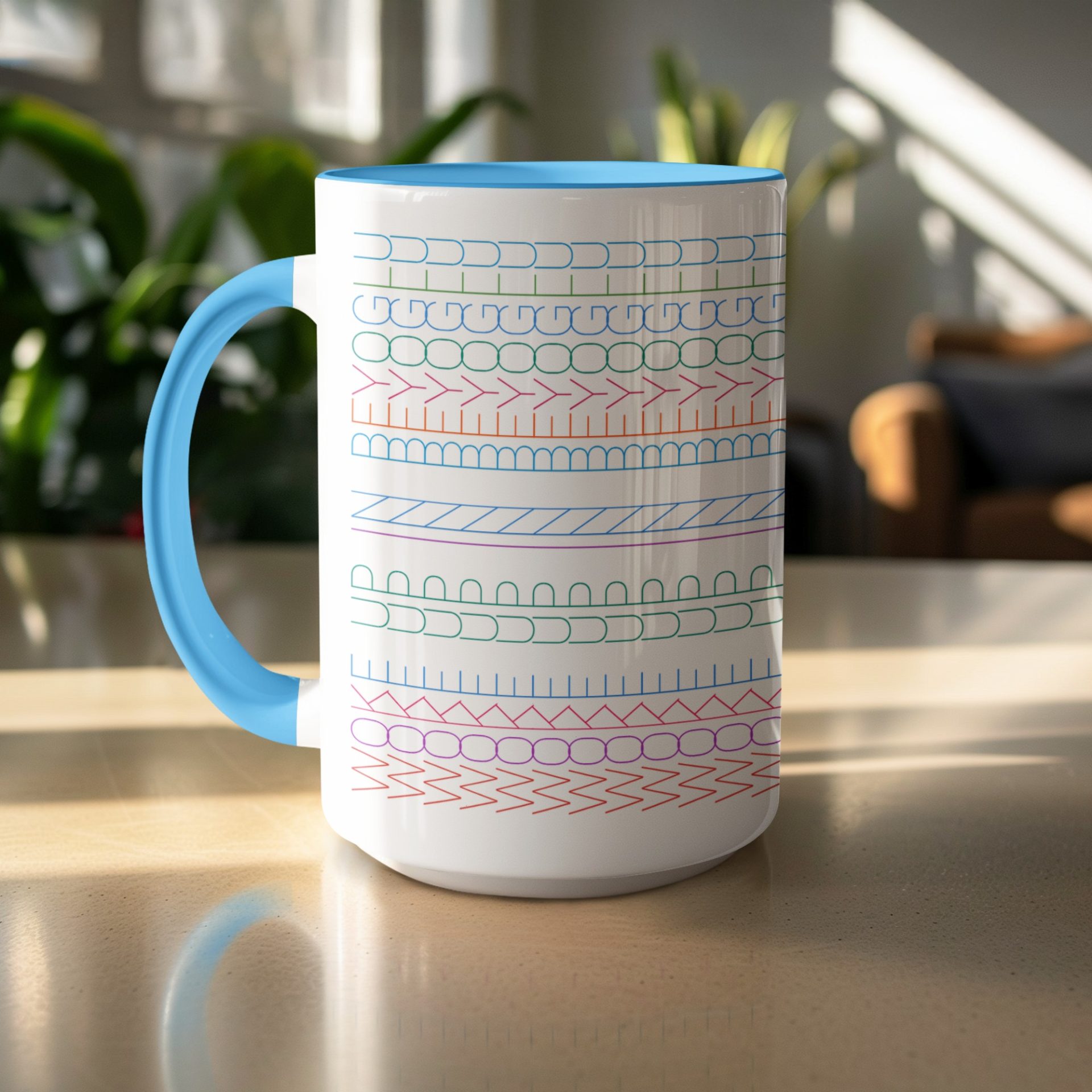 Discover our geometric patterns mugs. Featuring colorful borders and unique designs for stylish drinkware. Perfect for adding a modern touch to your coffee or tea time.