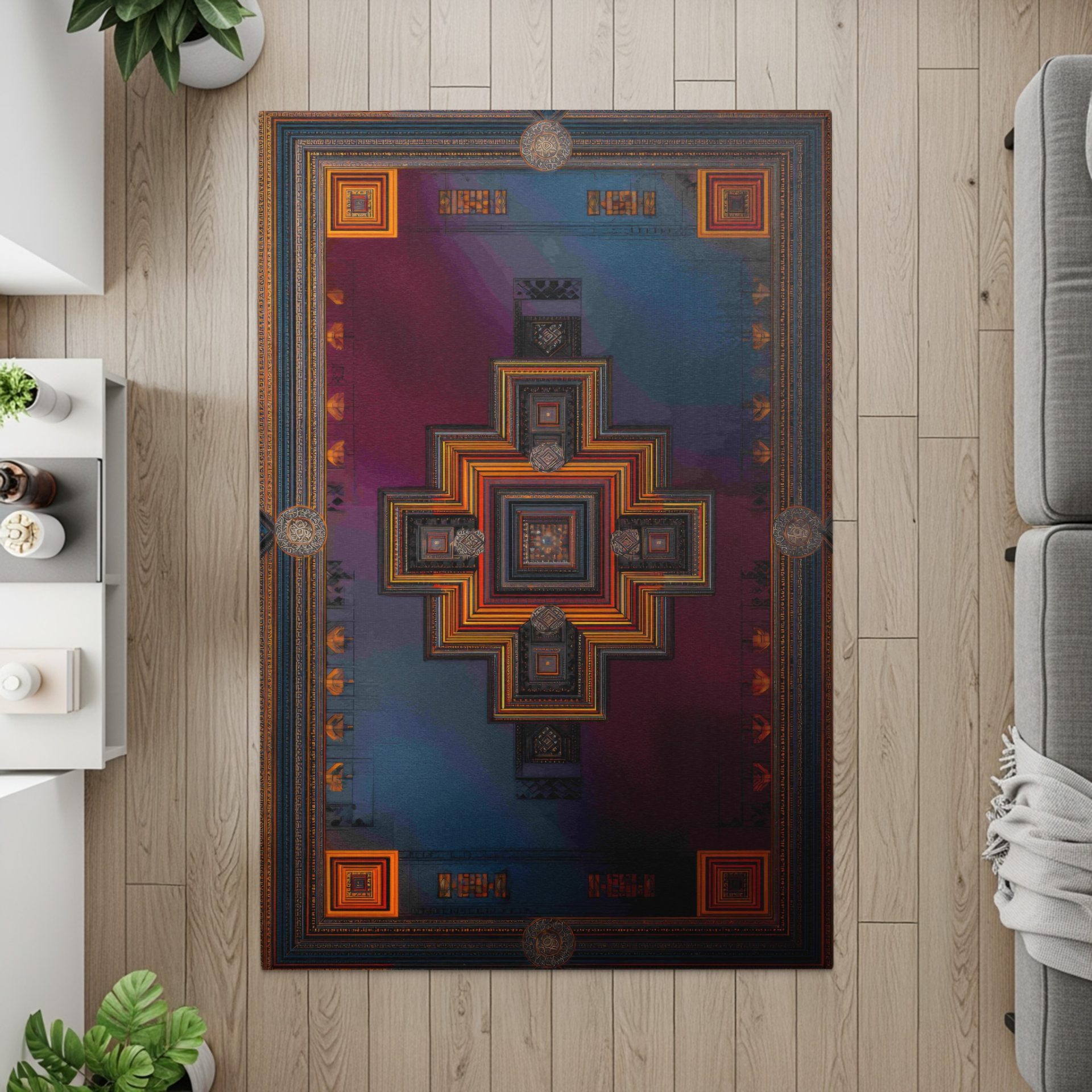 Geometric Egyptian Patterns In Reds And Blues Decor Rugs