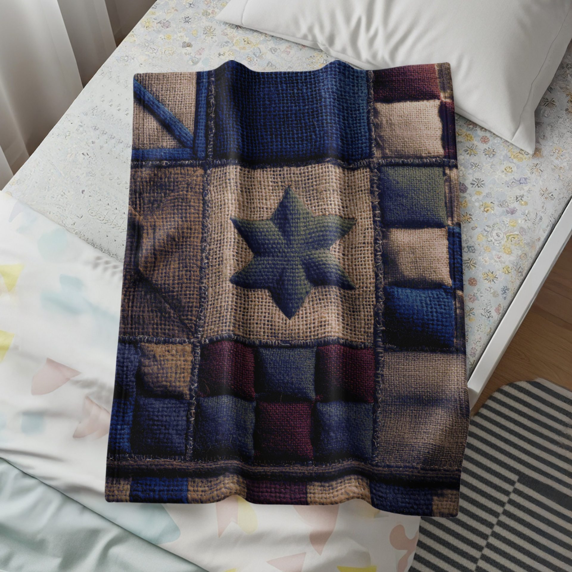 Geometric Patchwork Design Textile Art Star Pattern Blankets