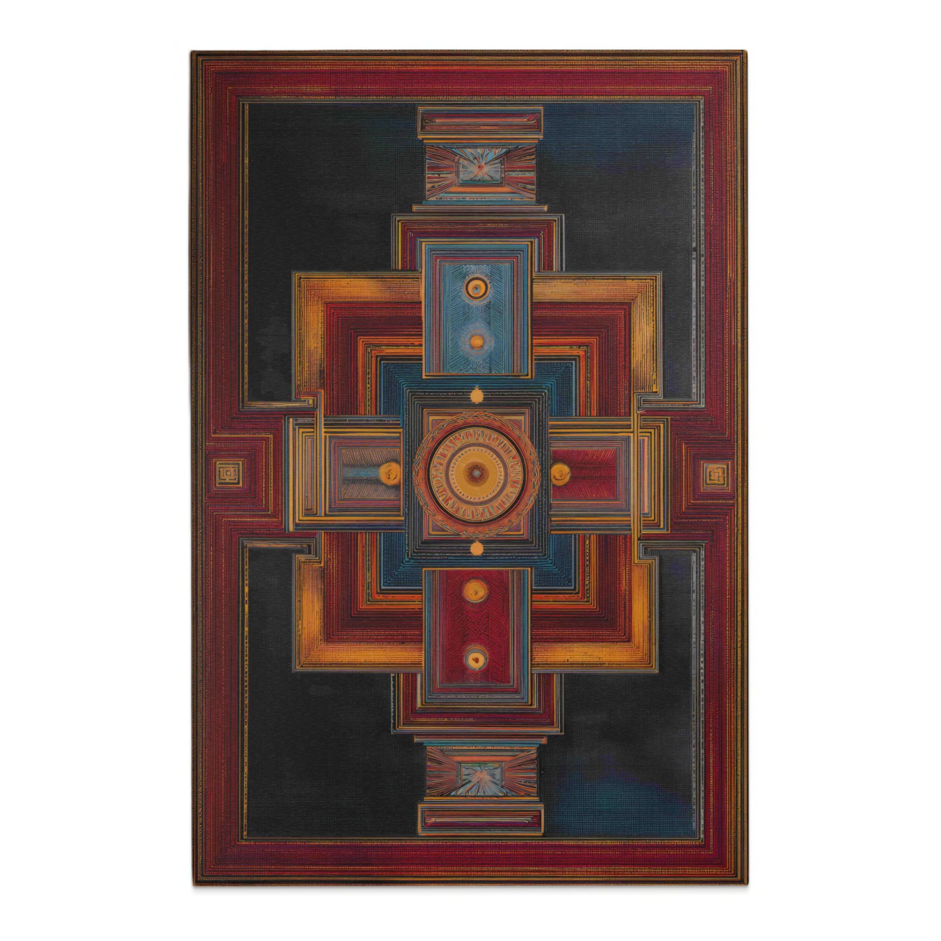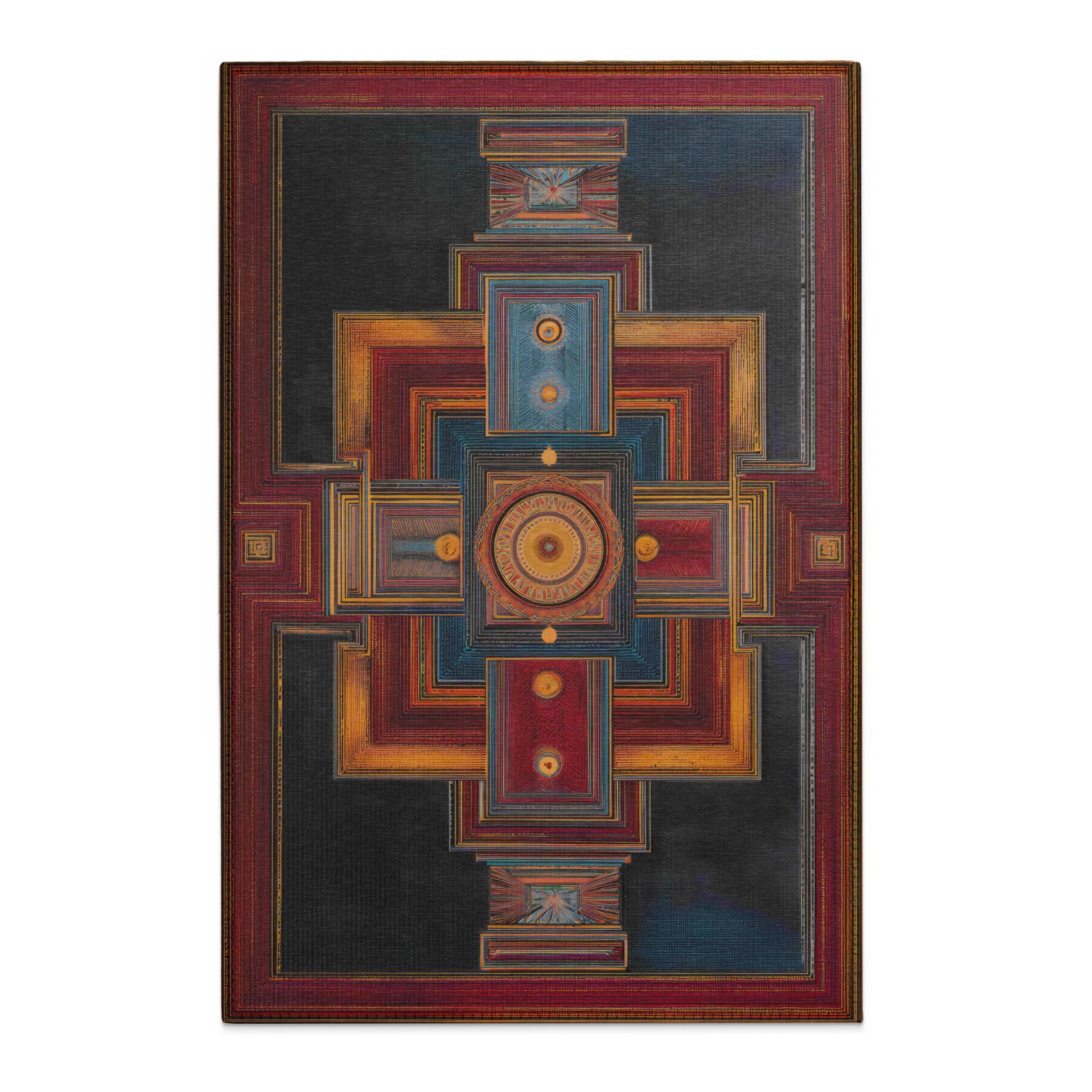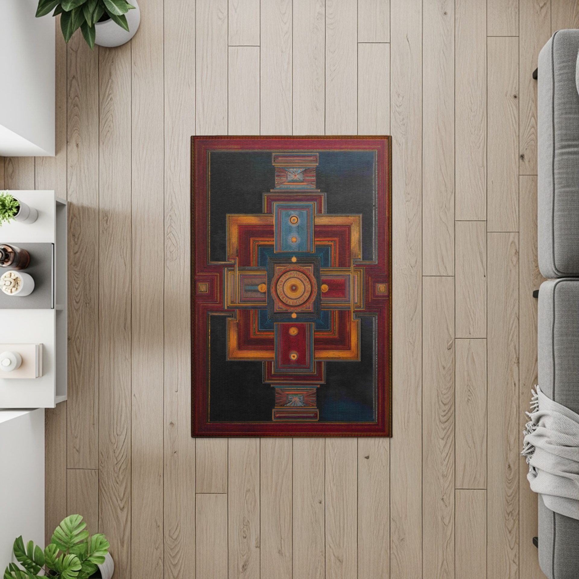 Elevate your space with this uniquely designed rug featuring geometric patterns and ornate ring details. The intricate color palette adds a touch of luxury to any room decor.