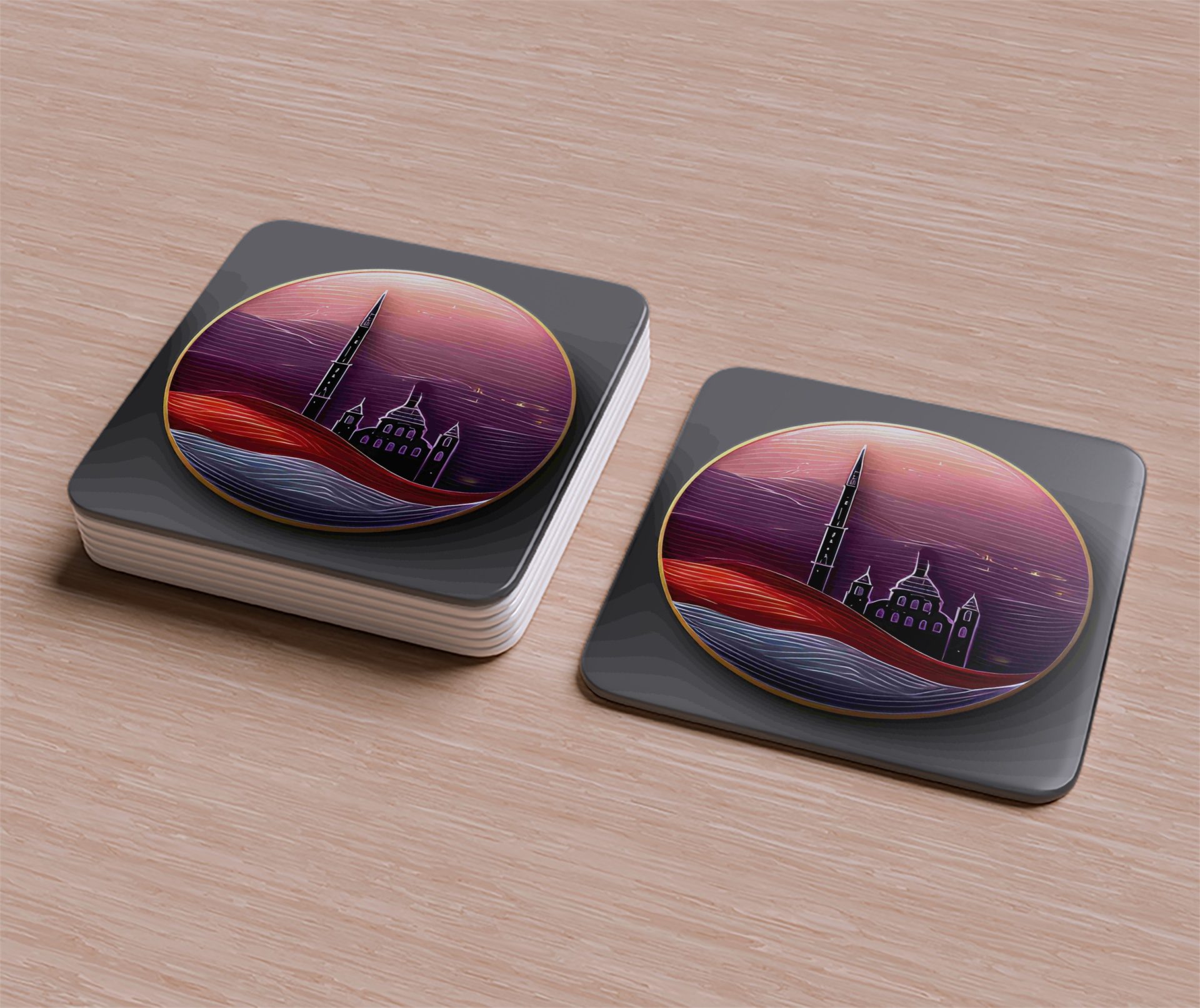Showcase your style with our mosque building inspired coaster design. The skyline inspired art on these coasters will bring the right mood to your space. Get yours now!
