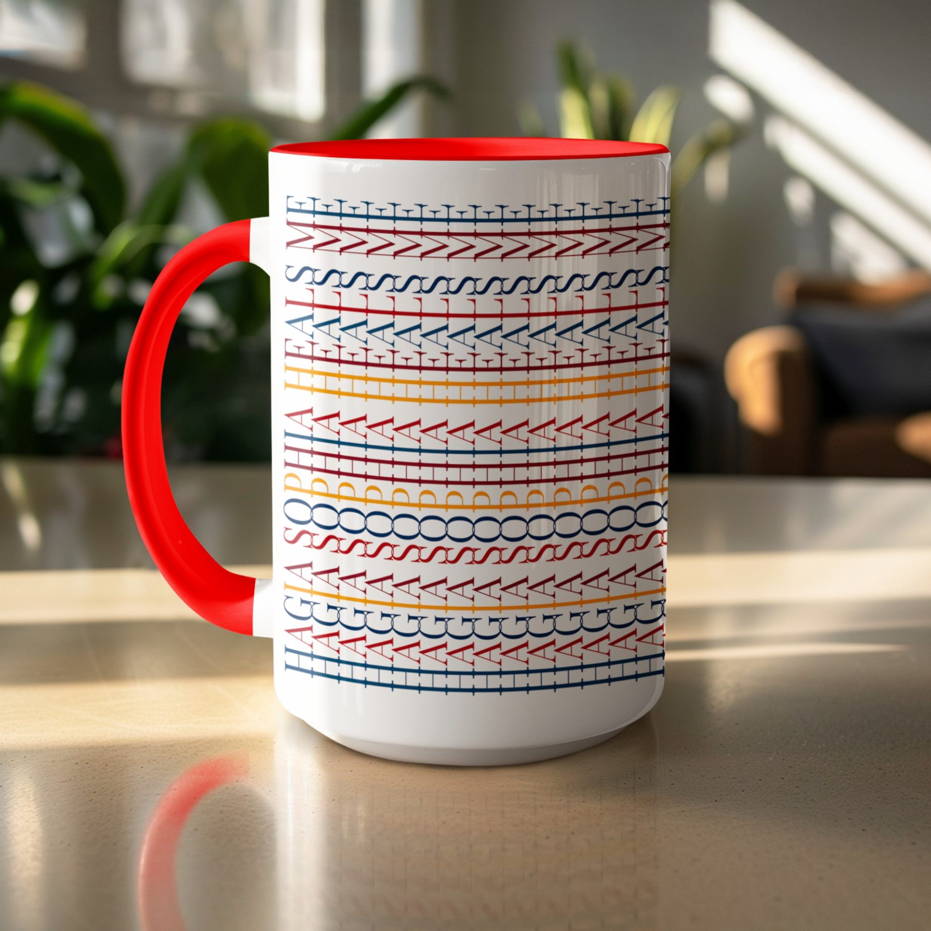 Explore unique Hagia Sophia Heals Me pattern designs showcasing repeating geometric elements with rich colors. Perfect for art lovers searching for distinctive mugs online.