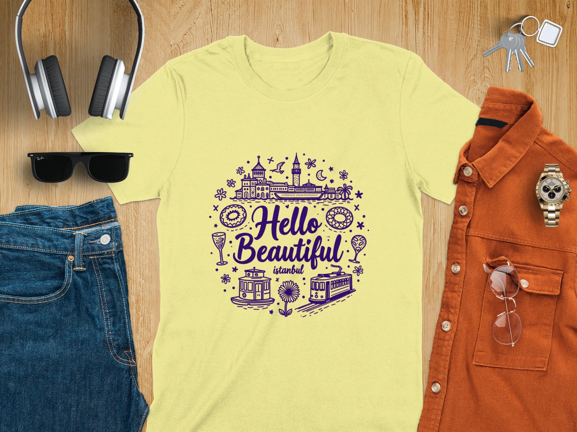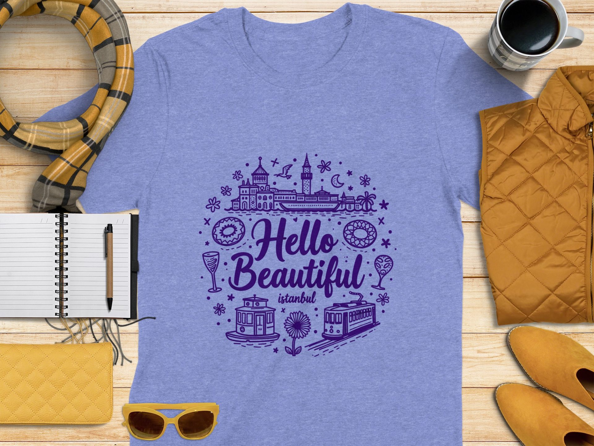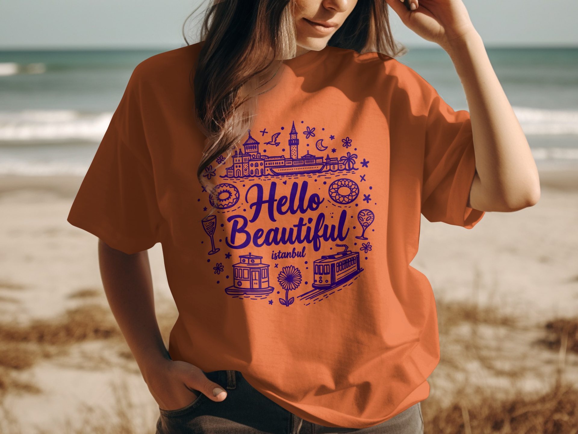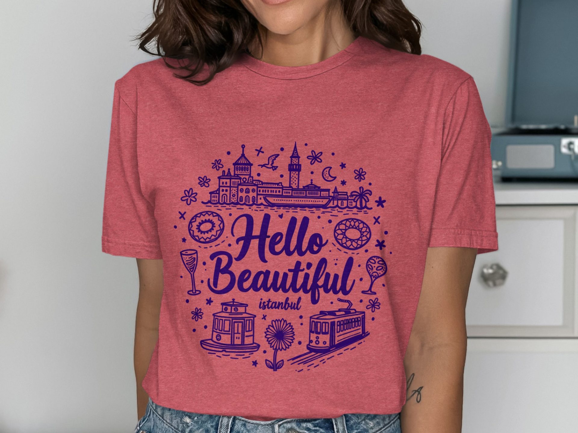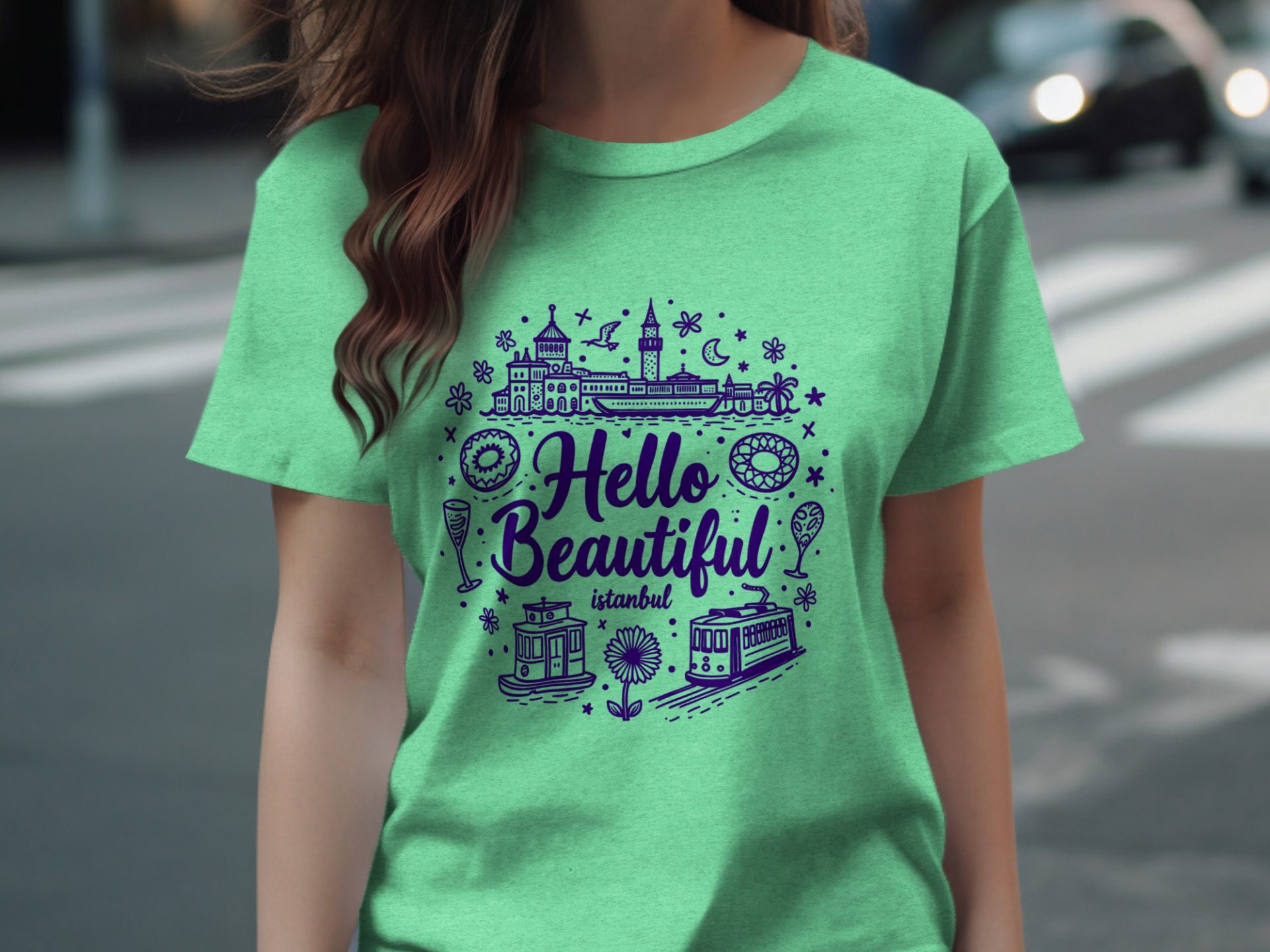 Discover the beauty and charm of Istanbul with our "Hello Beautiful Istanbul" t-shirt, featuring hand-drawn illustrations of iconic landmarks. Perfect as a unique souvenir from your Istanbul vacation or as a gift for Istanbul lovers, this tee captures the essence of the city. Whether you've wandered through its historic streets or dream of visiting, this t-shirt serves as a wonderful reminder of Istanbul's allure.