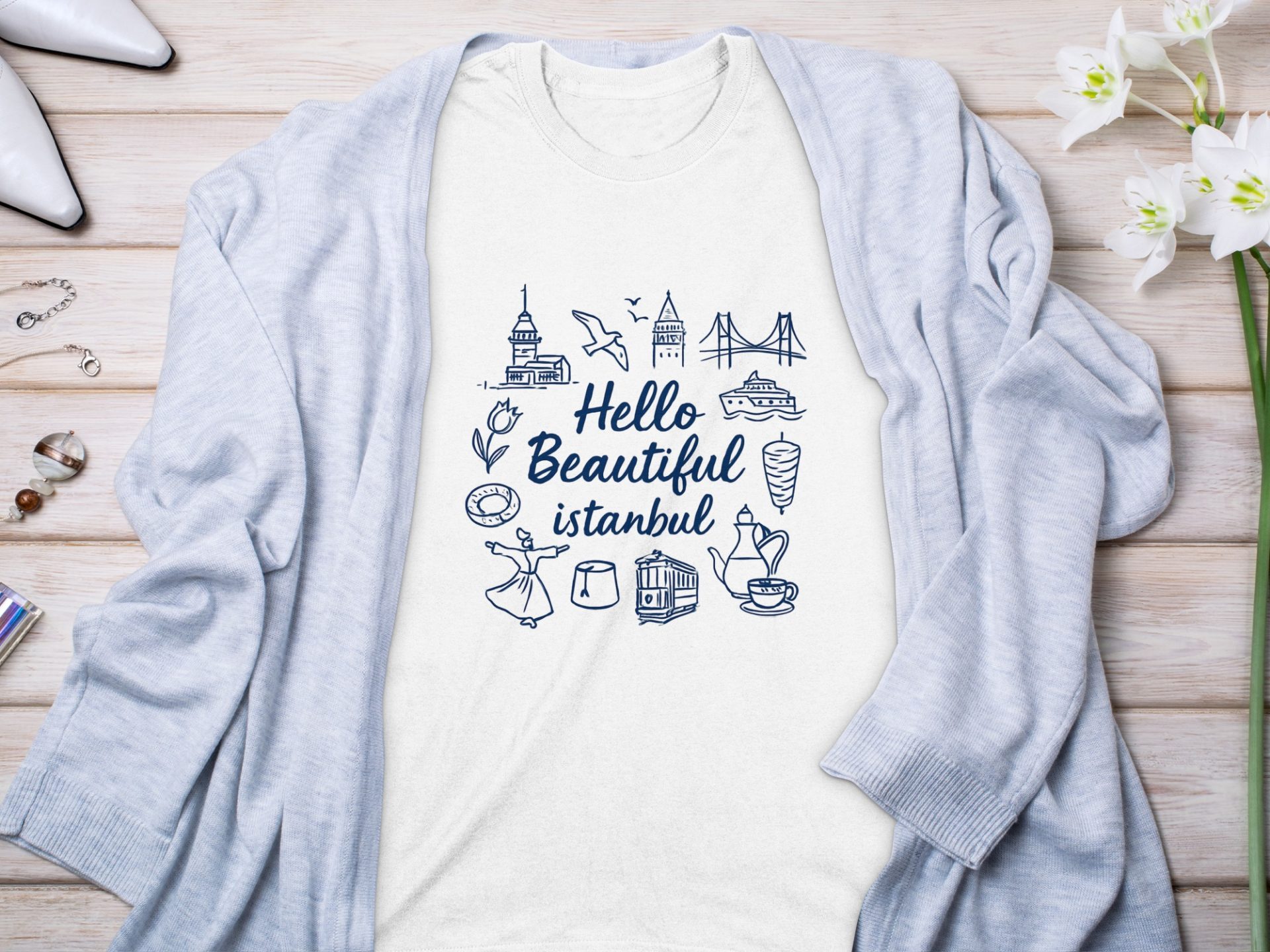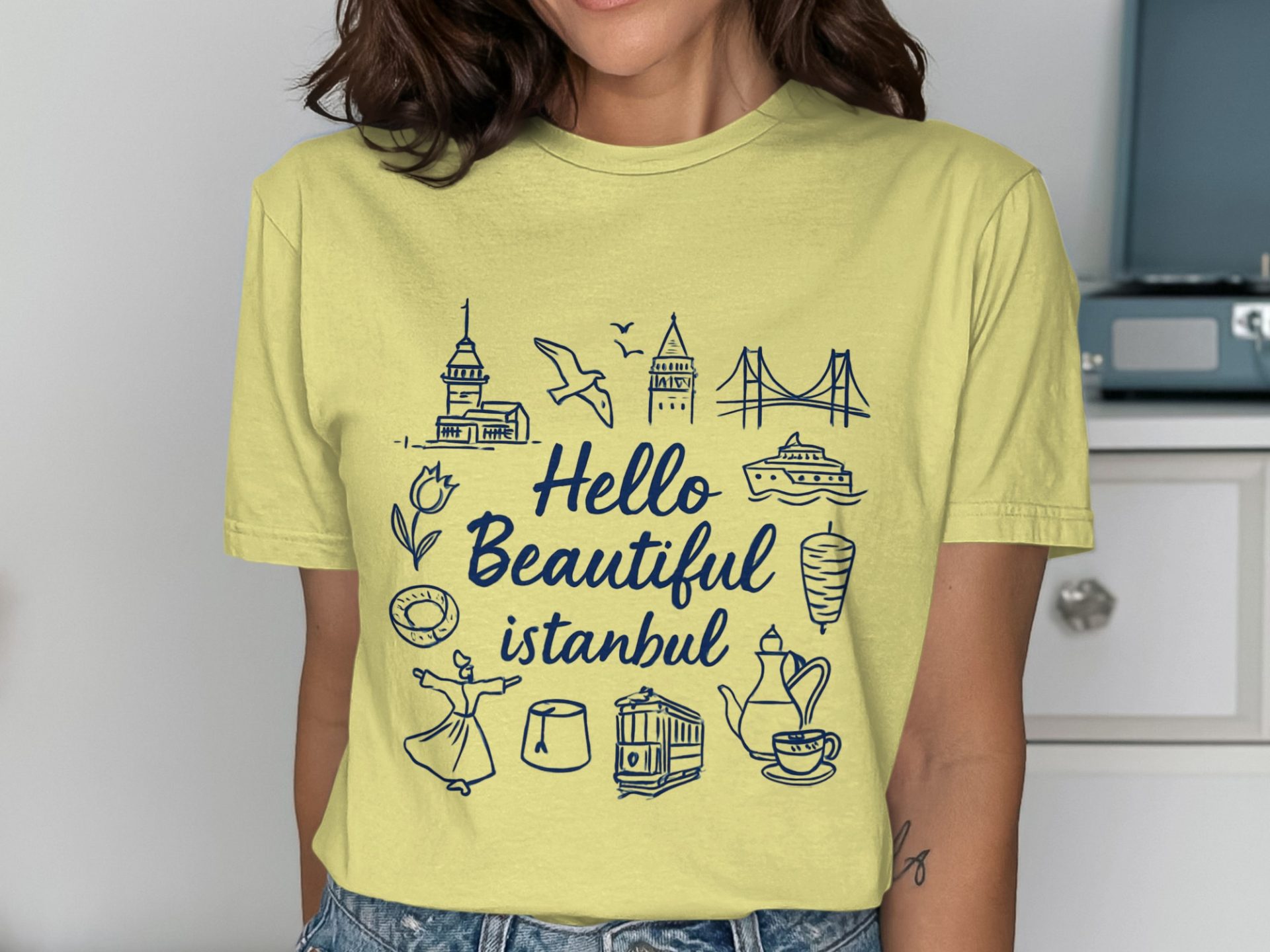 Hello Beautiful Istanbul With Landmark Design T-Shirts