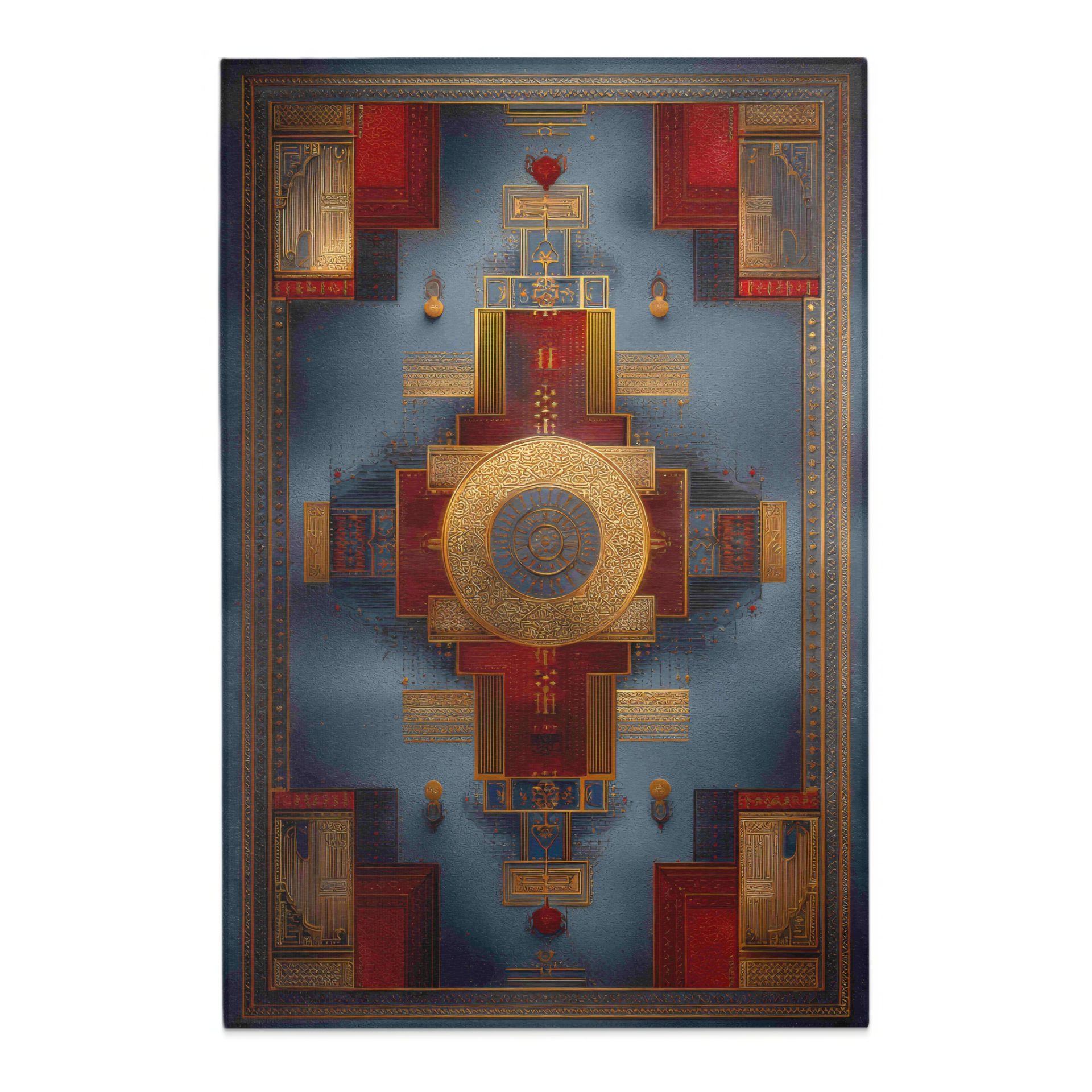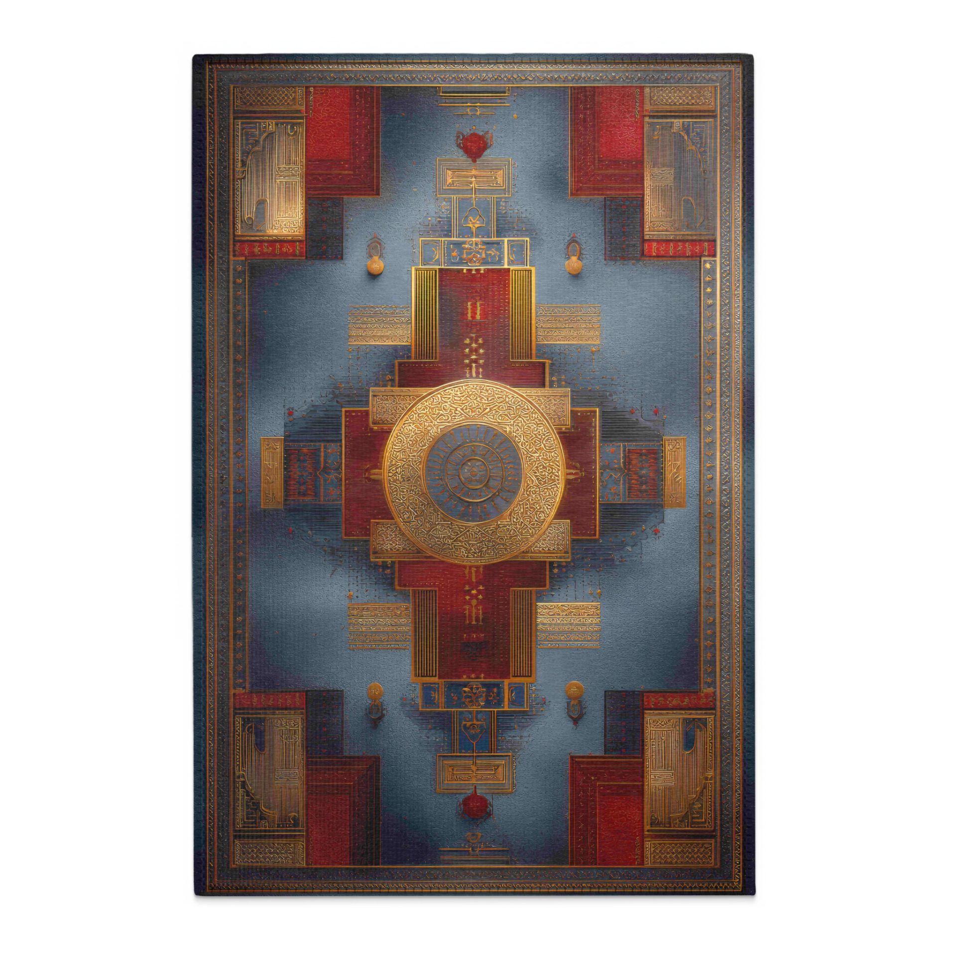 Intricate Ancient Pattern Blue Red Golden Accent Rugs