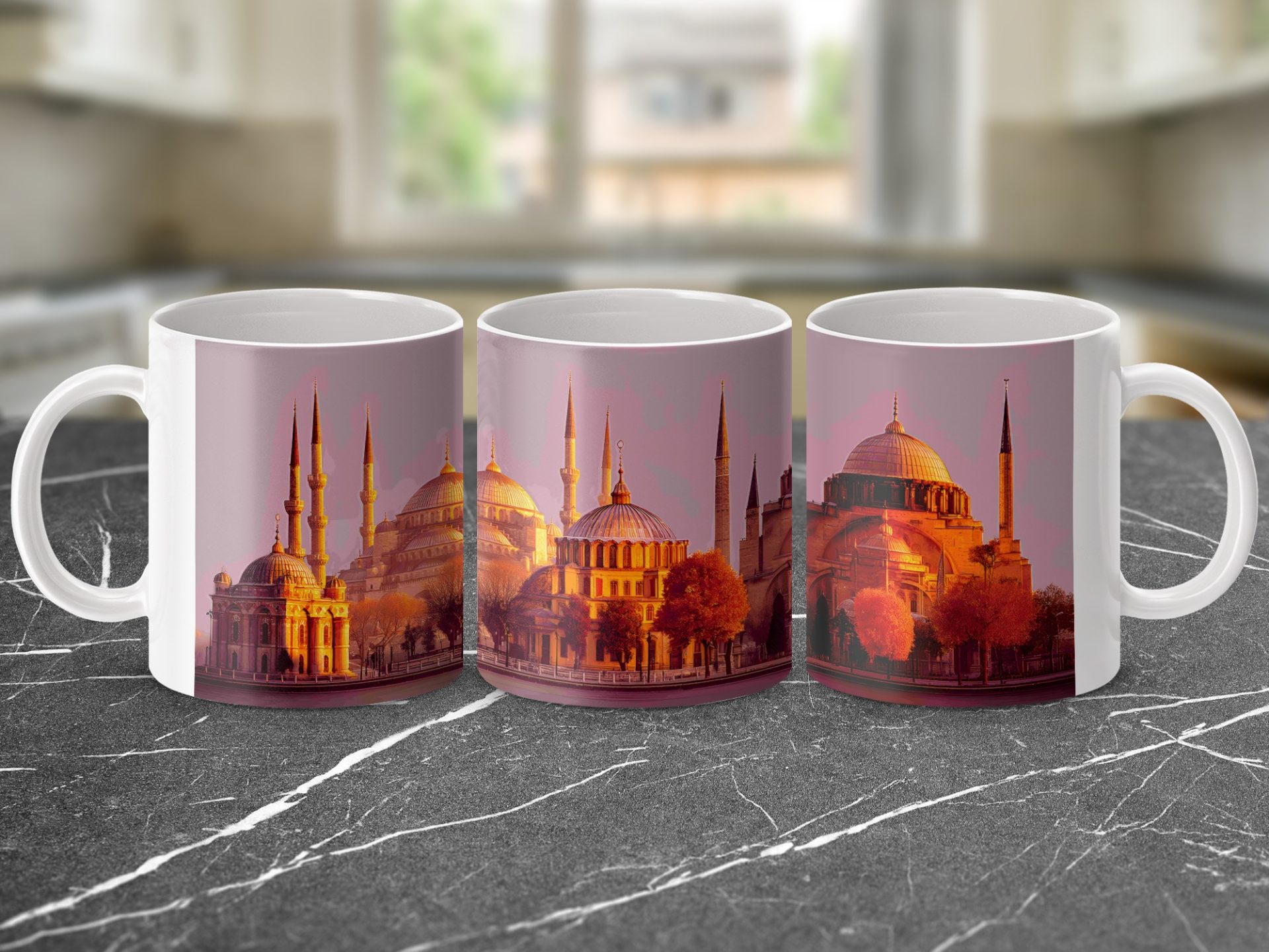 Capture the serene beauty of Istanbul's iconic skyline at sunrise with this unique mug. Perfect for enjoying your favorite beverage while dreaming of travel and adventure.