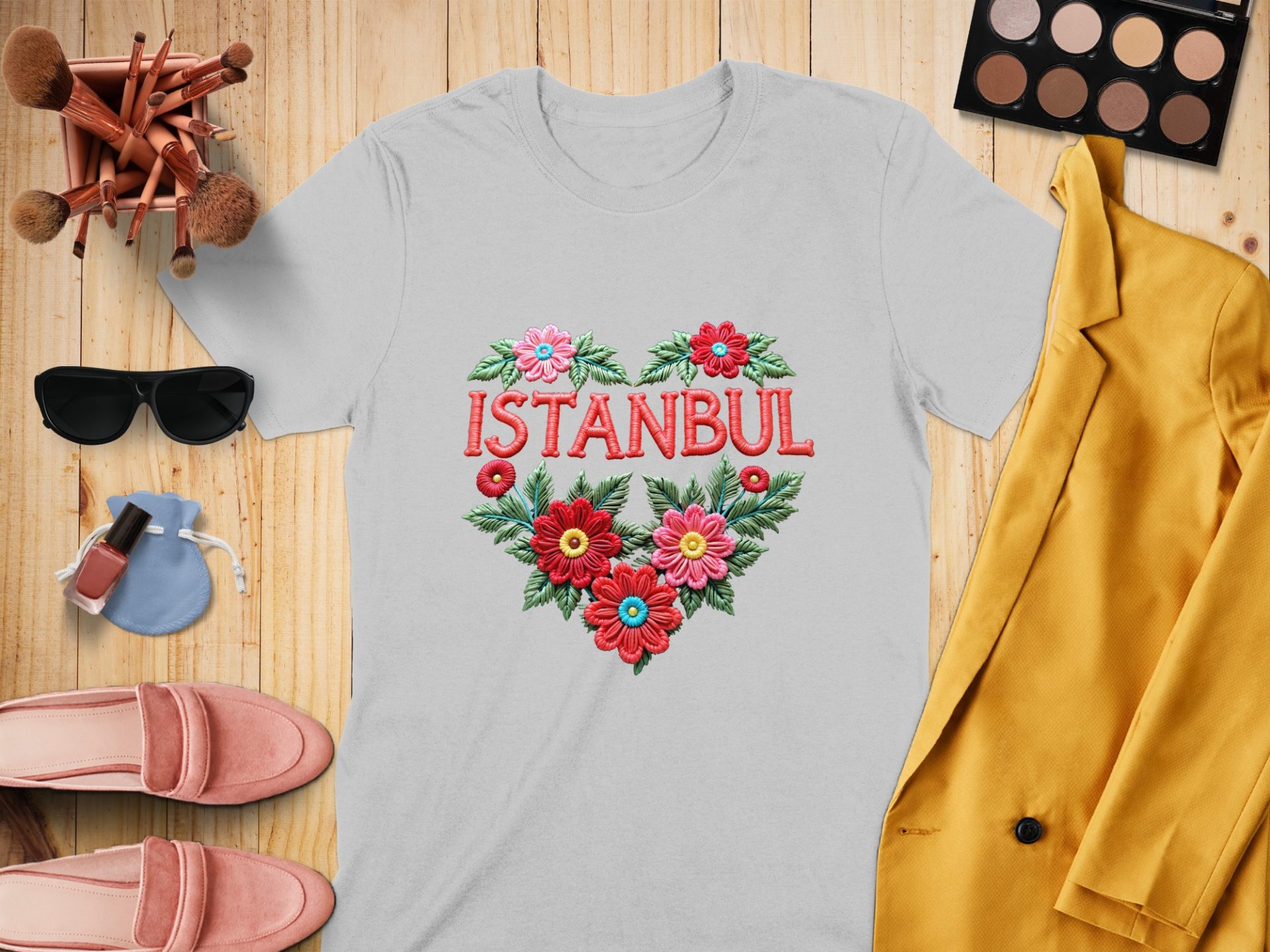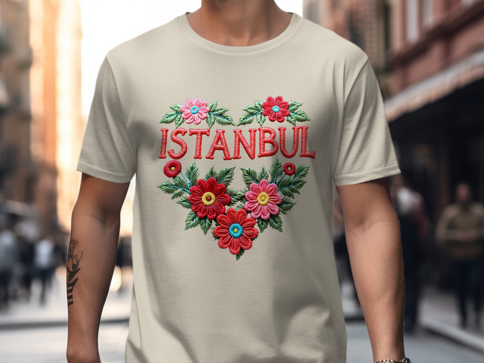 Istanbul City Heart With Flowers Artistic Design T-Shirts