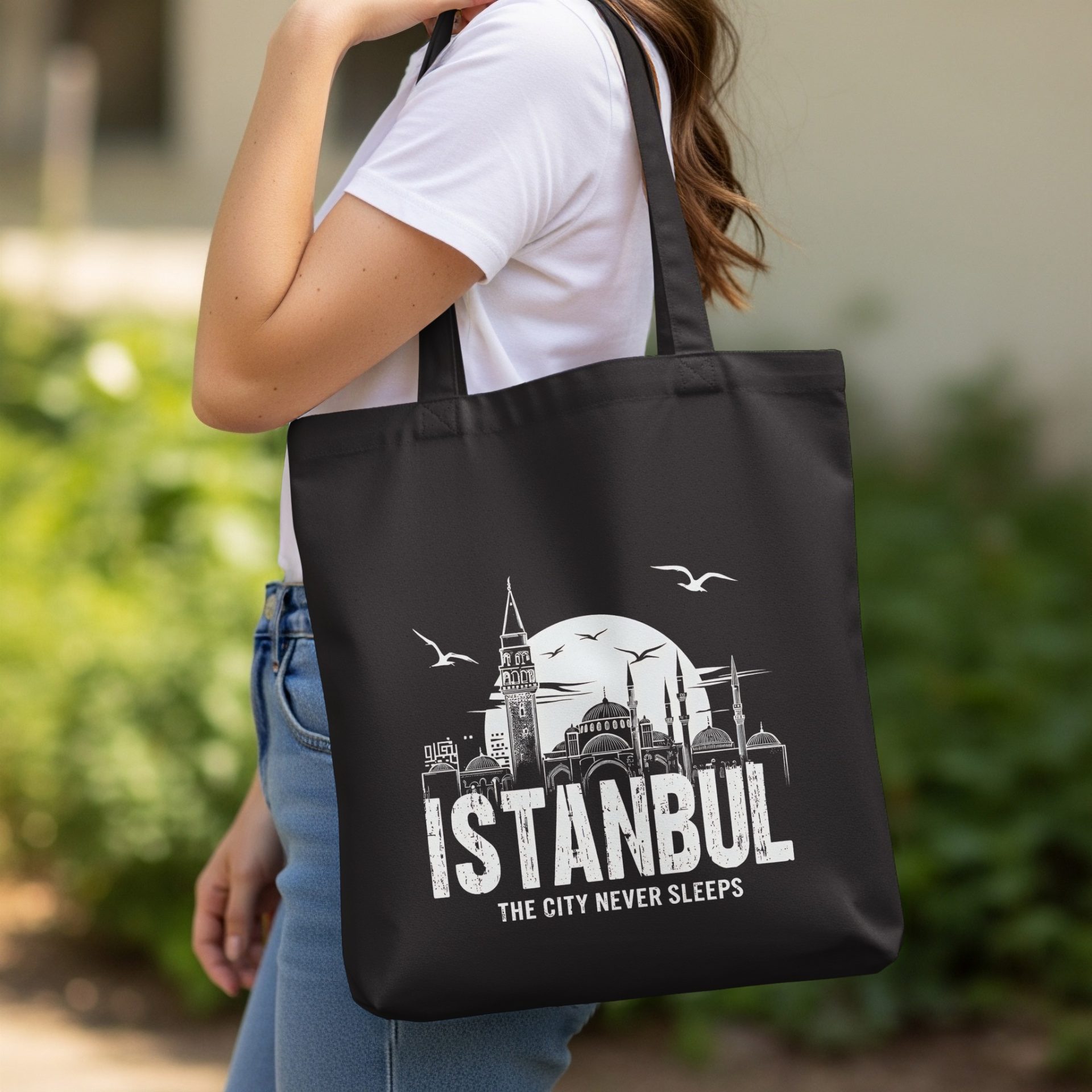 Istanbul City Never Sleeps Landmark Skyline Design Tote Bags