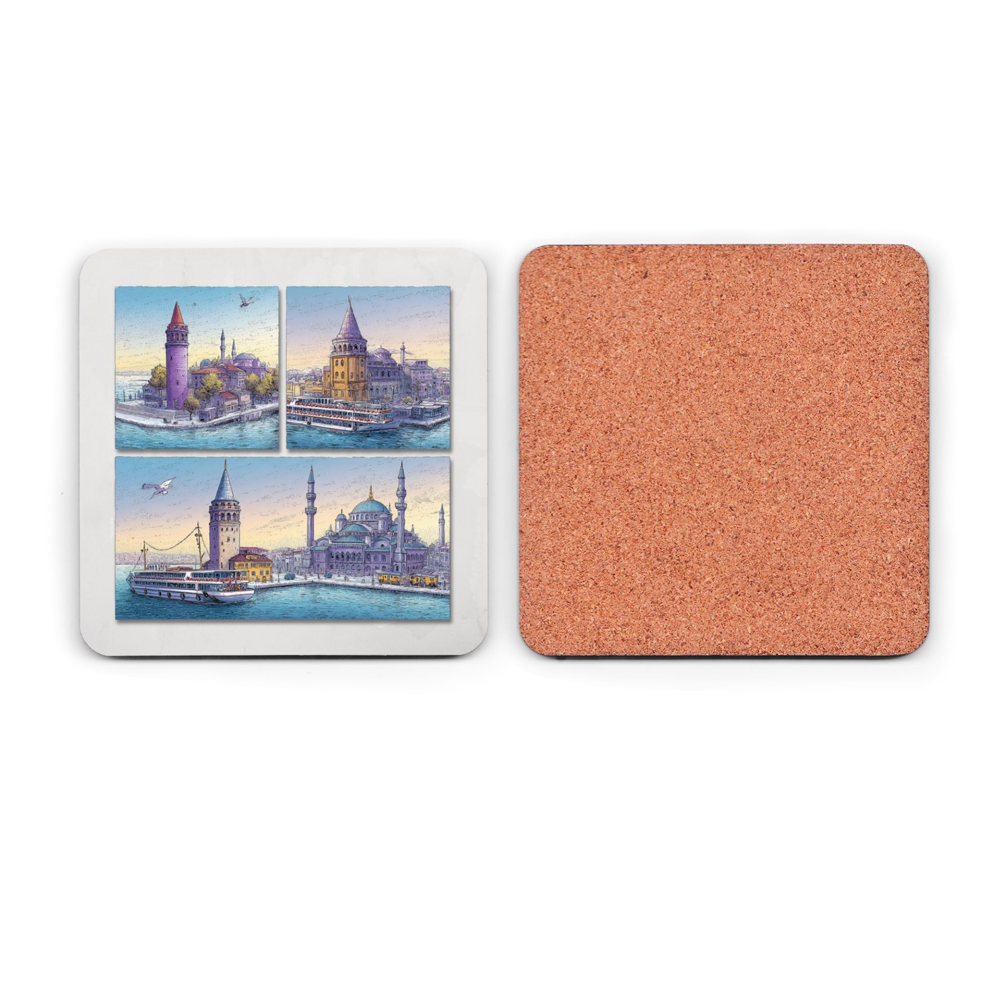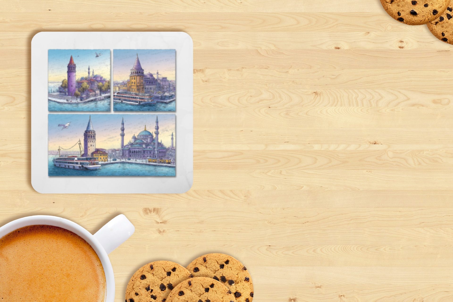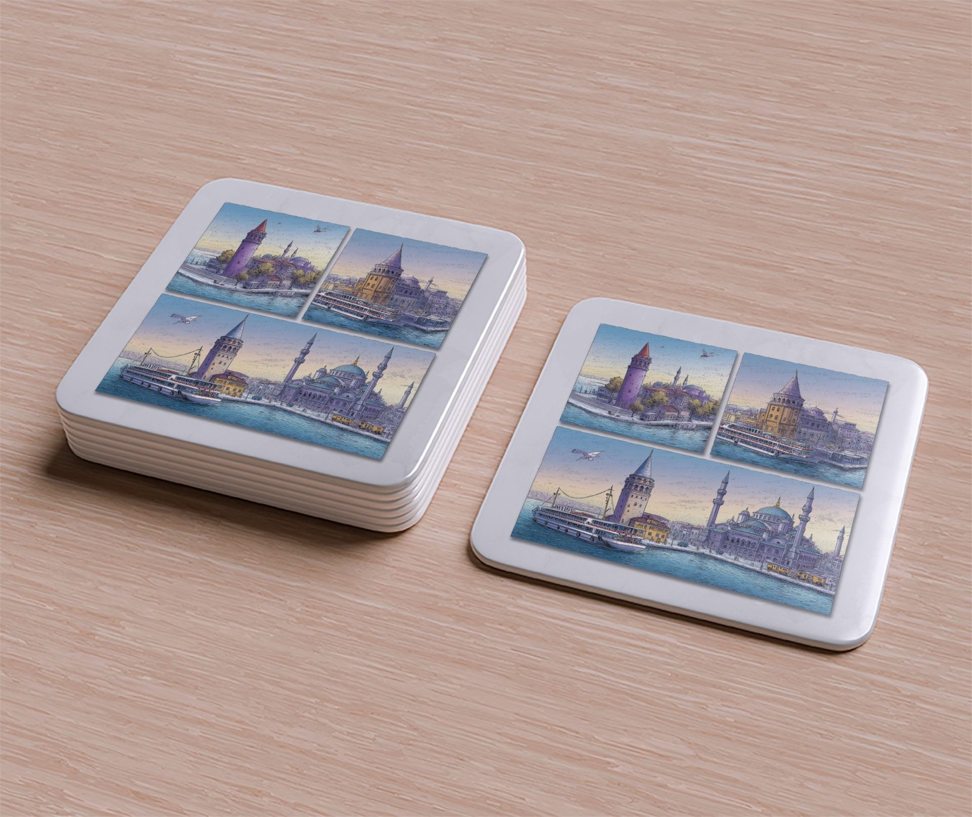 Bring the beauty of Istanbul to your home with these unique coasters. Featuring colorful illustrations of the city's iconic landmarks and boats they add sophistication.