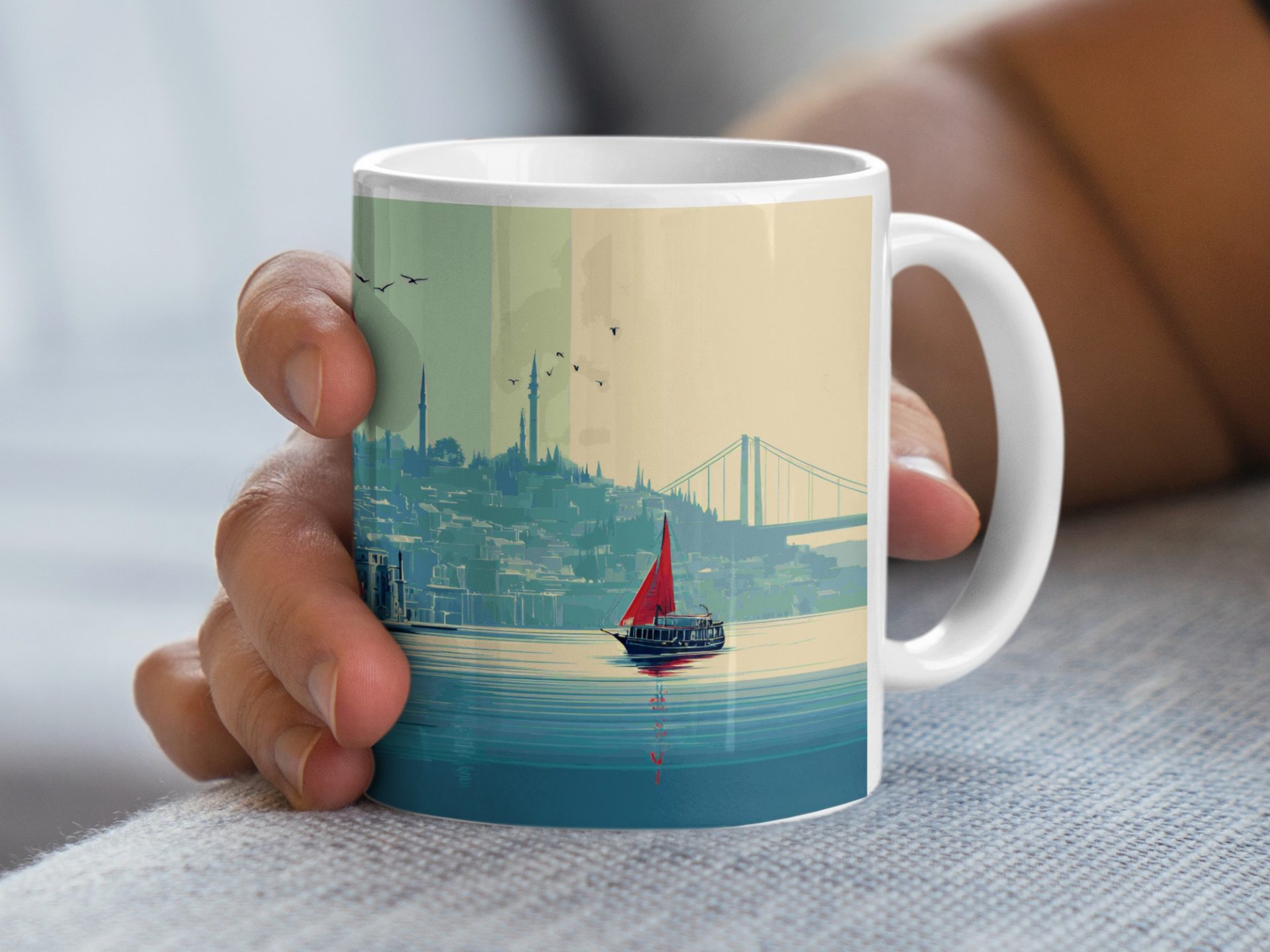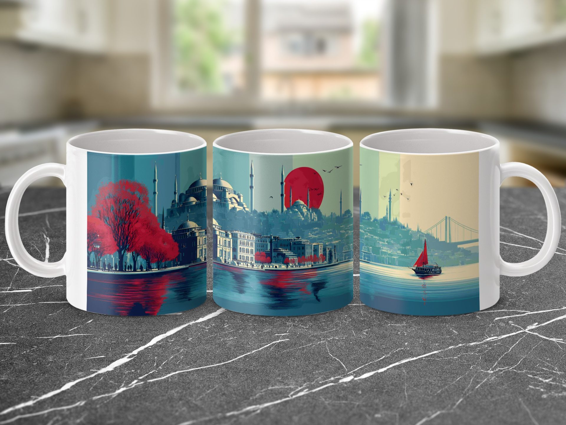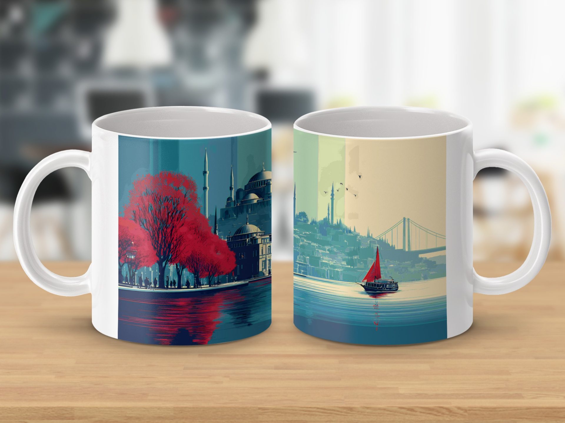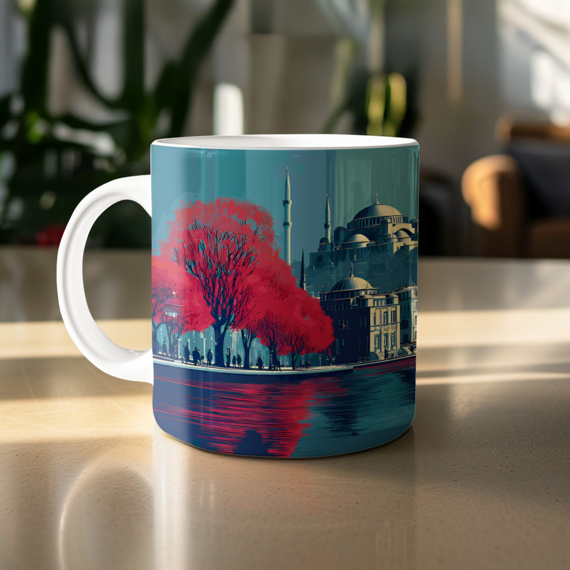 Add a touch of Istanbul's beauty to your day. This mug features a unique cityscape view at sunset with stunning colors and an artistic style. A perfect gift for art and travel lovers.