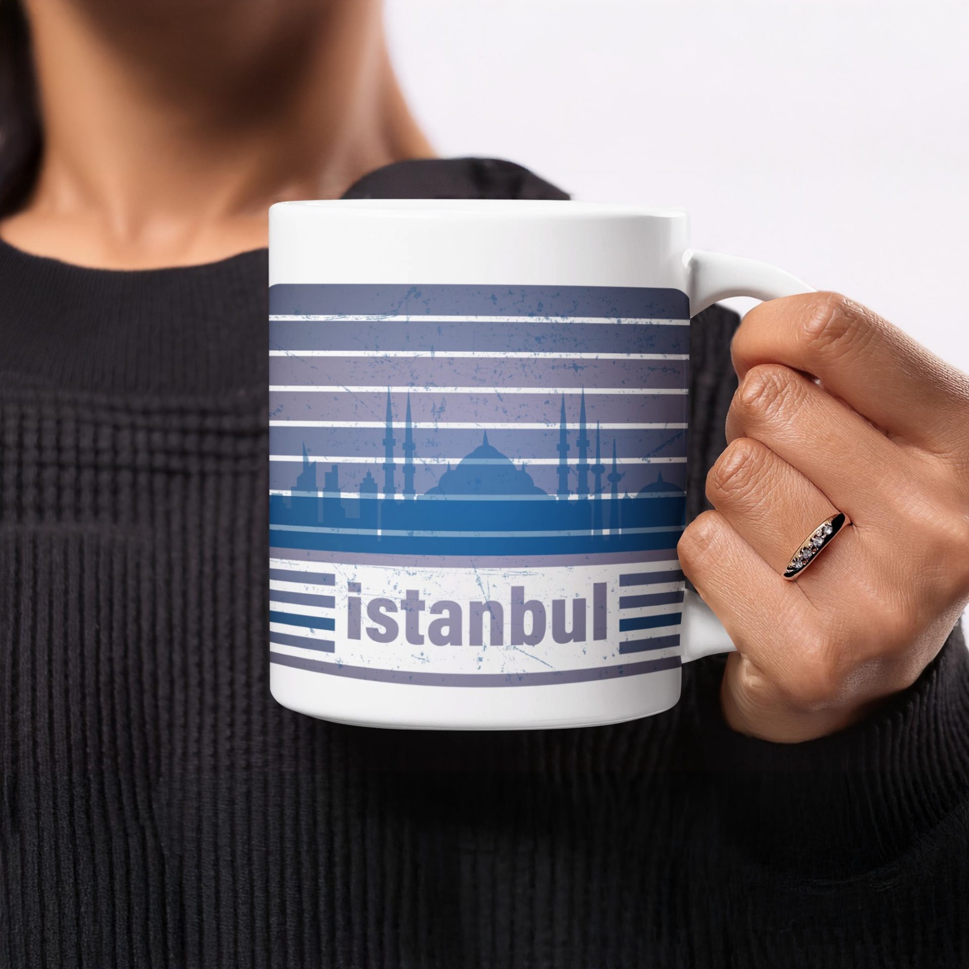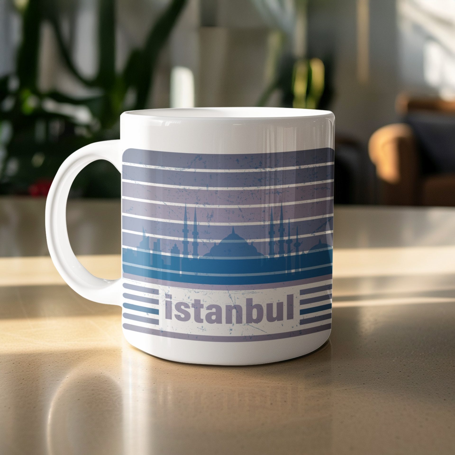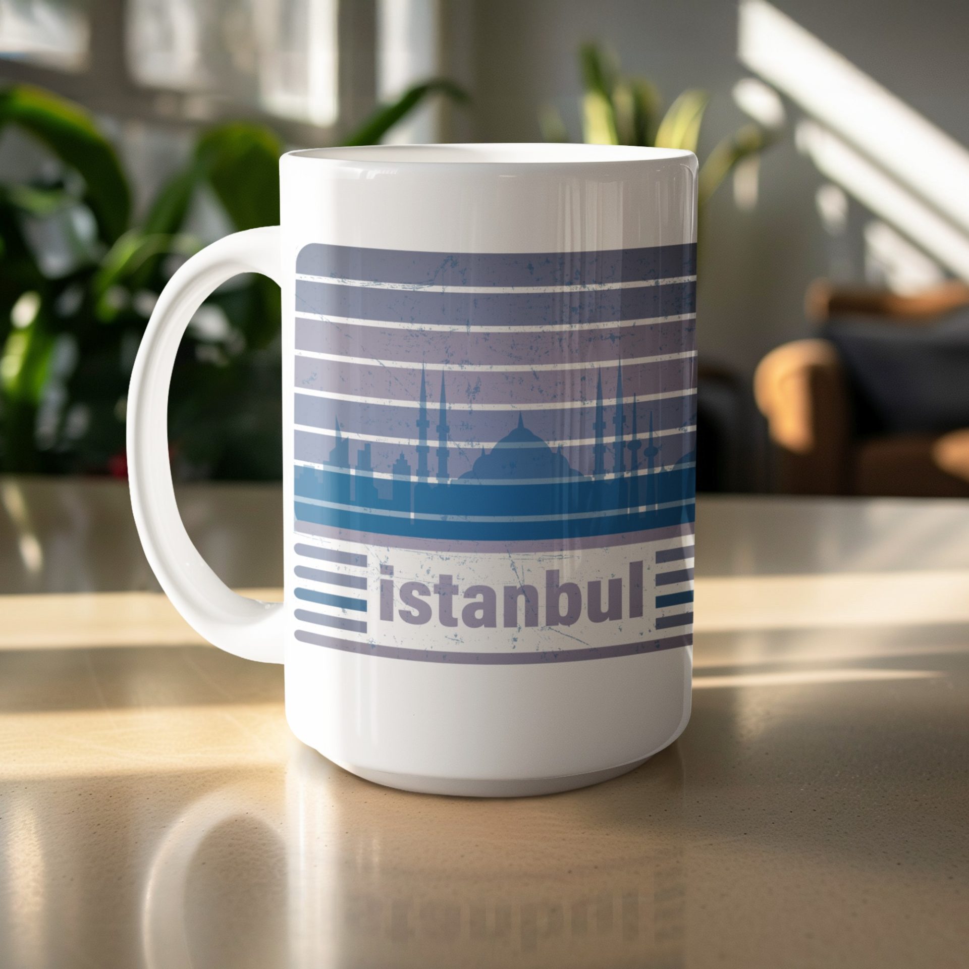 Immerse yourself in Istanbul's beauty with this captivating mug design featuring a cityscape silhouette. Perfect for coffee or tea lovers, get yours today and enjoy.