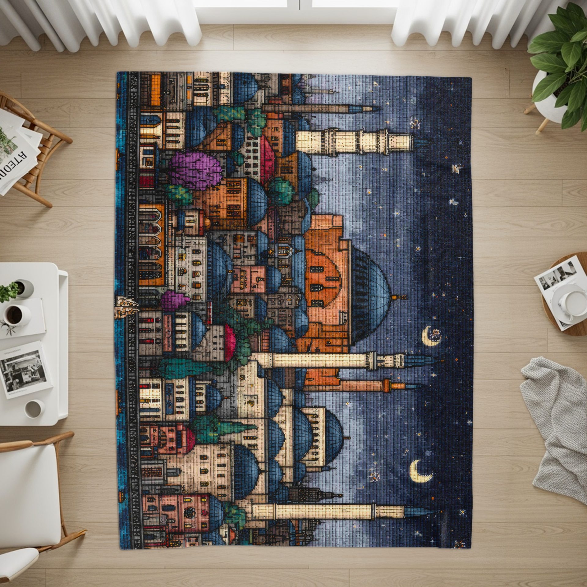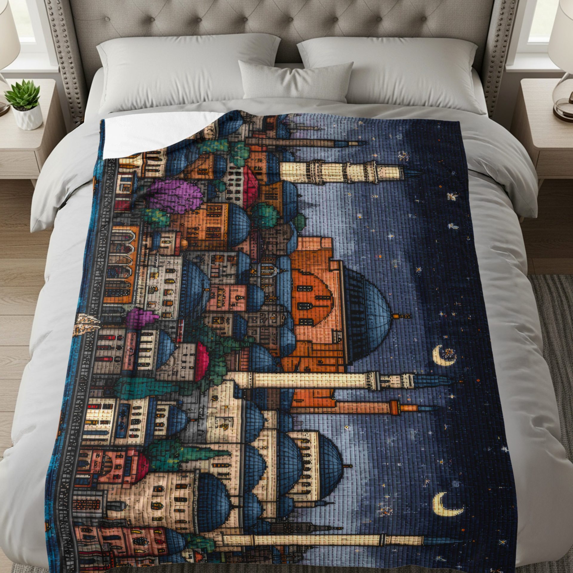 Istanbul Cityscape with Night Sky Urban Art Design Blankets