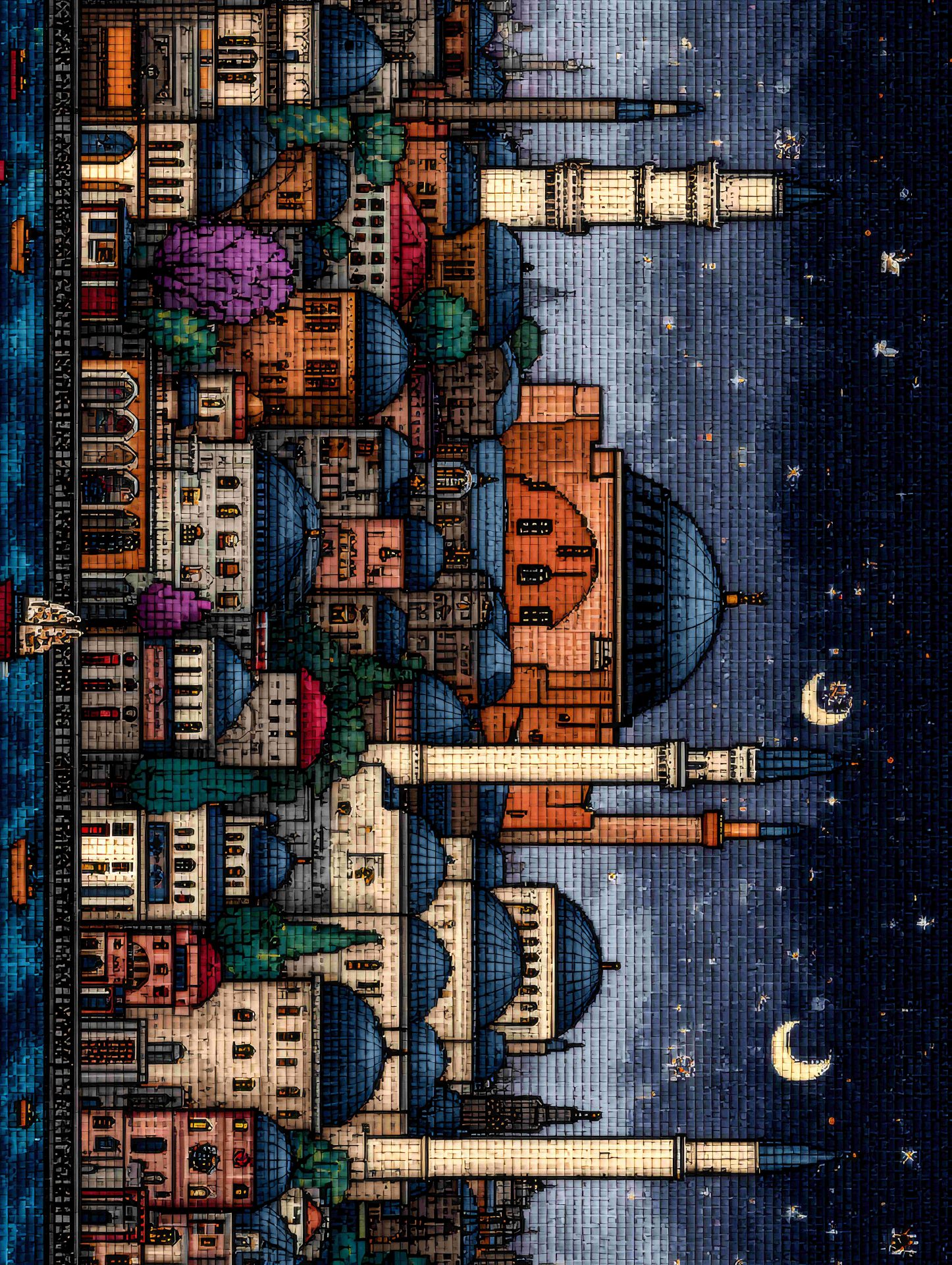 Experience the beauty of Istanbul at night with this vibrant and intricate cityscape design. The art style and color palettes makes it a striking visual treat for any room decor.