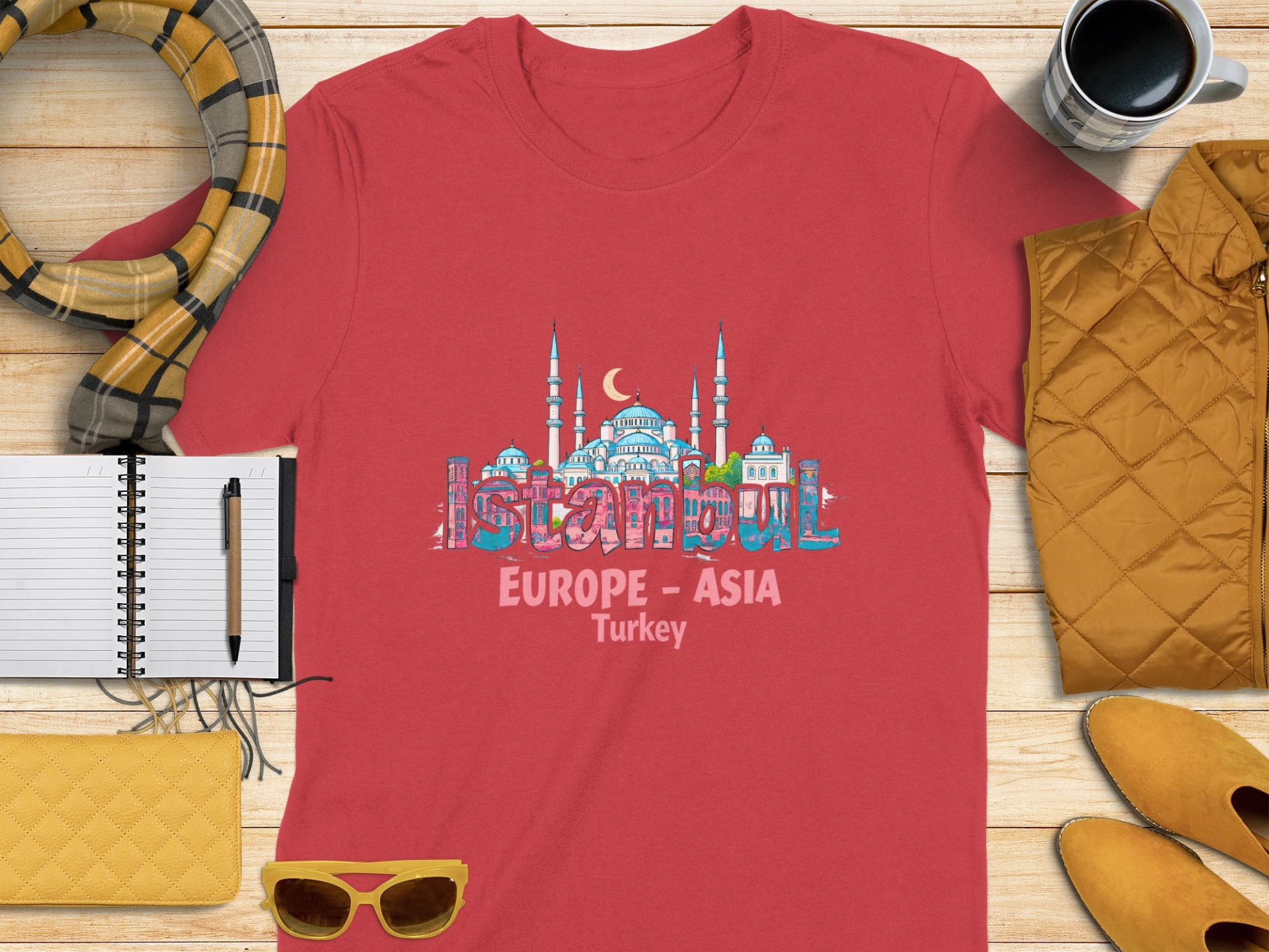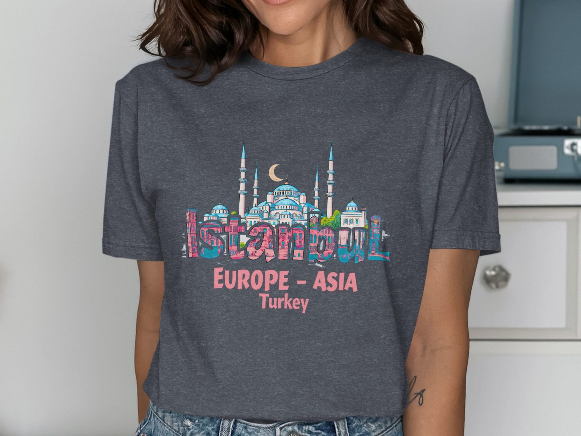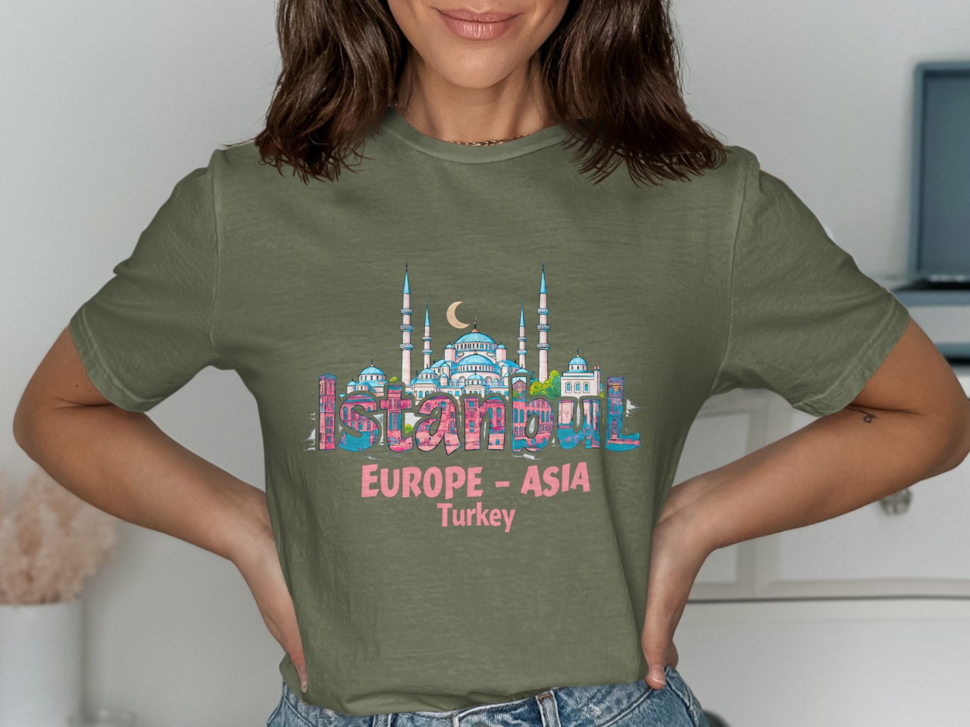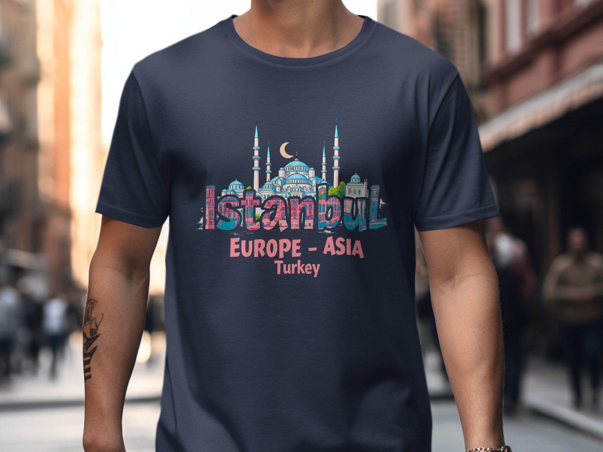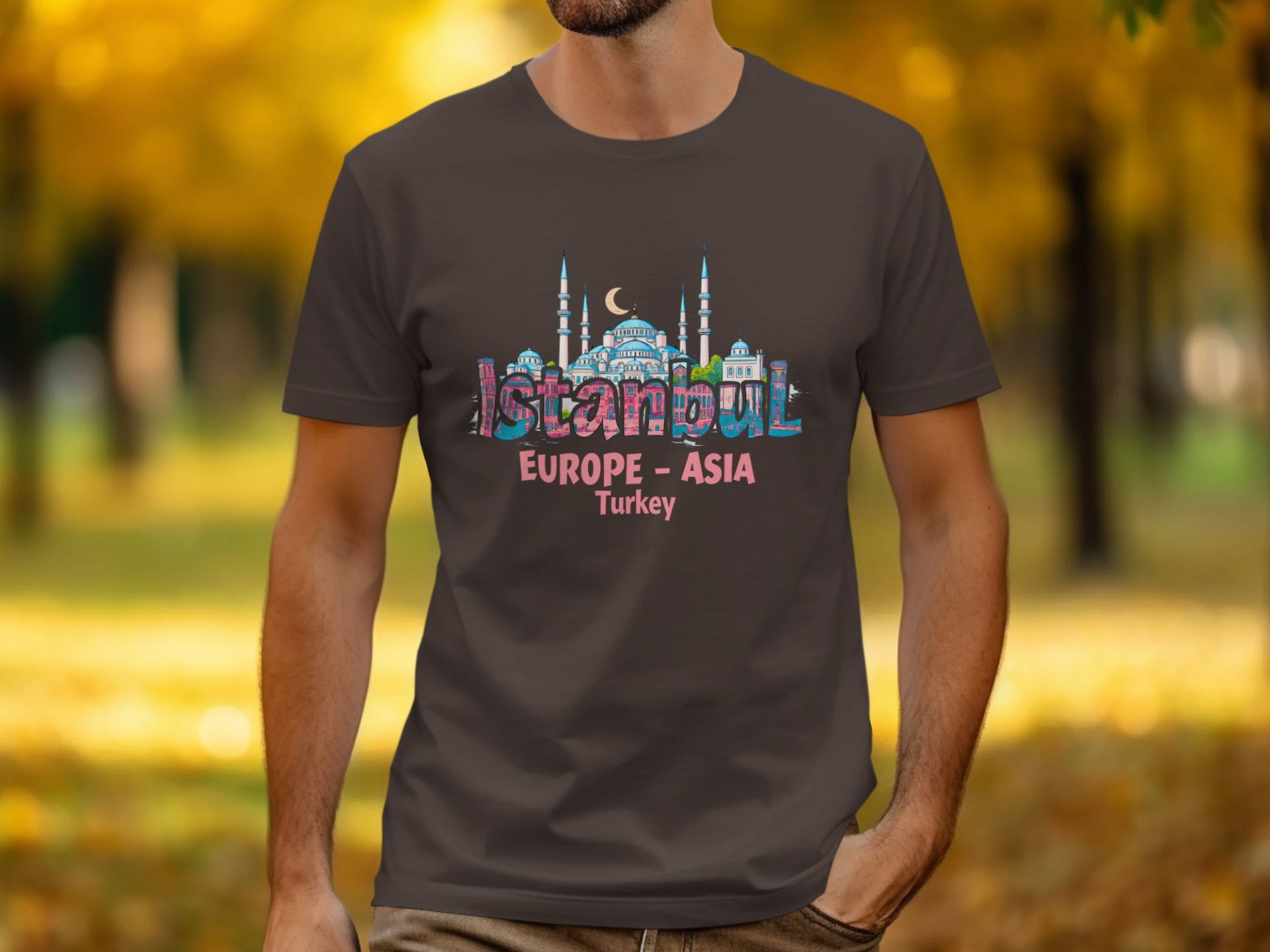 Explore the wonders of Istanbul with this unique T-shirt featuring iconic landmarks. Perfect for travel enthusiasts and anyone who loves Turkish culture and history!