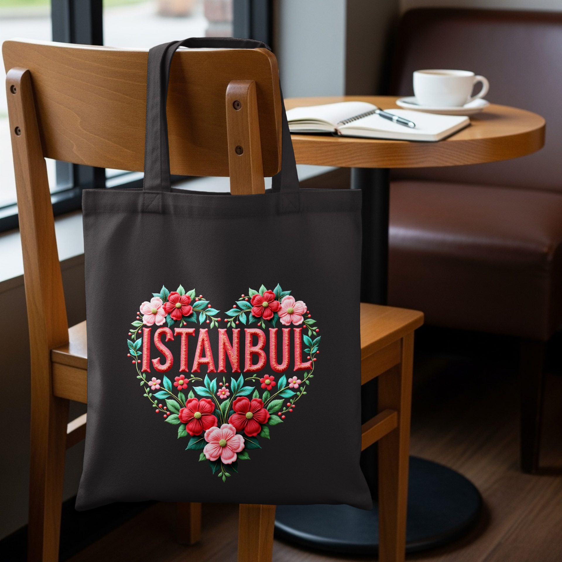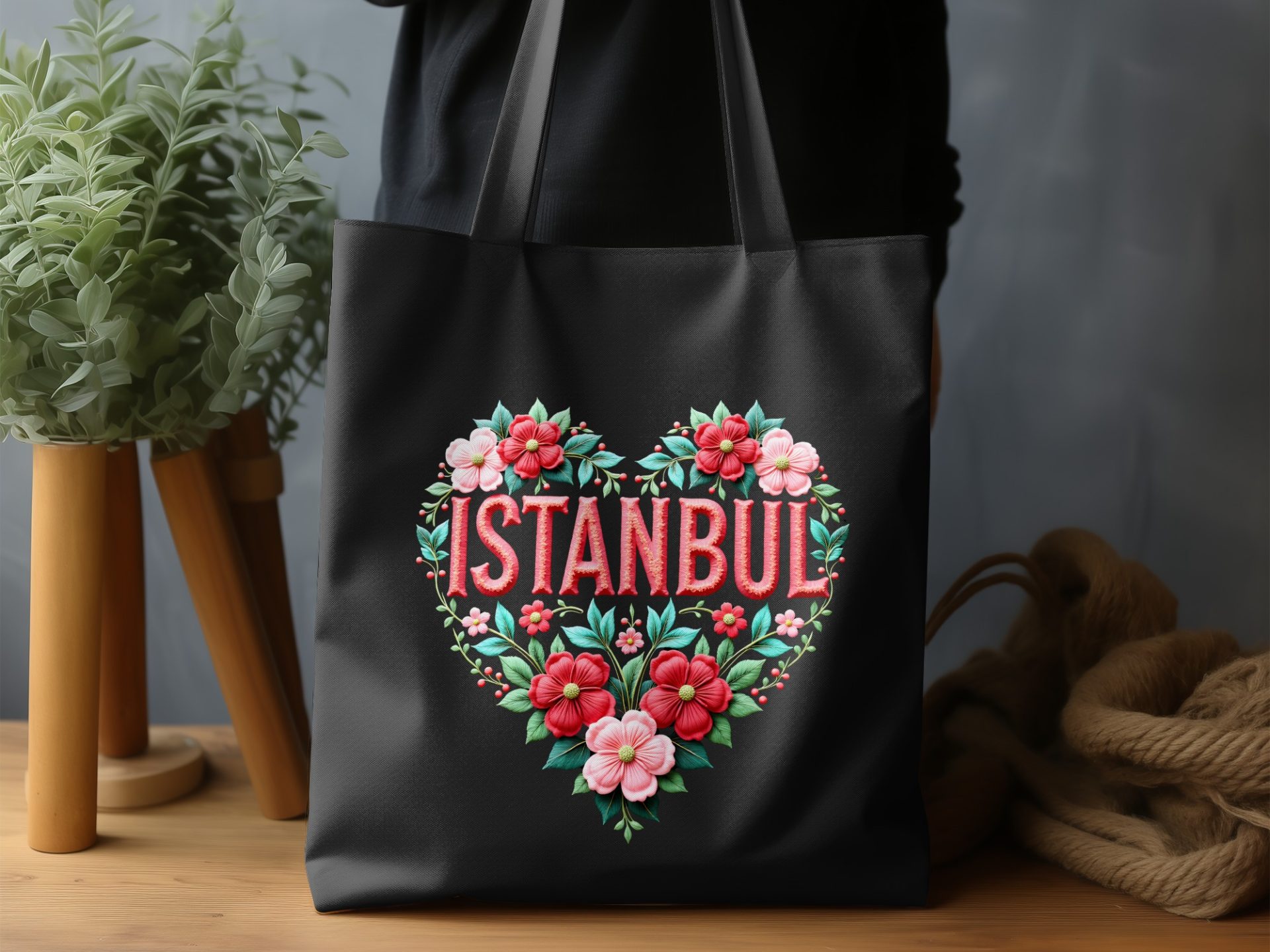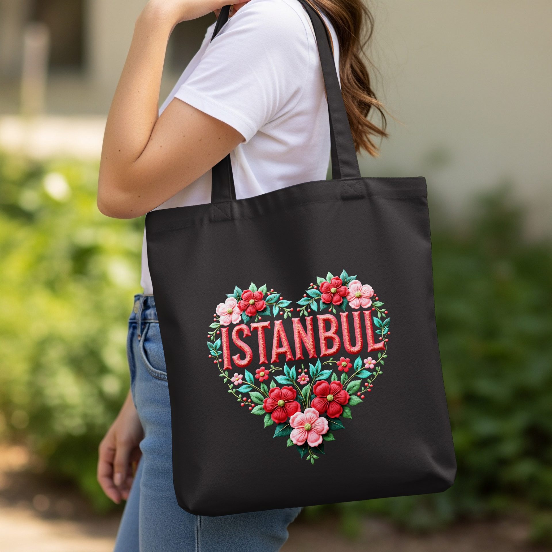 Show your love to Istanbul with this unique heart shaped floral design. This bag is perfect for carrying all your everyday essentials while showcasing your style.